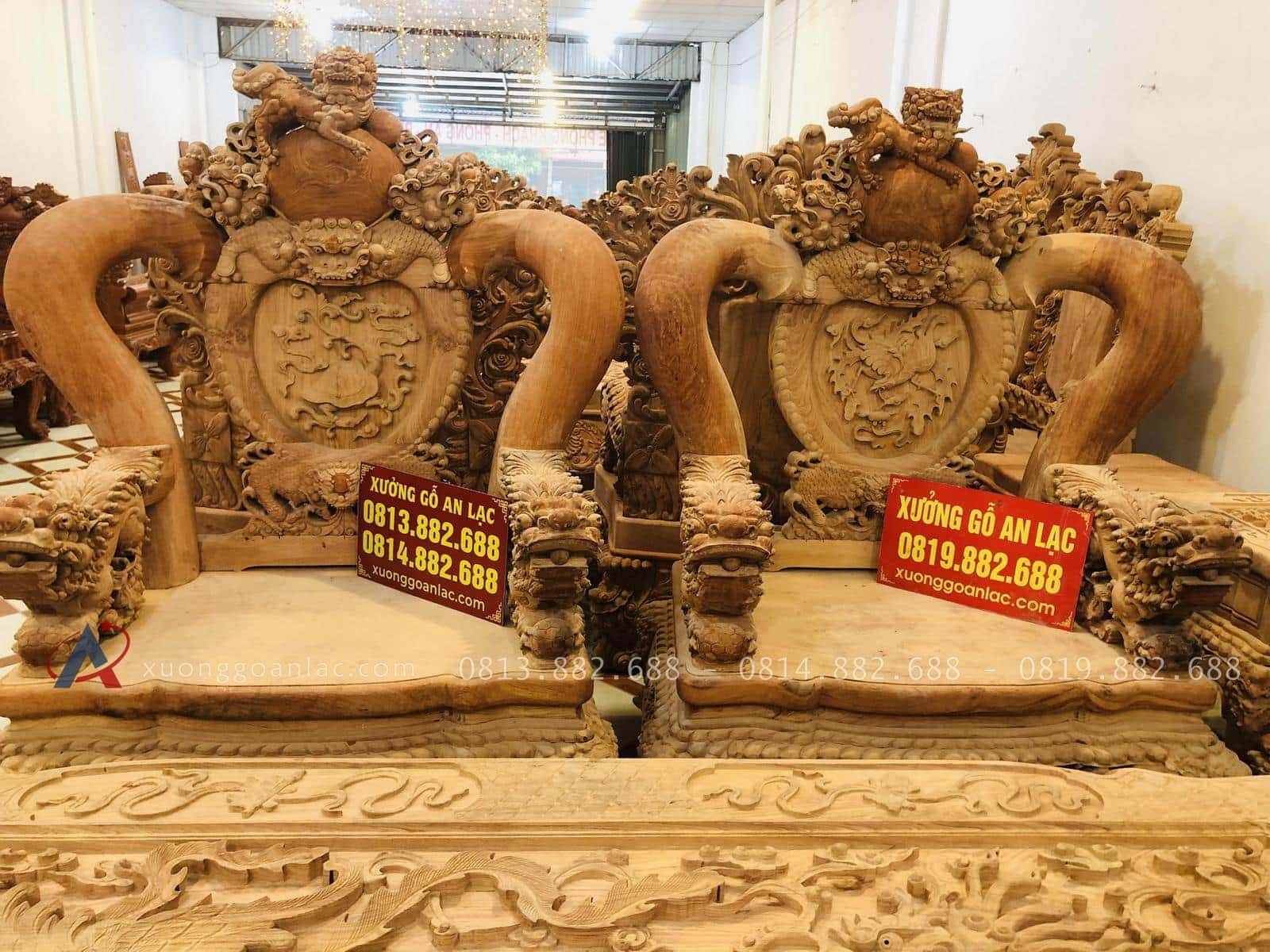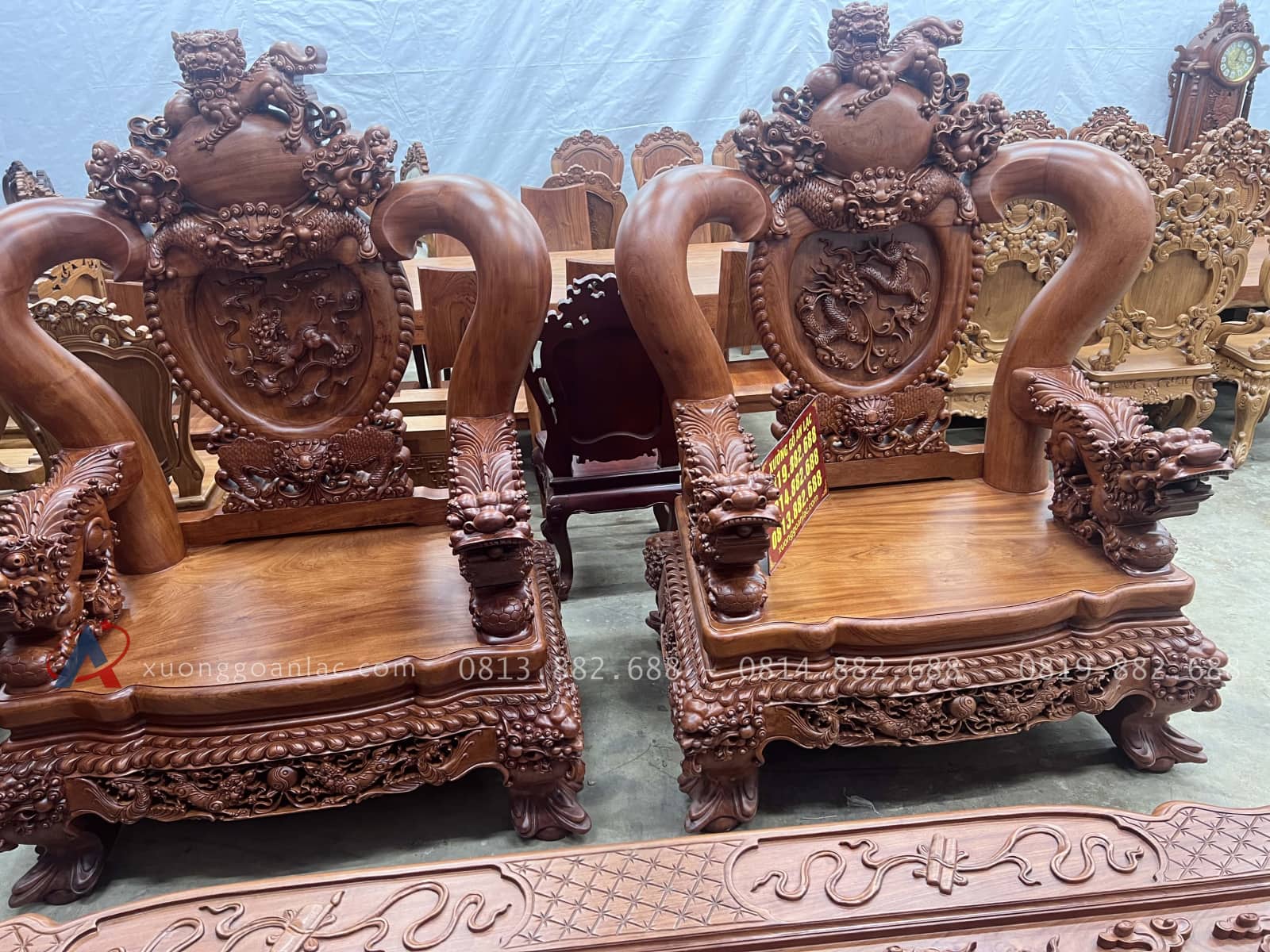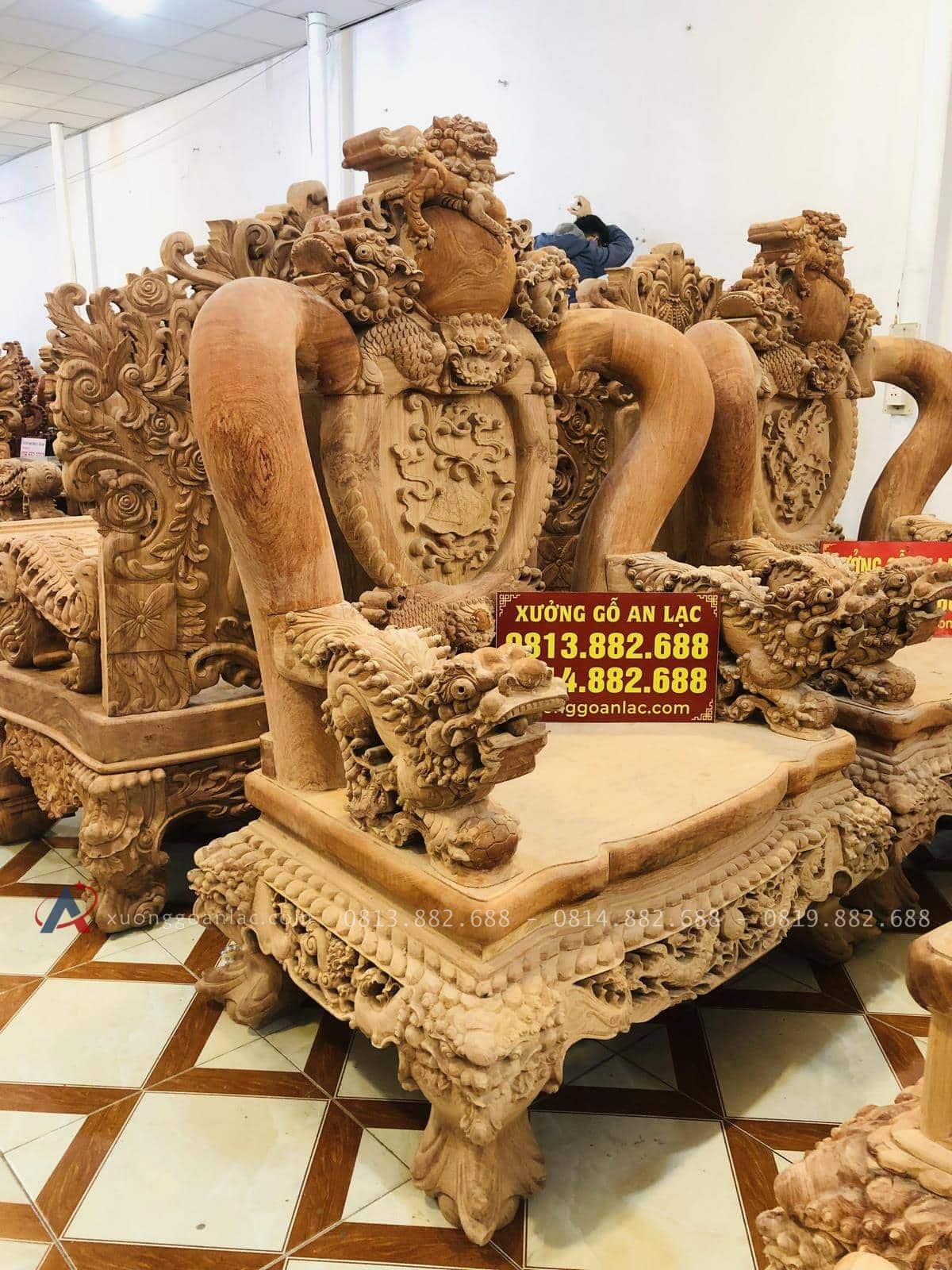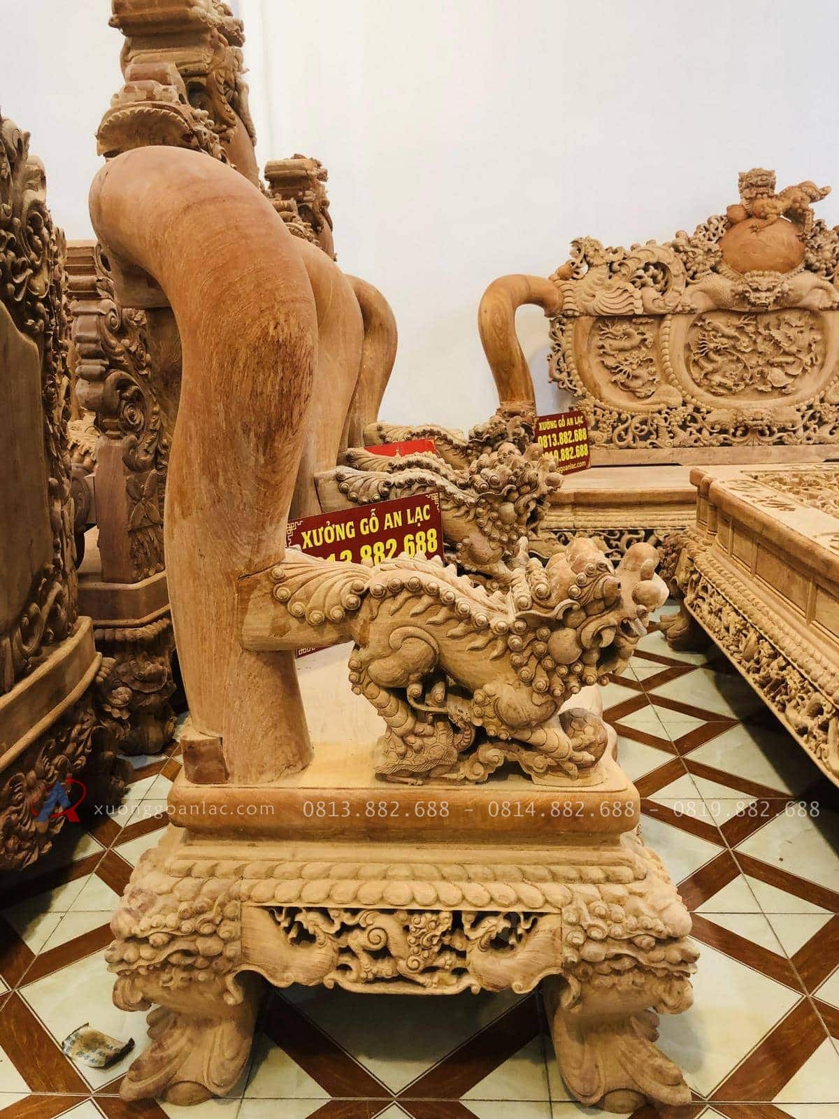 [Hoàn thiện] Bộ bàn ghế minh quốc nghê gỗ hương đá tay 18 chân 20 siêu vip