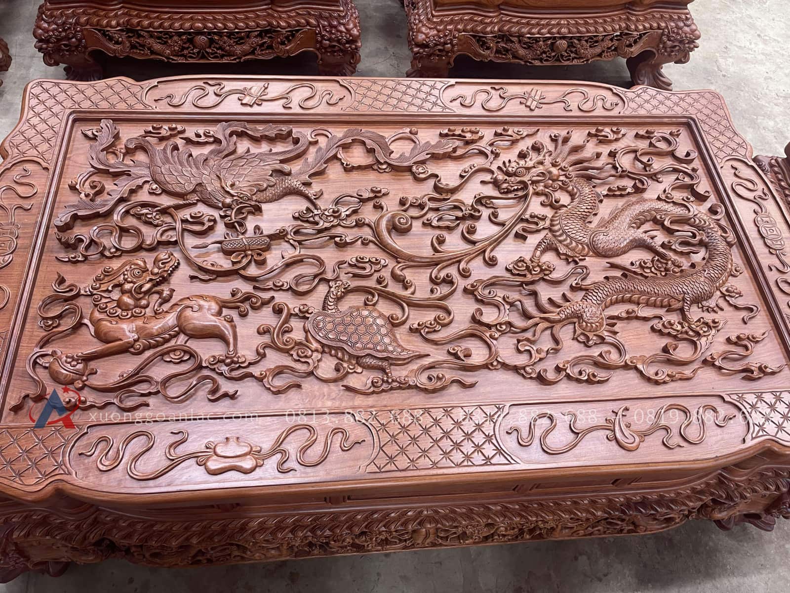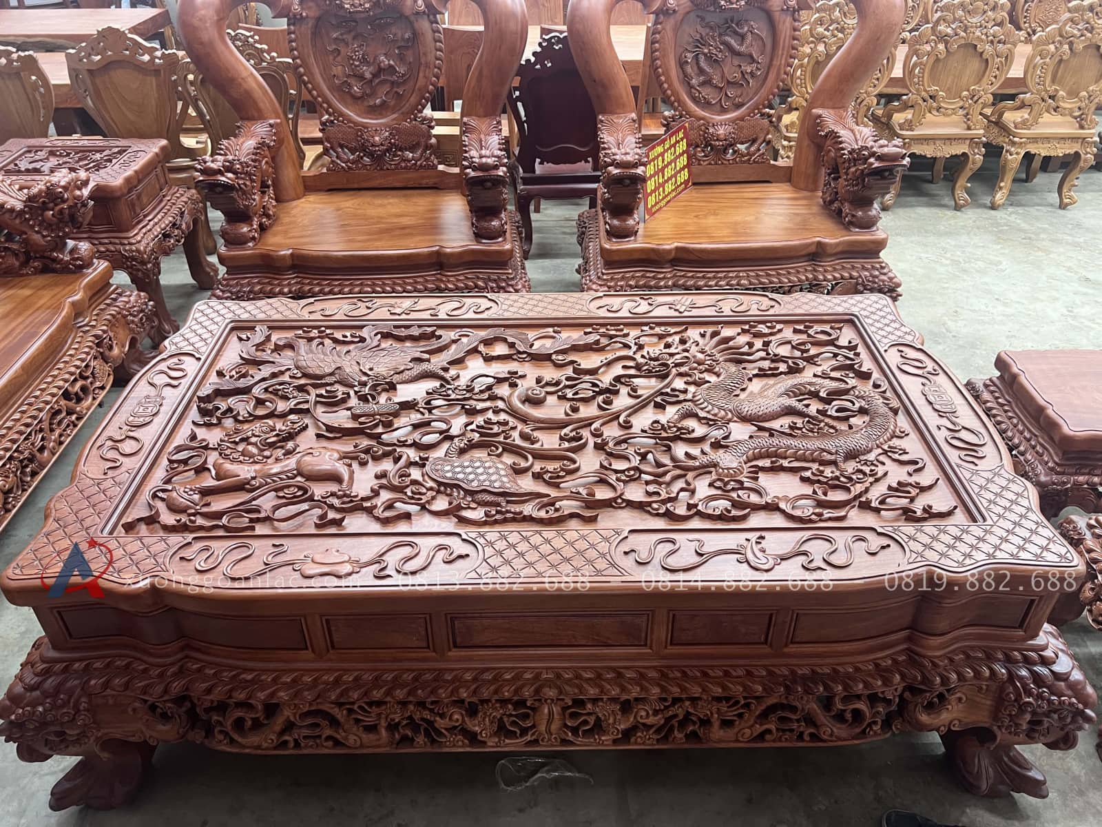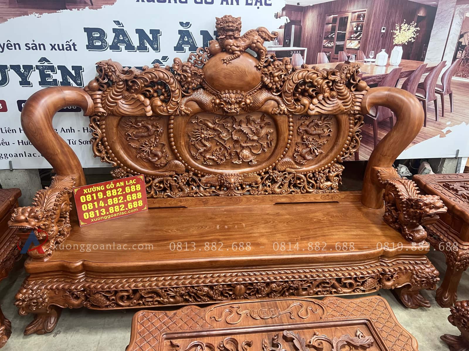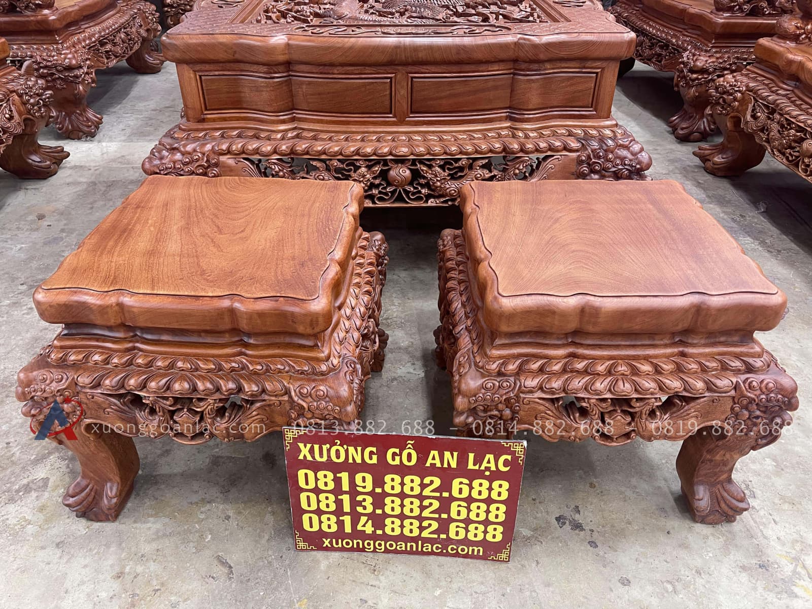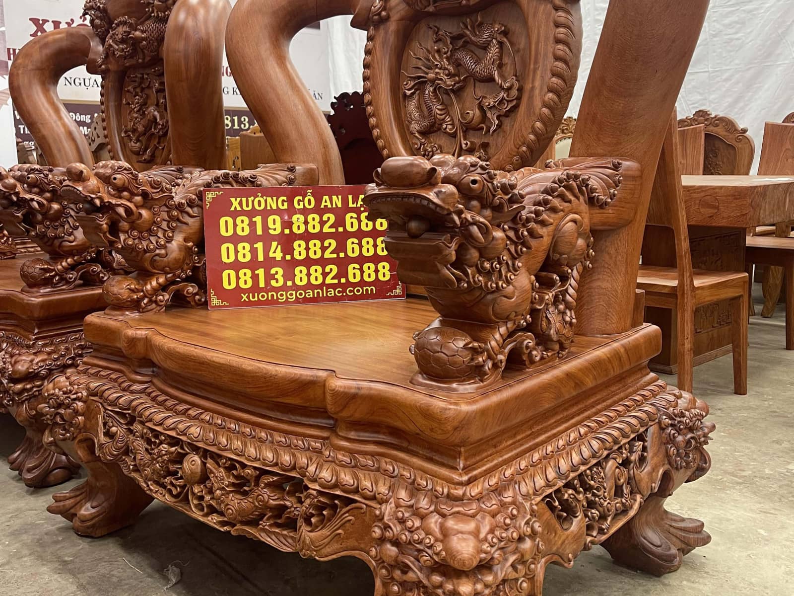 [Hoàn thiện] Bộ bàn ghế minh quốc nghê gỗ hương đá tay 18 chân 20 siêu vip