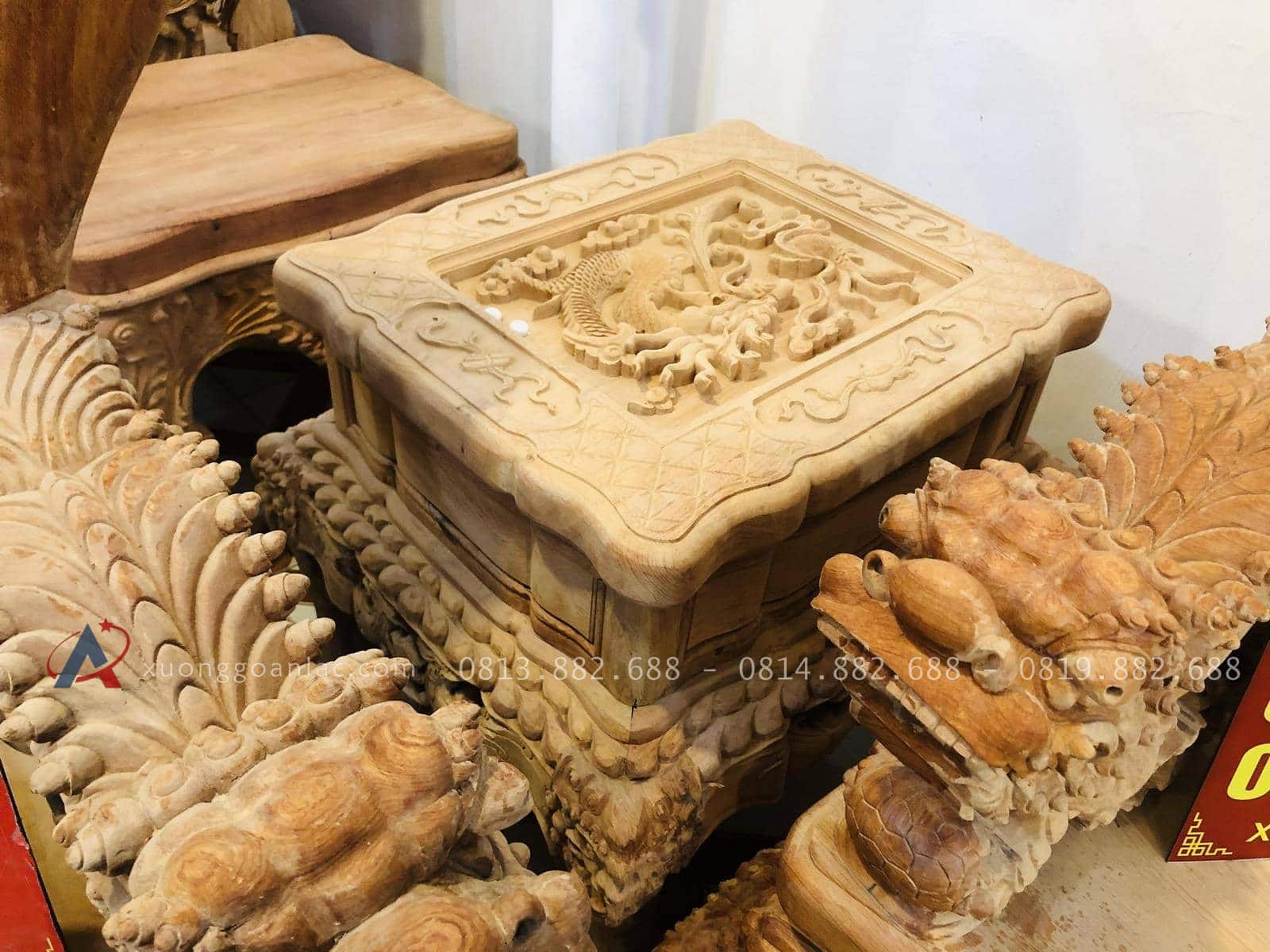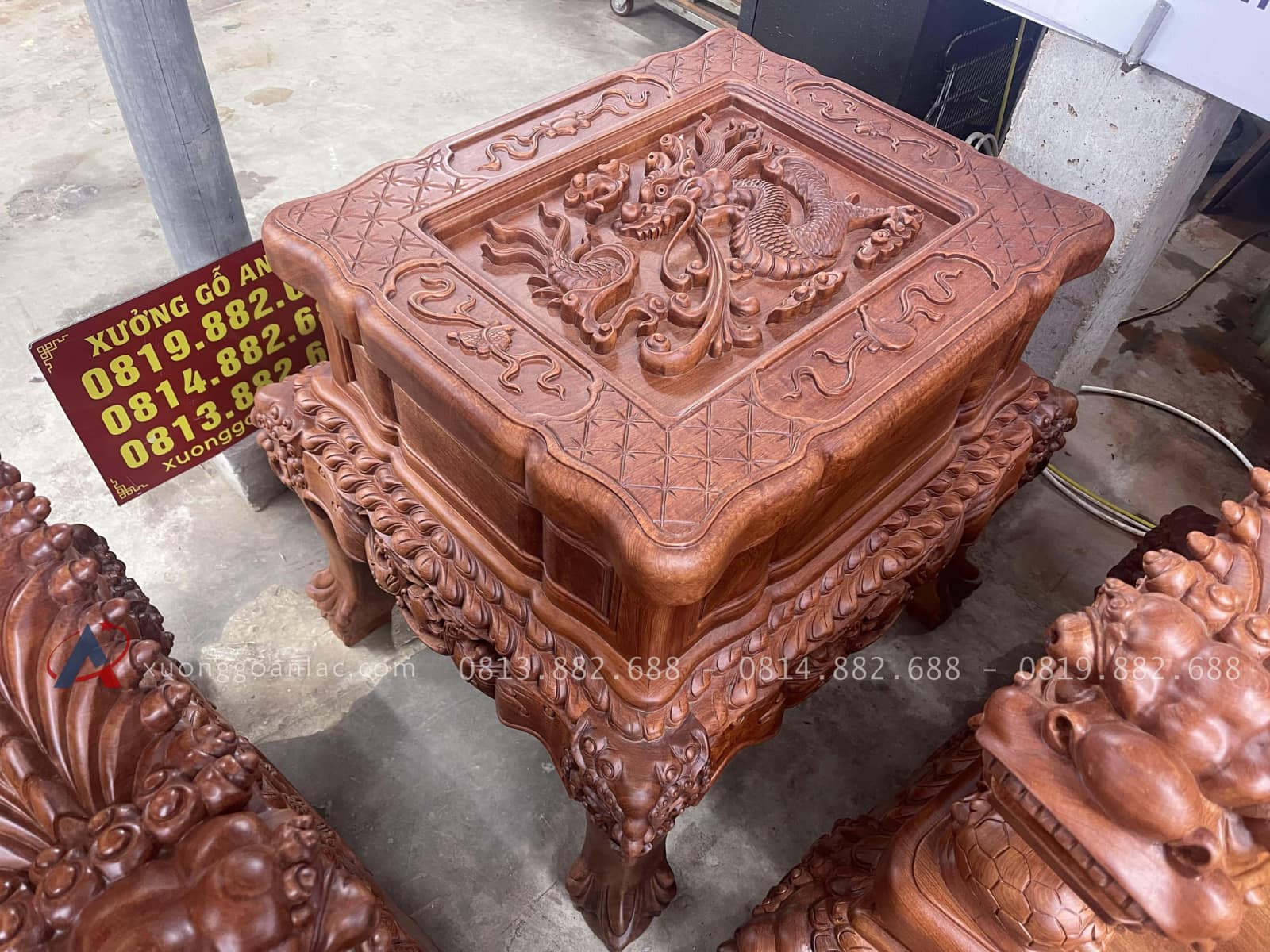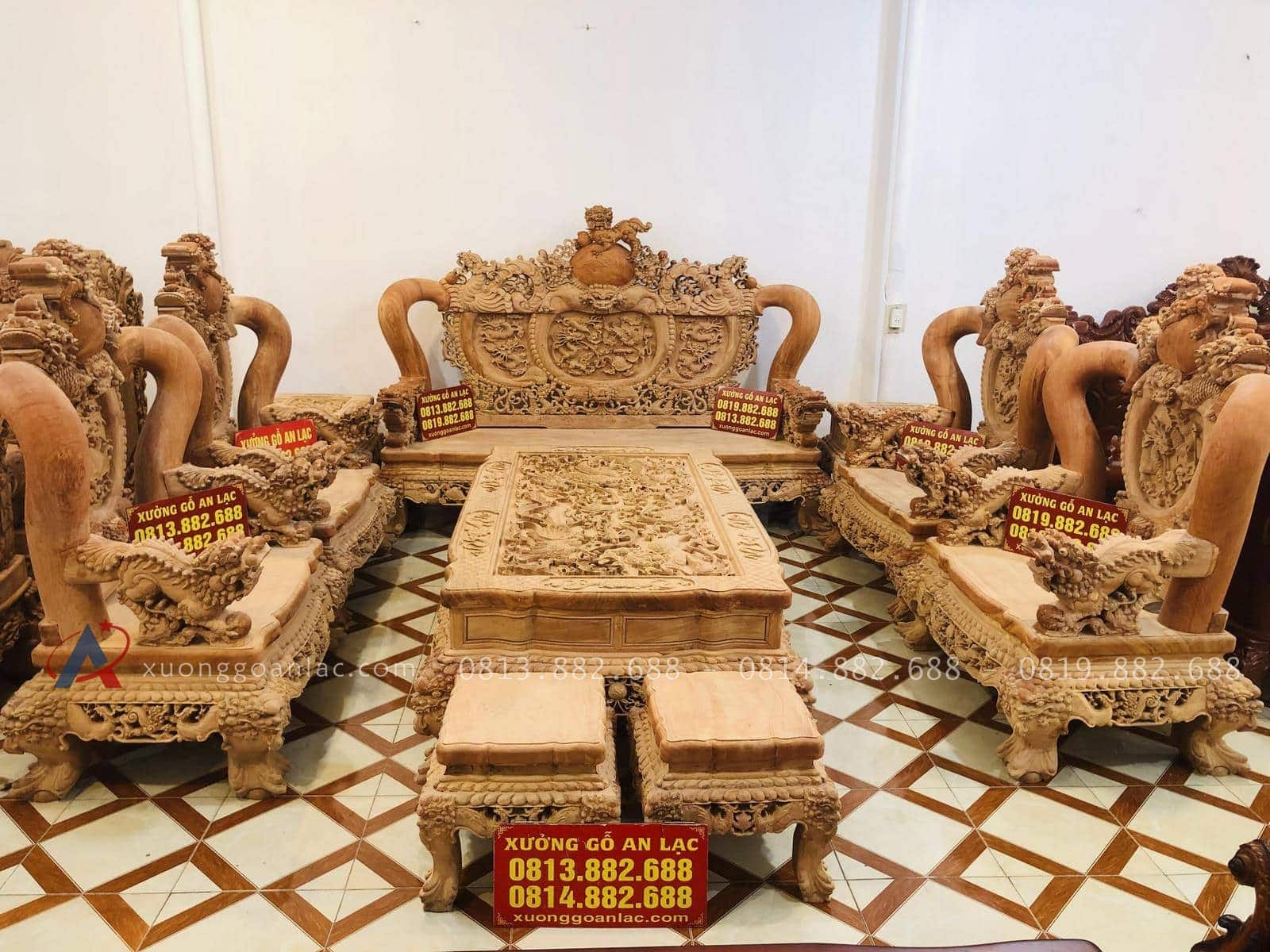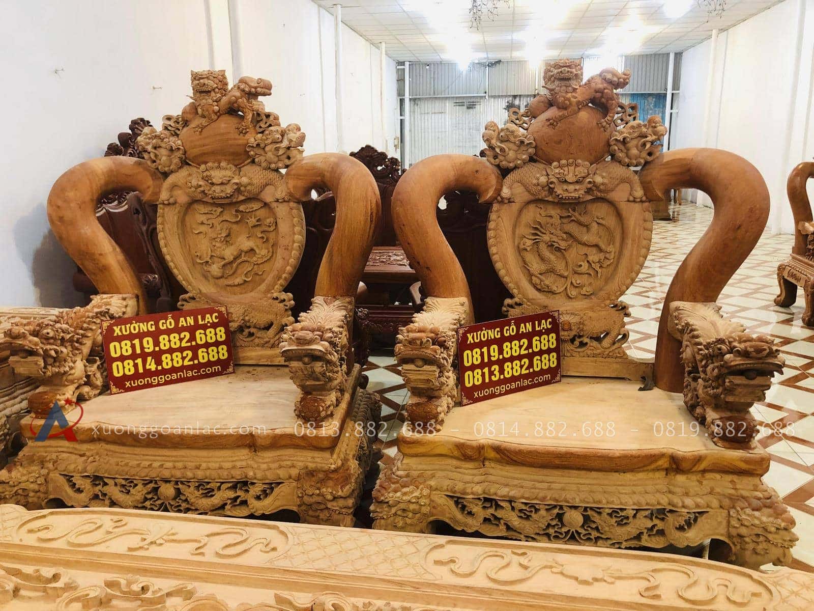 [Hoàn thiện] Bộ bàn ghế minh quốc nghê gỗ hương đá tay 18 chân 20 siêu vip