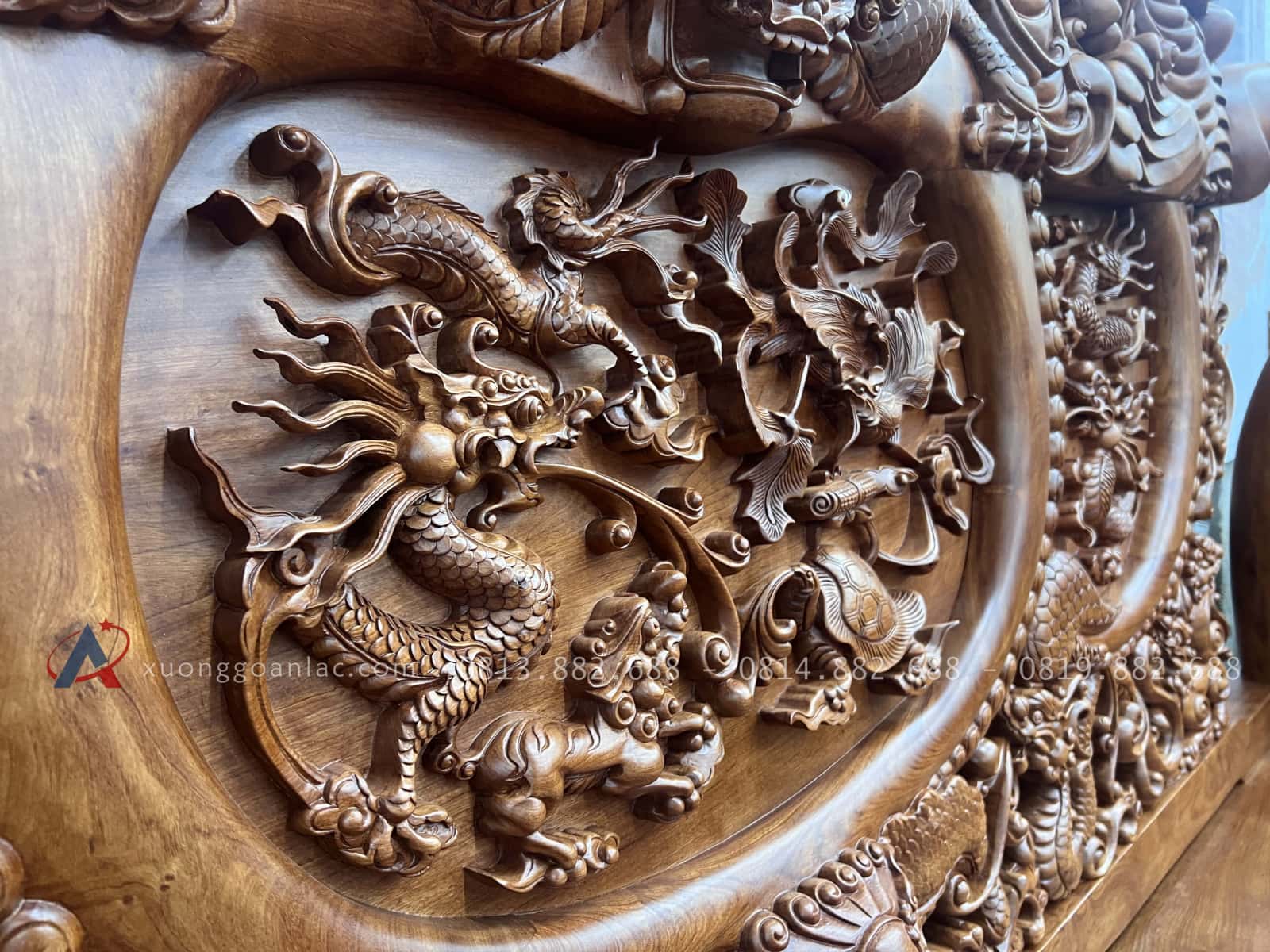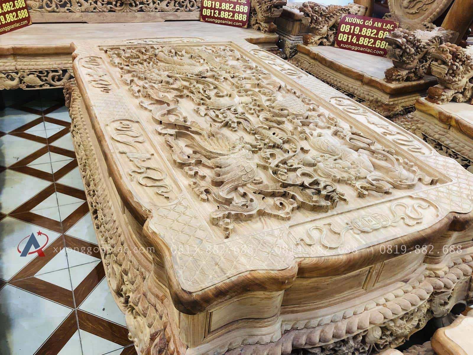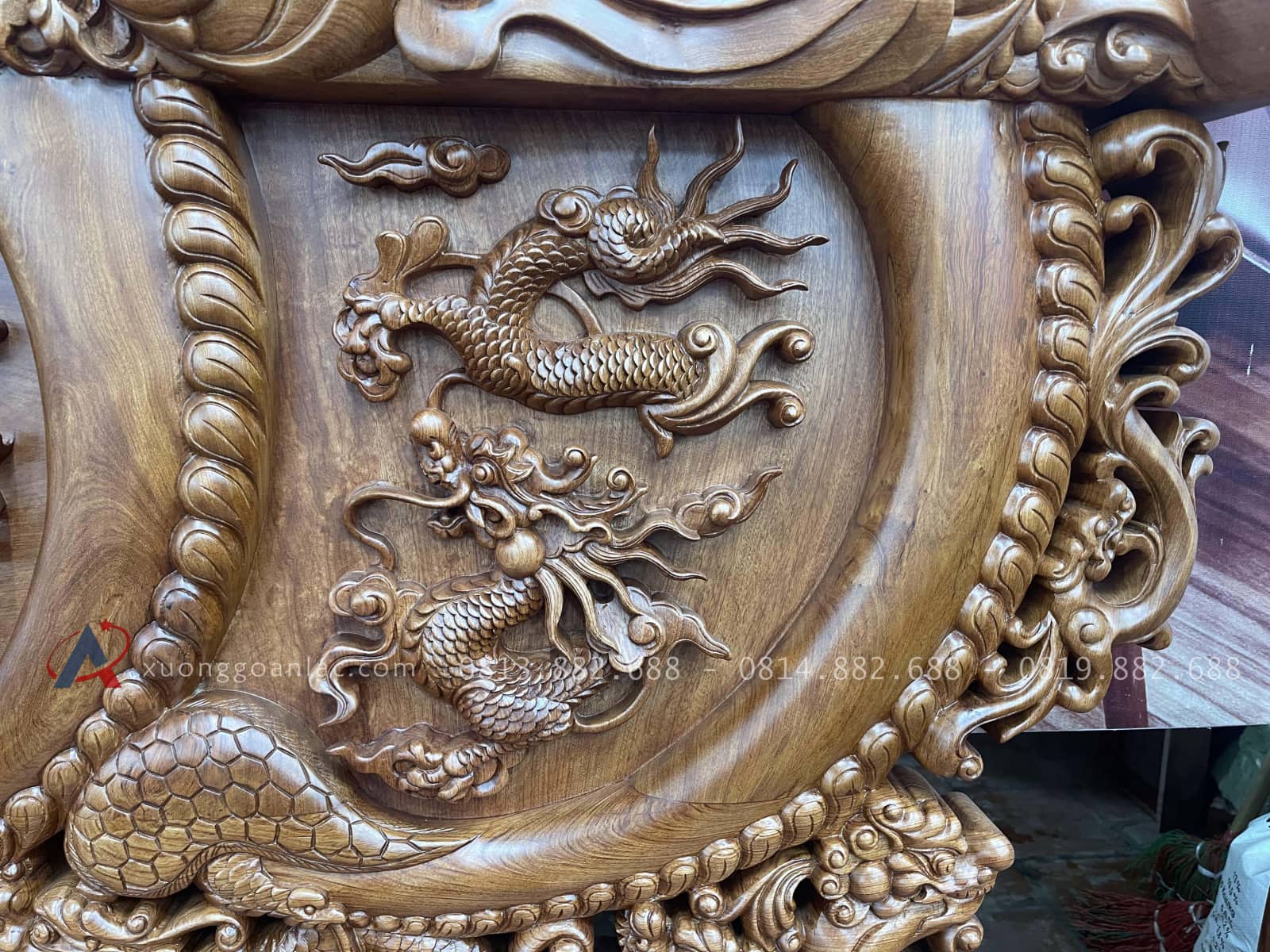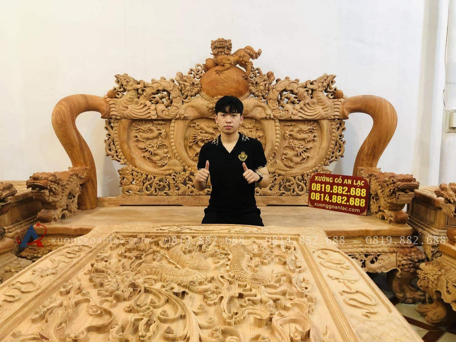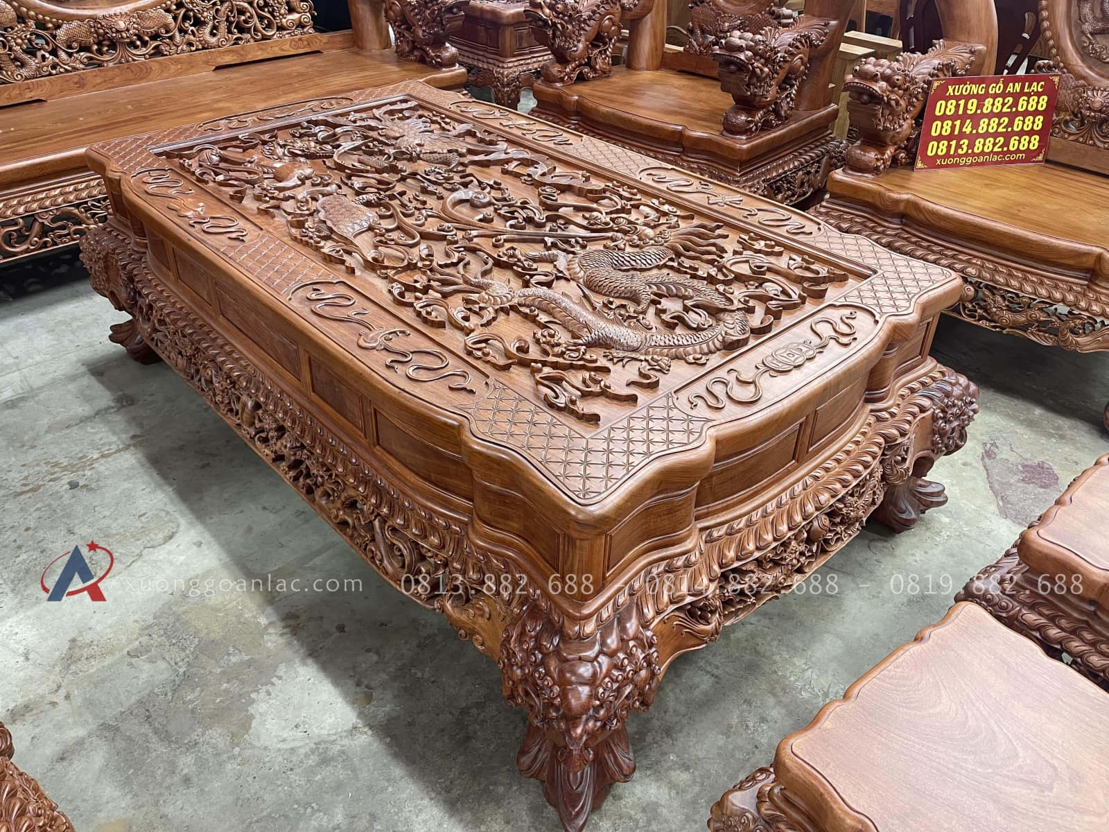 [Hoàn thiện] Bộ bàn ghế minh quốc nghê gỗ hương đá tay 18 chân 20 siêu vip