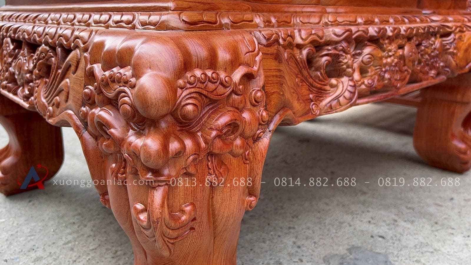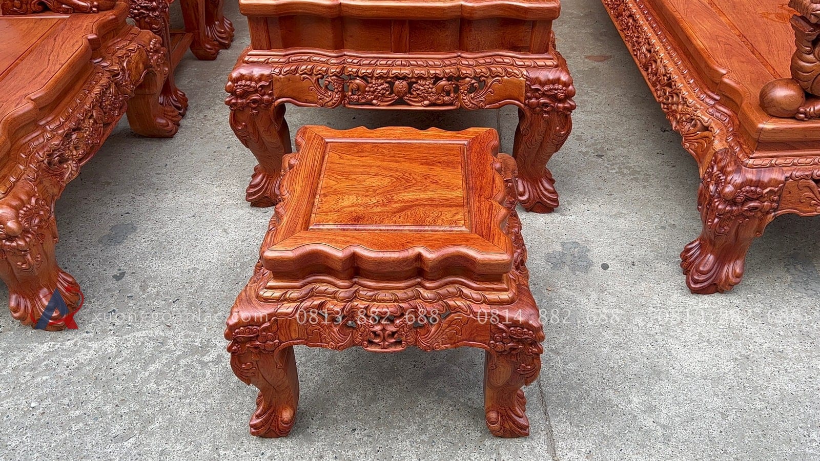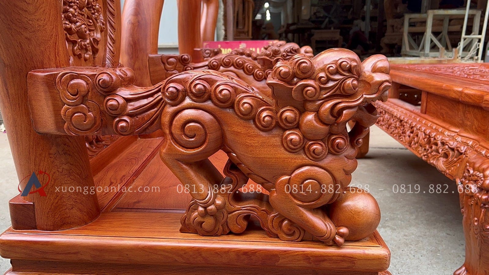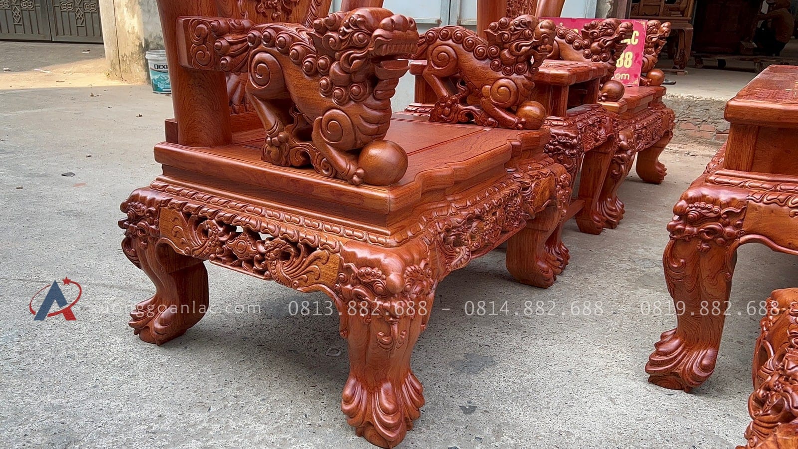 [Hoàn thiện] Bộ bàn ghế nghê đỉnh cột 12 hàng khung 5 ván 2 gỗ hương đá cao cấp