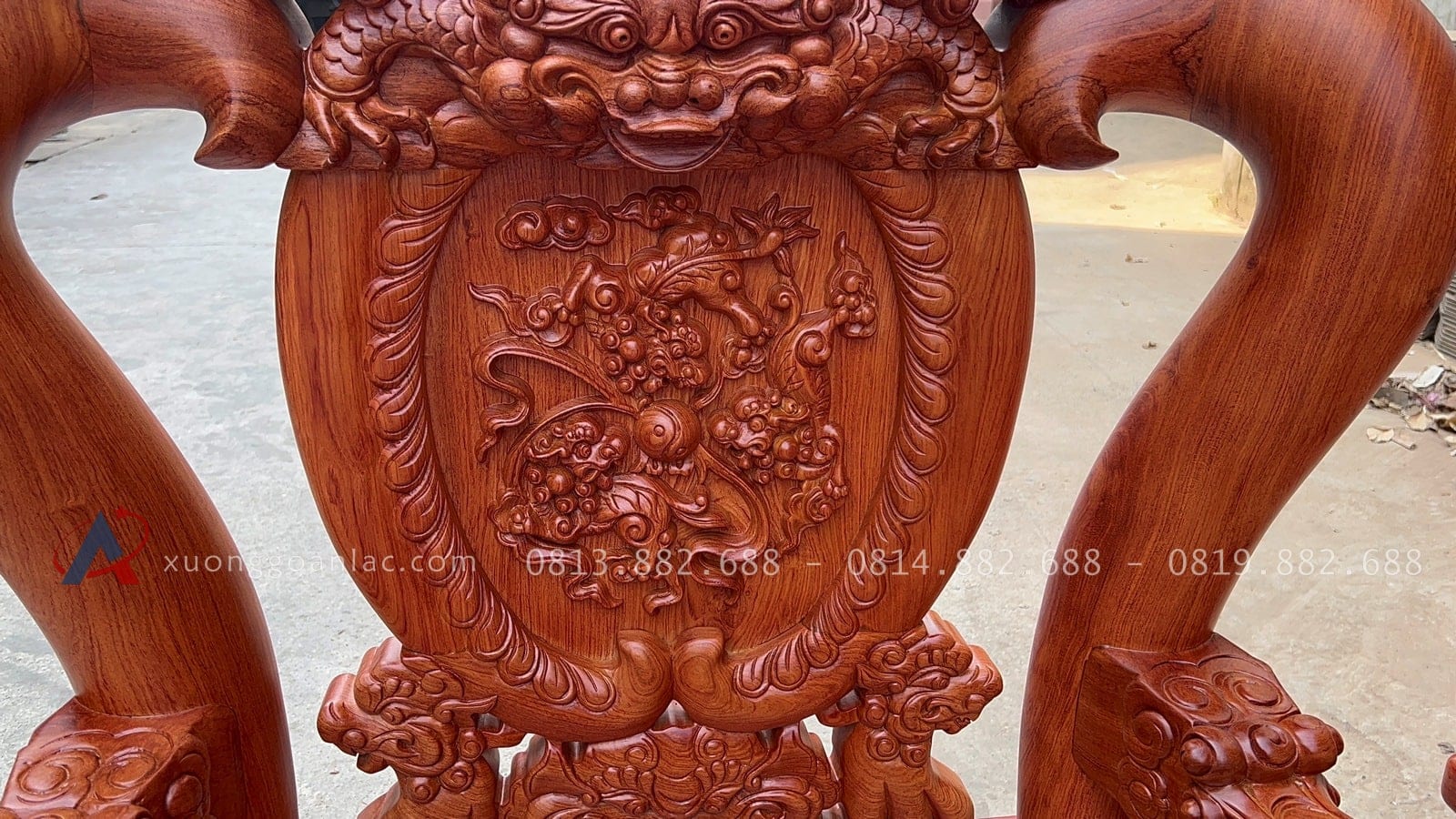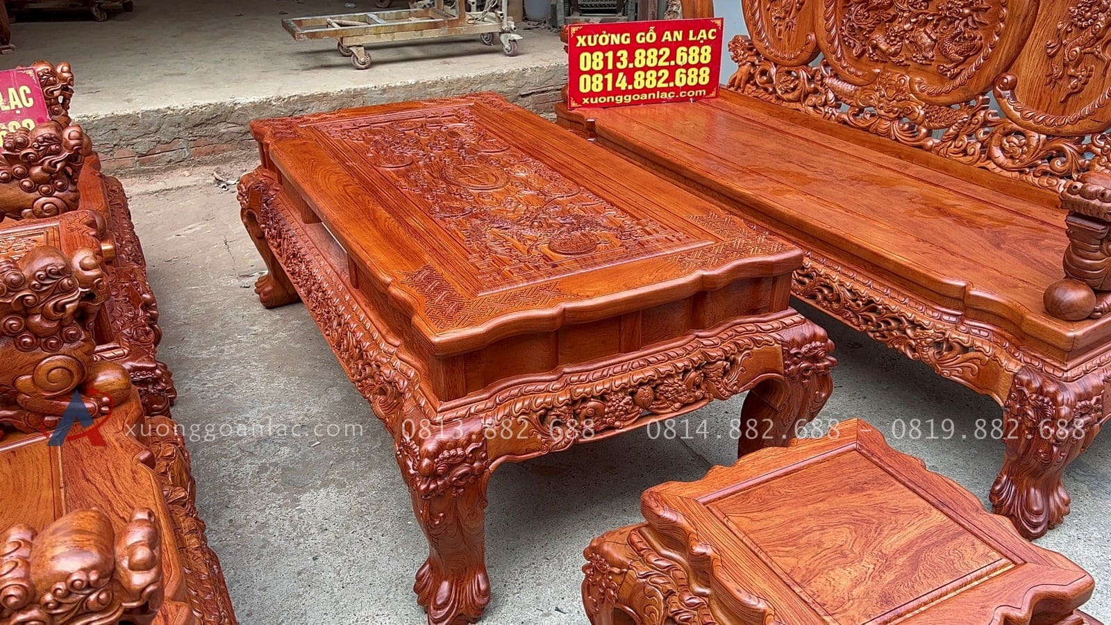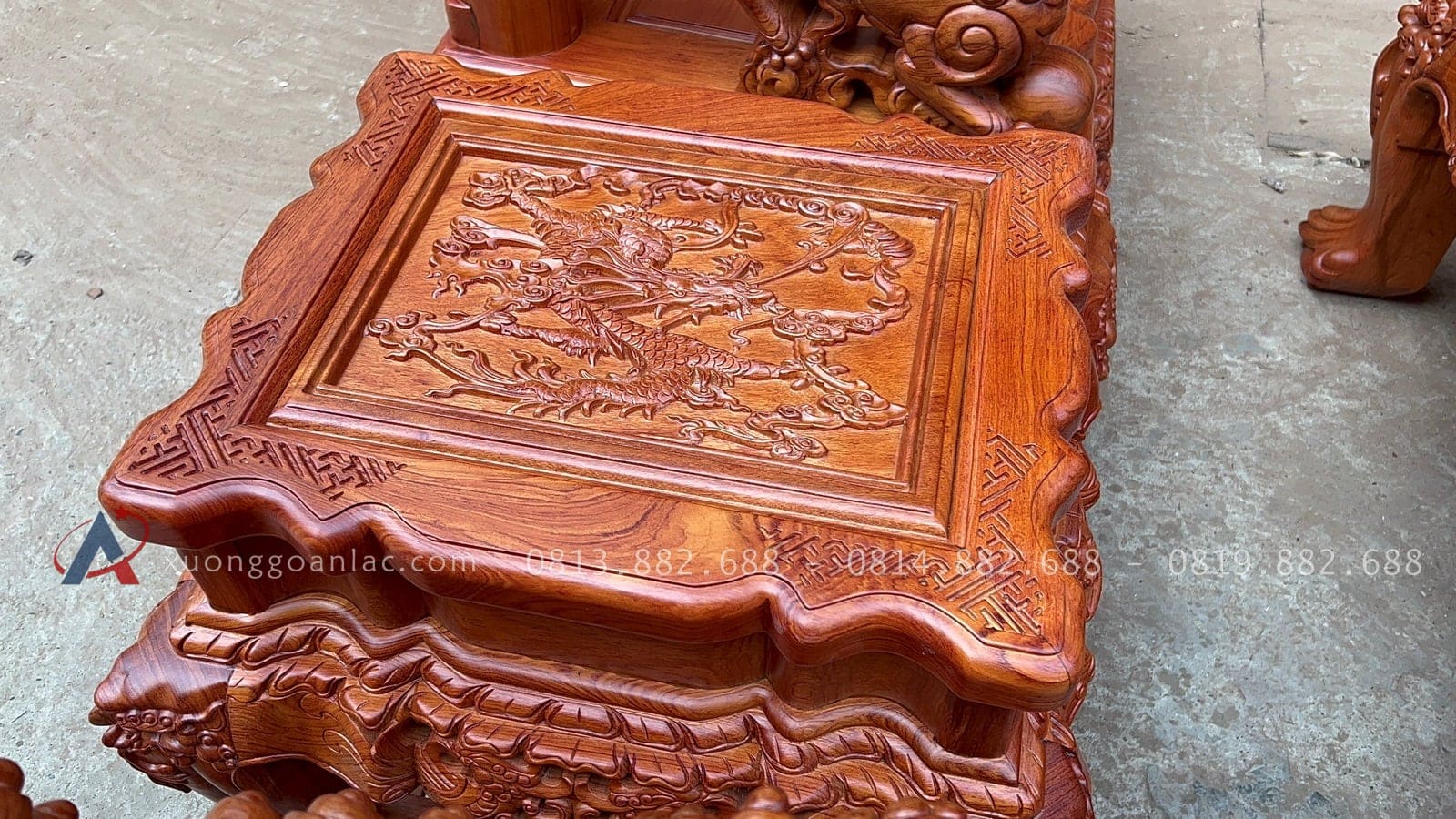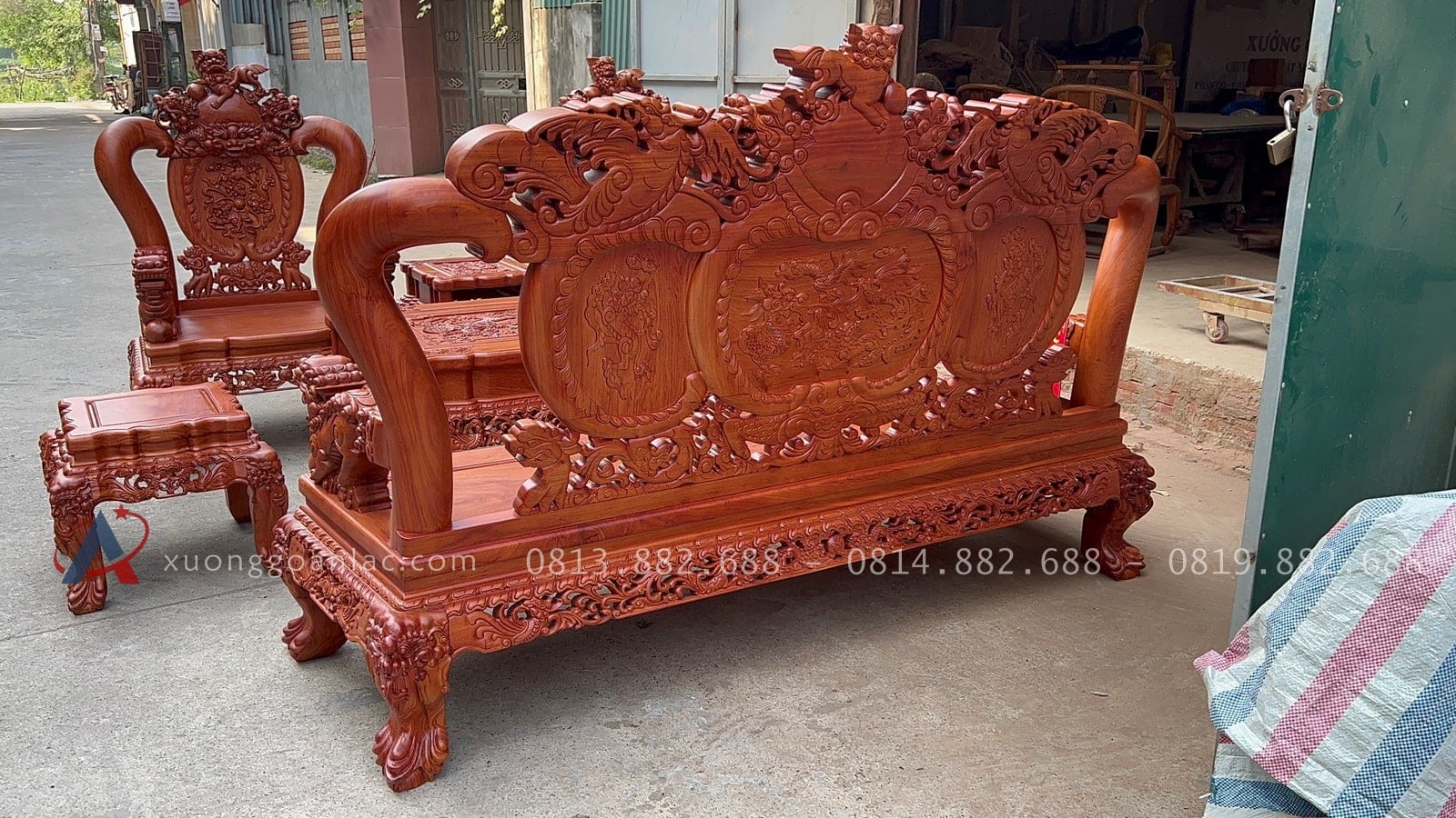 [Hoàn thiện] Bộ bàn ghế nghê đỉnh cột 12 hàng khung 5 ván 2 gỗ hương đá cao cấp