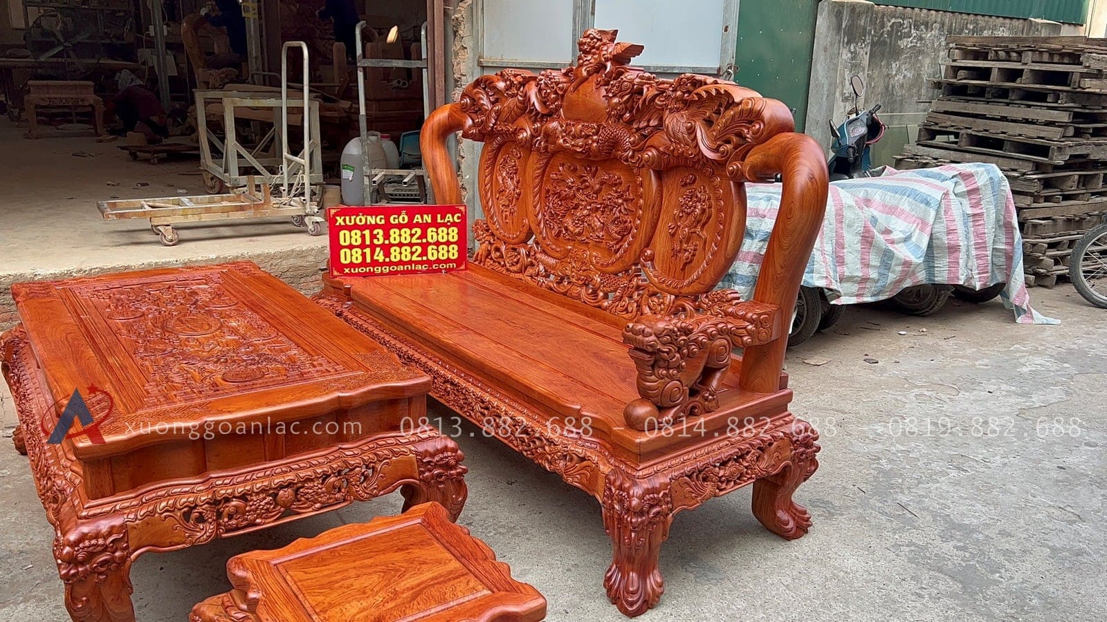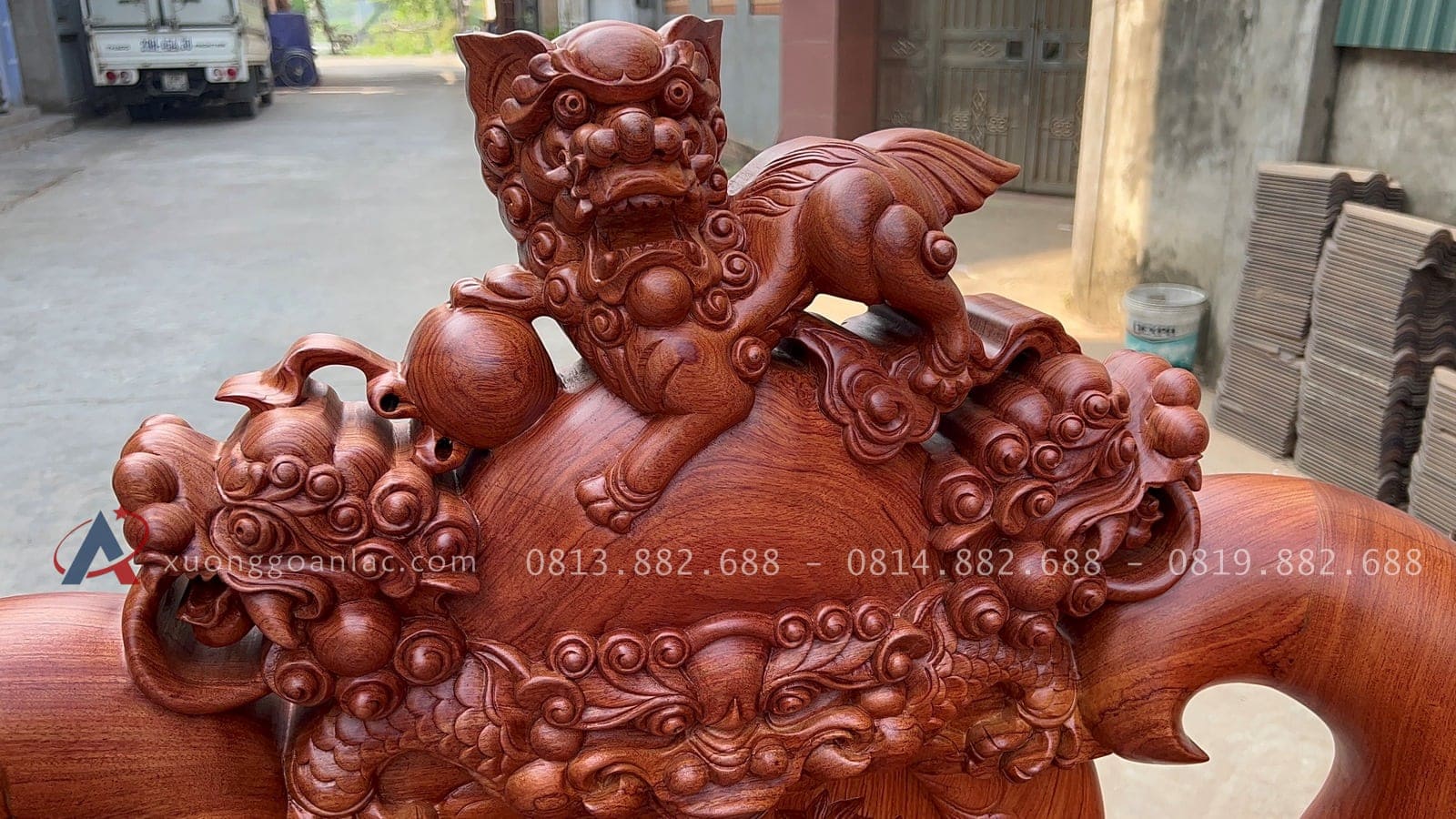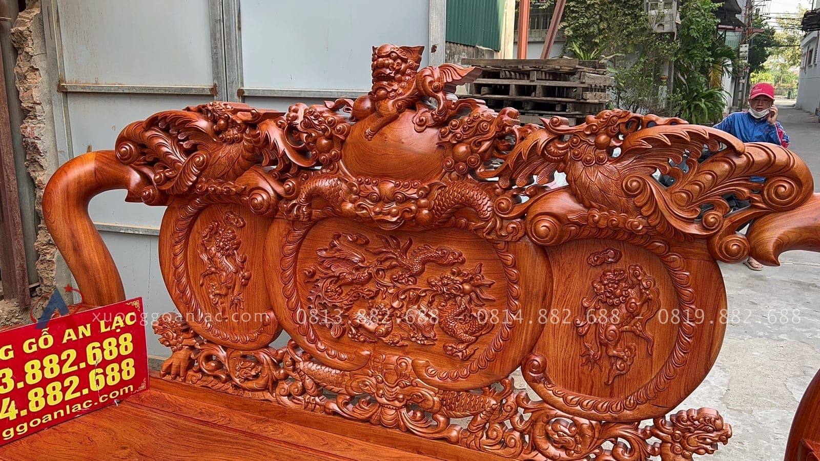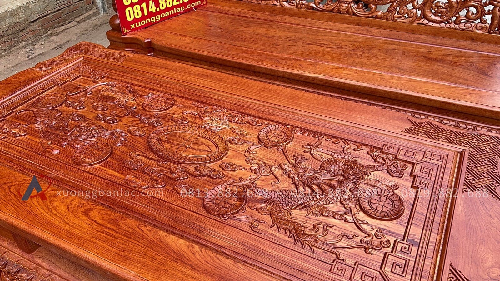 [Hoàn thiện] Bộ bàn ghế nghê đỉnh cột 12 hàng khung 5 ván 2 gỗ hương đá cao cấp