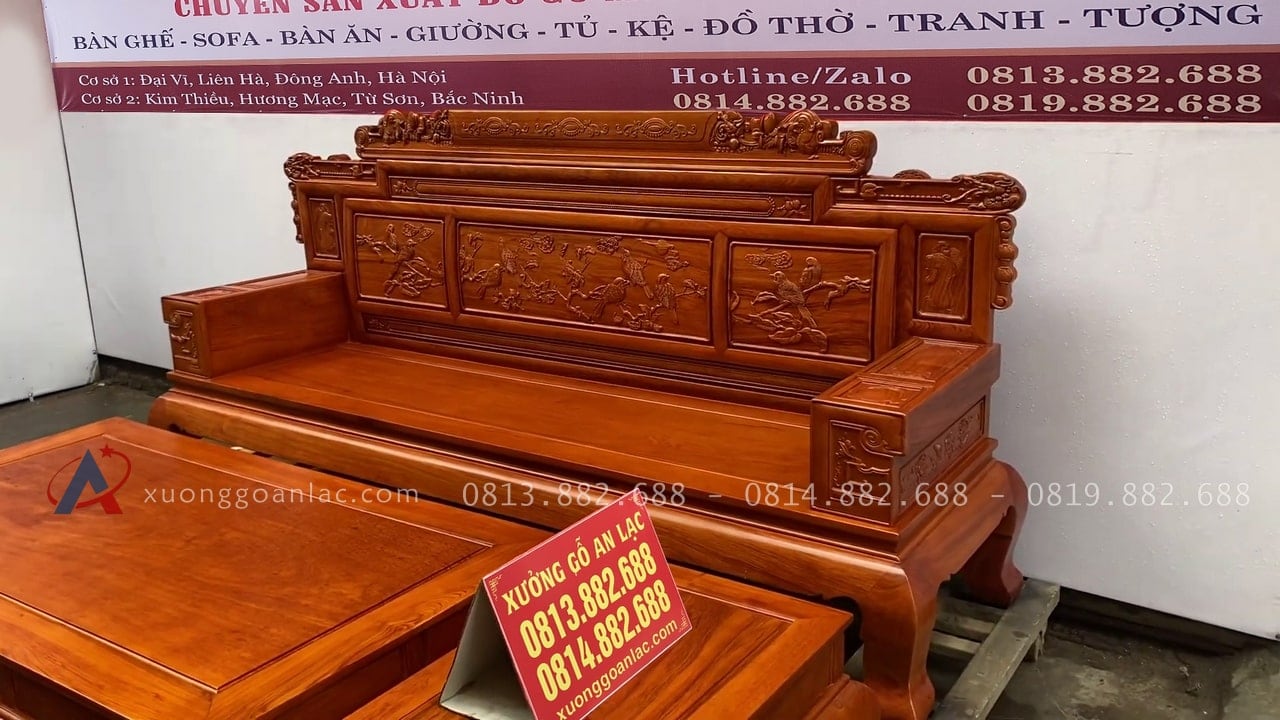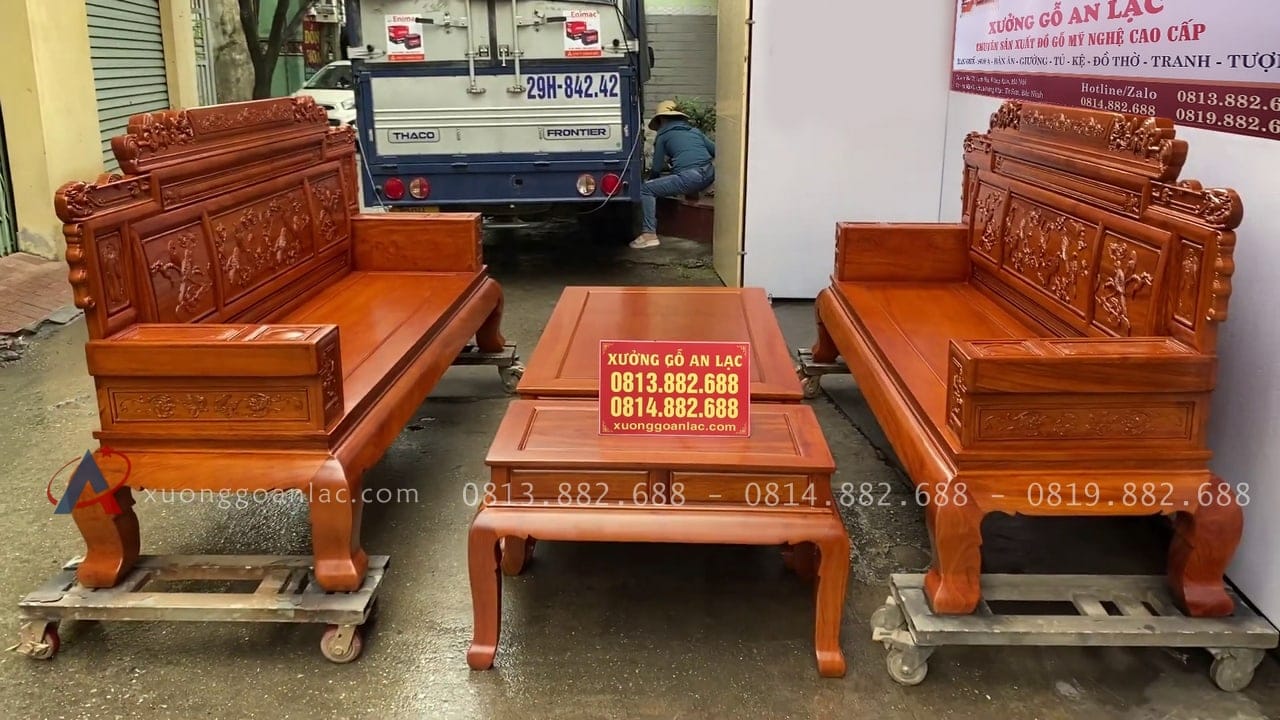[Hoàn thiện] Bộ bàn ghế Phù dung 4 món gỗ hương đá (Anh Đạt - Yên Định, Thanh Hóa)