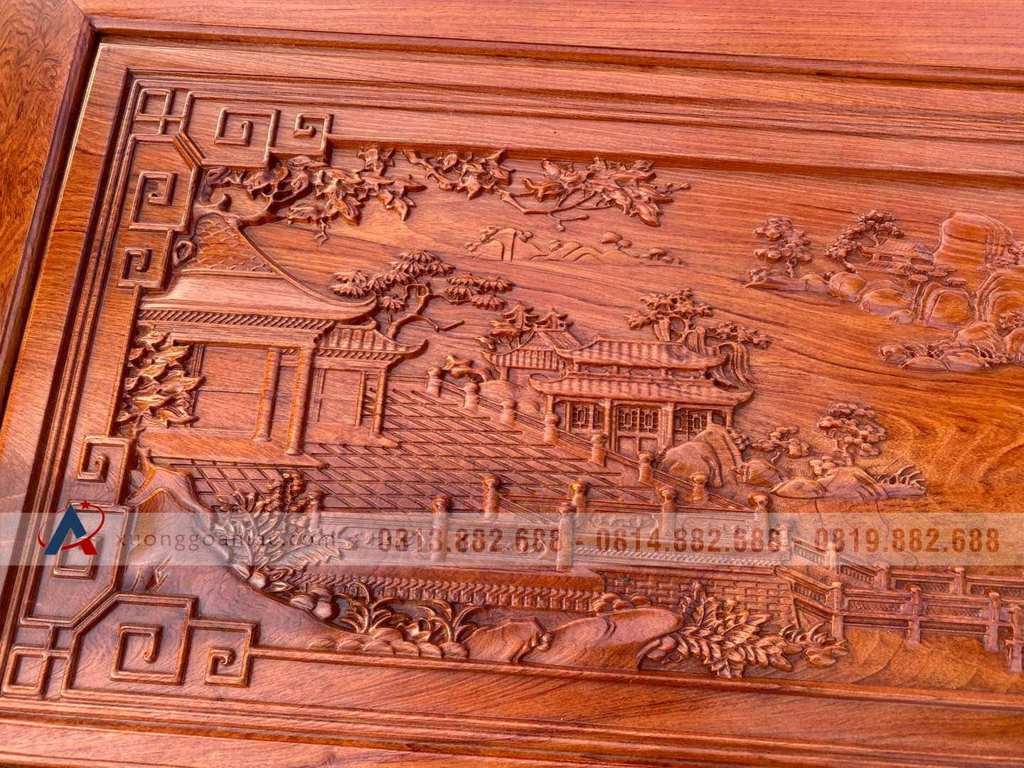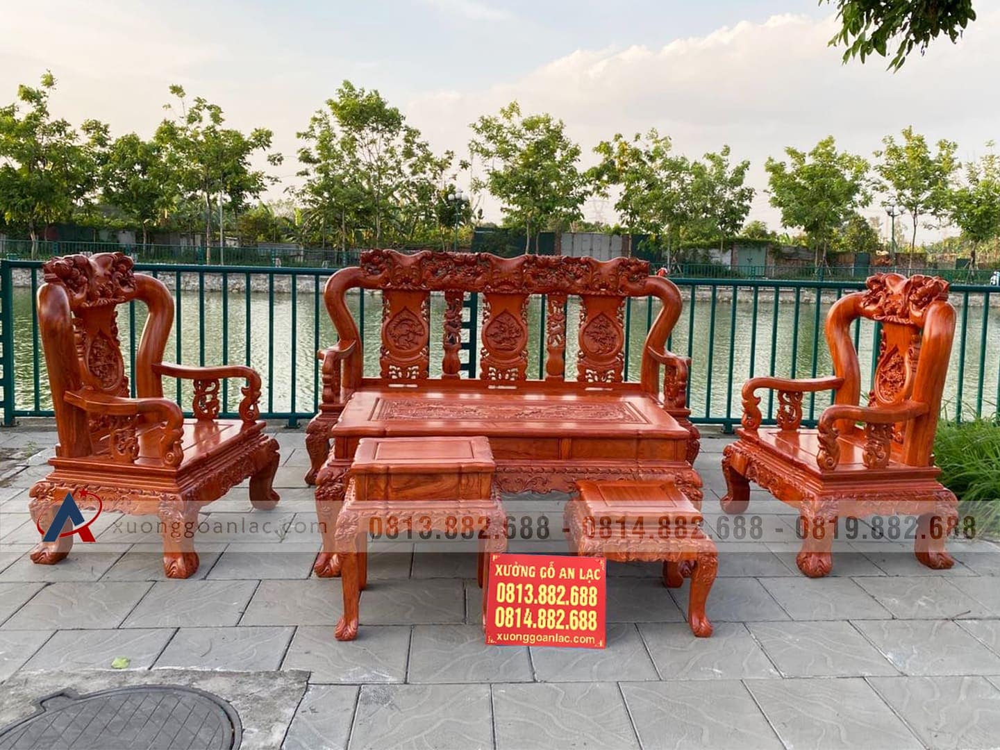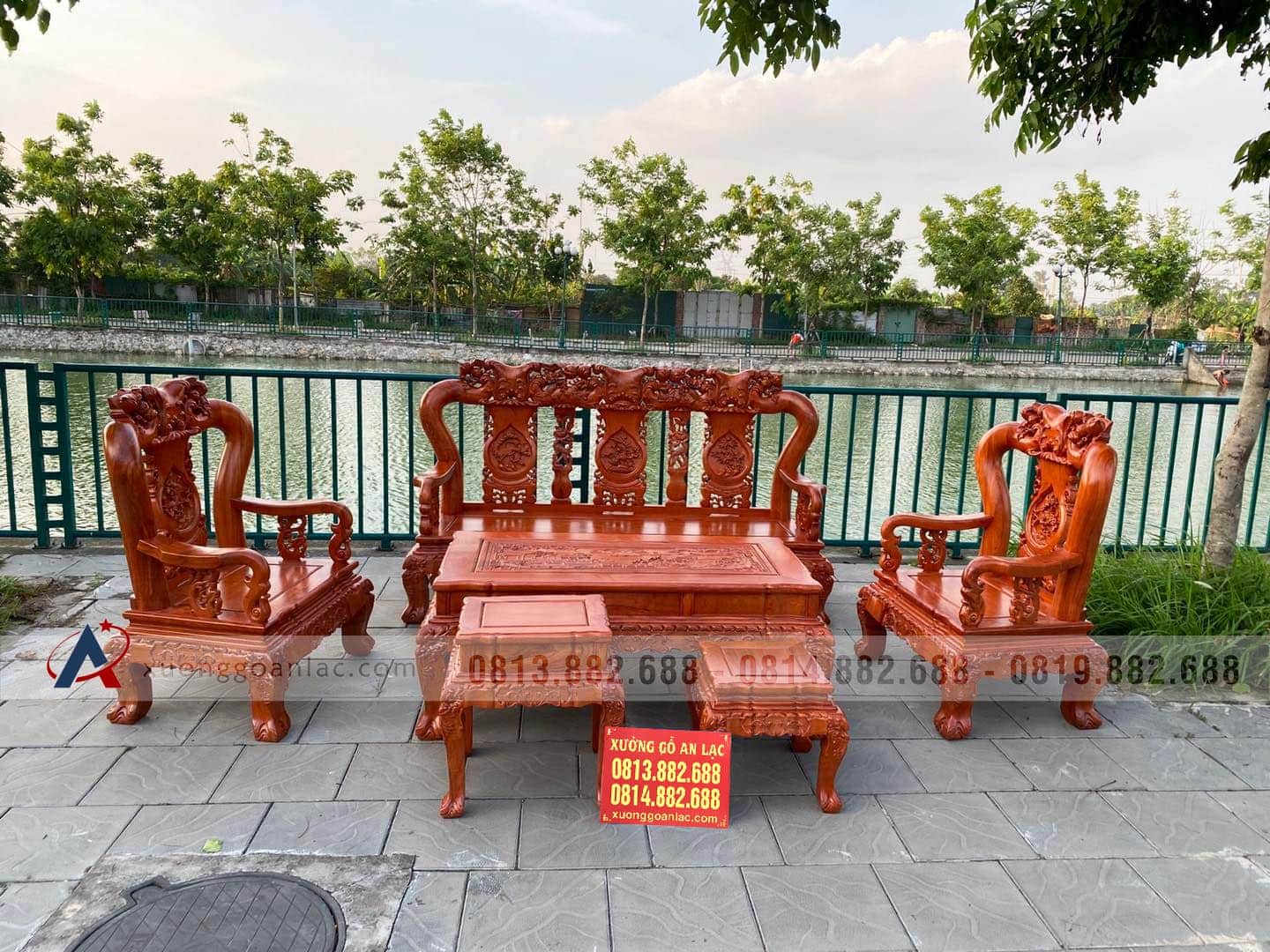 [Hoàn thiện] Bộ bàn ghế quốc đào tay 12 gỗ hương đá đục tay 100%