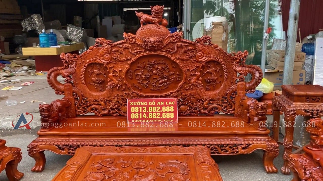 Xưởng Gỗ An Lạc xin trân trọng giới thiệu đến quý khách hàng một mẫu bàn ghế rồng đỉnh hàng vip vừa được xưởng hoàn thiện để chuẩn bị bàn giao về Lâm Hà - Lâm Đông cho gia đình chị Hiền. Mời các bác cùng chiêm ngưỡng thành phẩm.