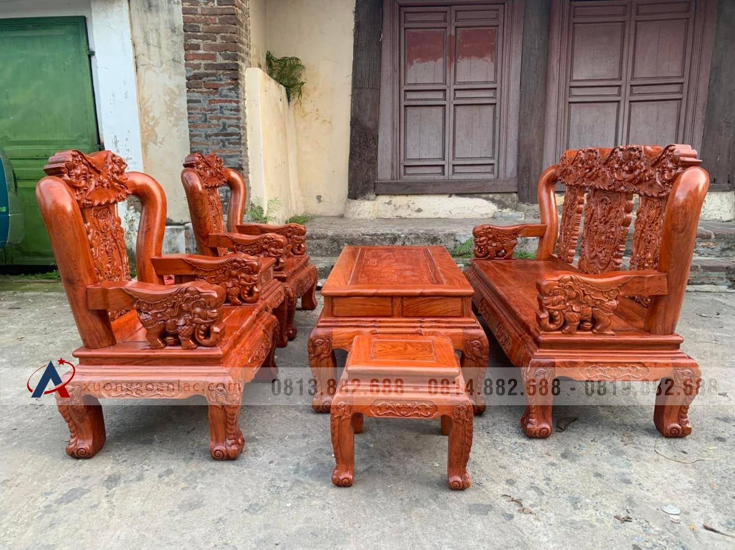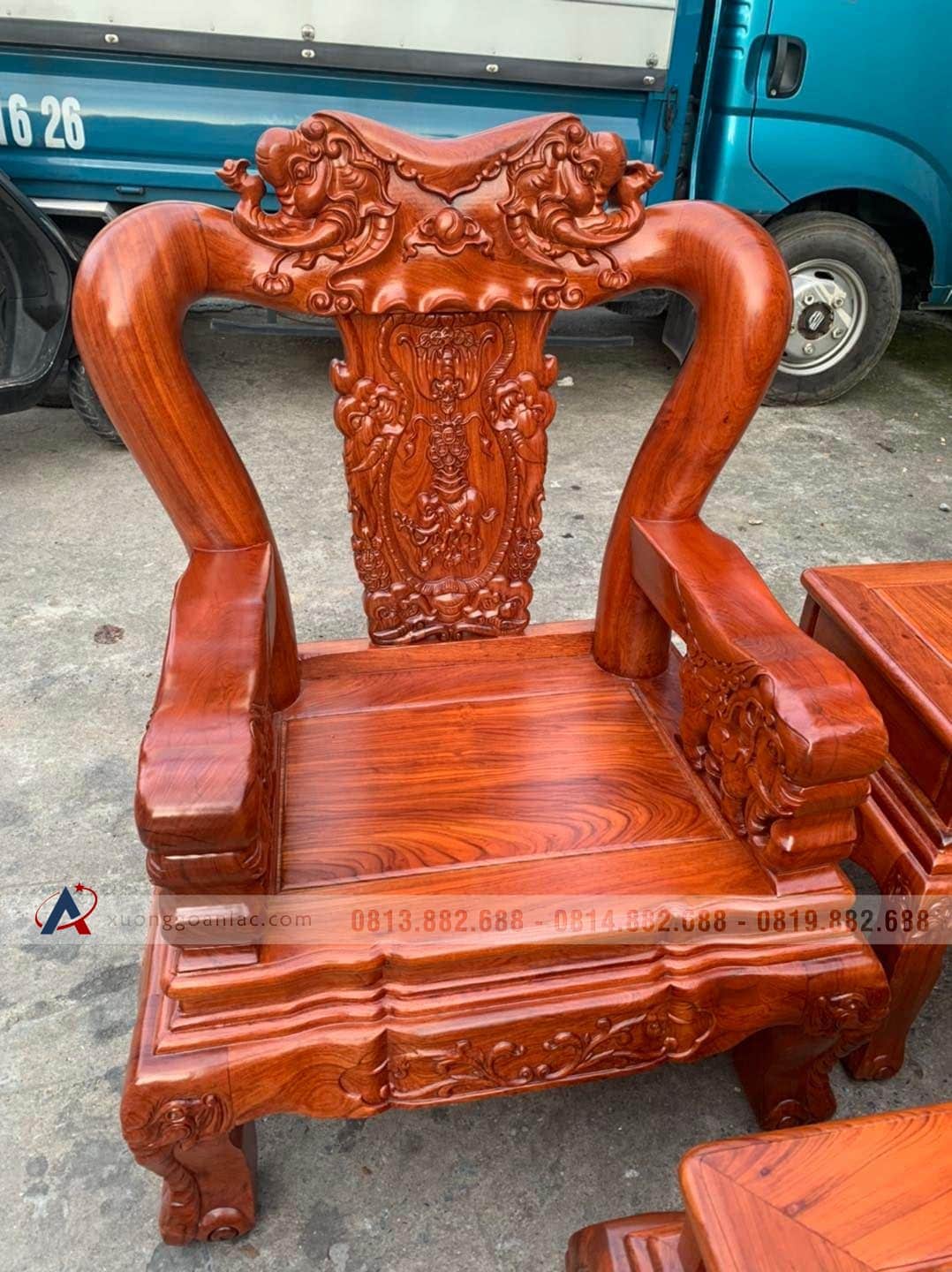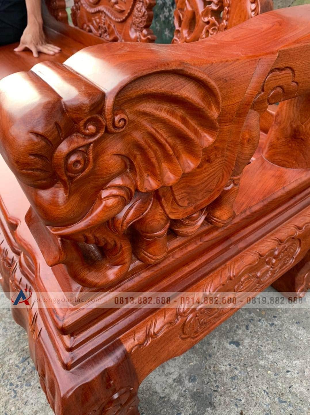 [Hoàn thiện] Bộ bàn ghế voi tài lộc tay cột liền 12cm gỗ hương đá
