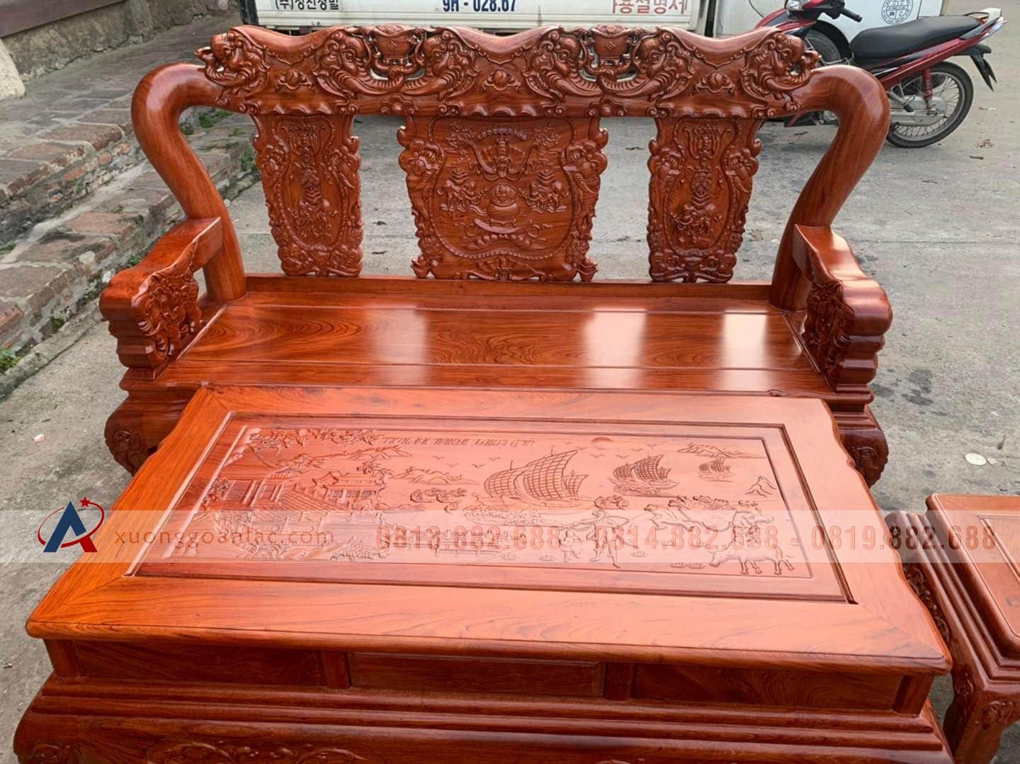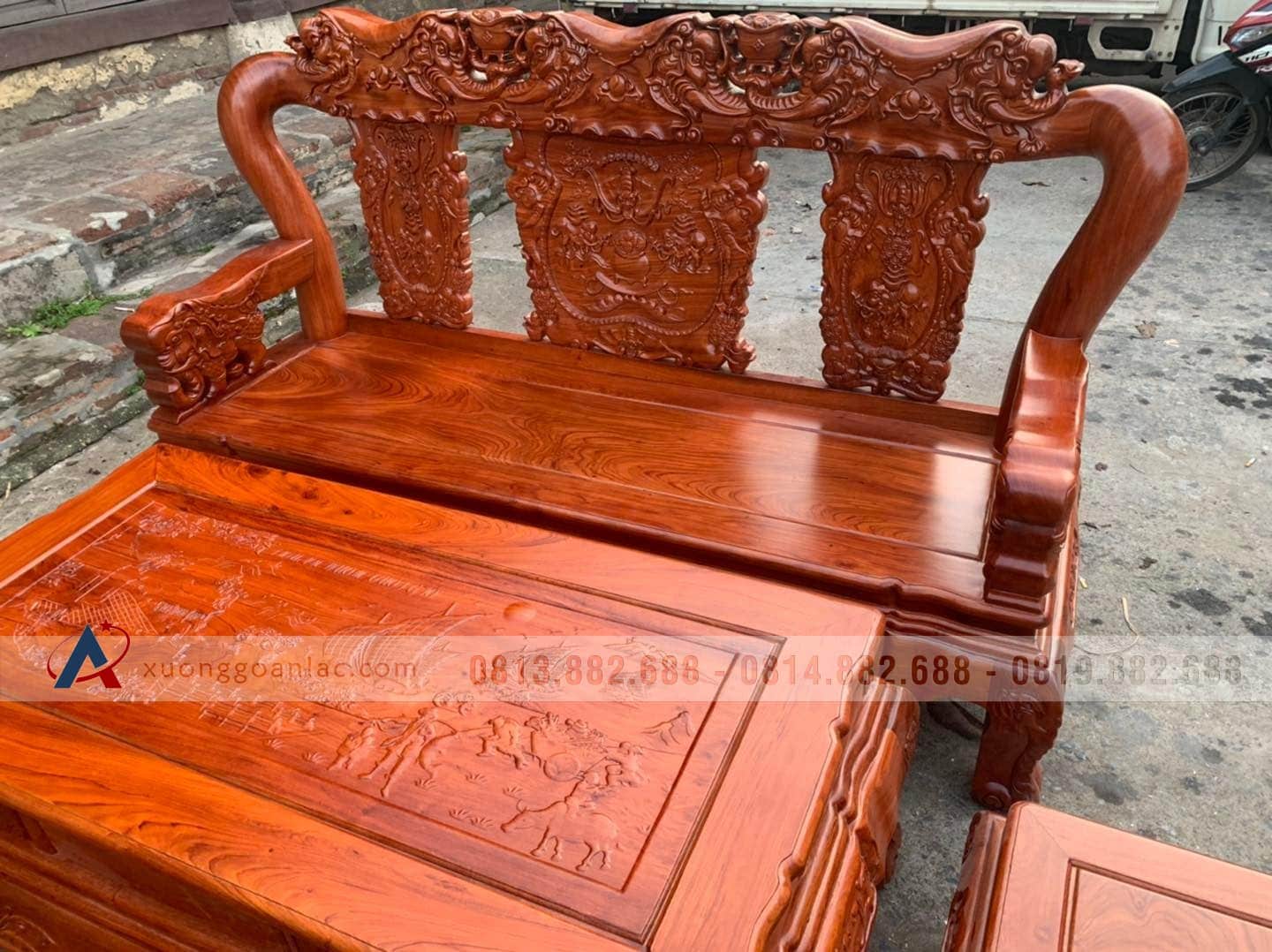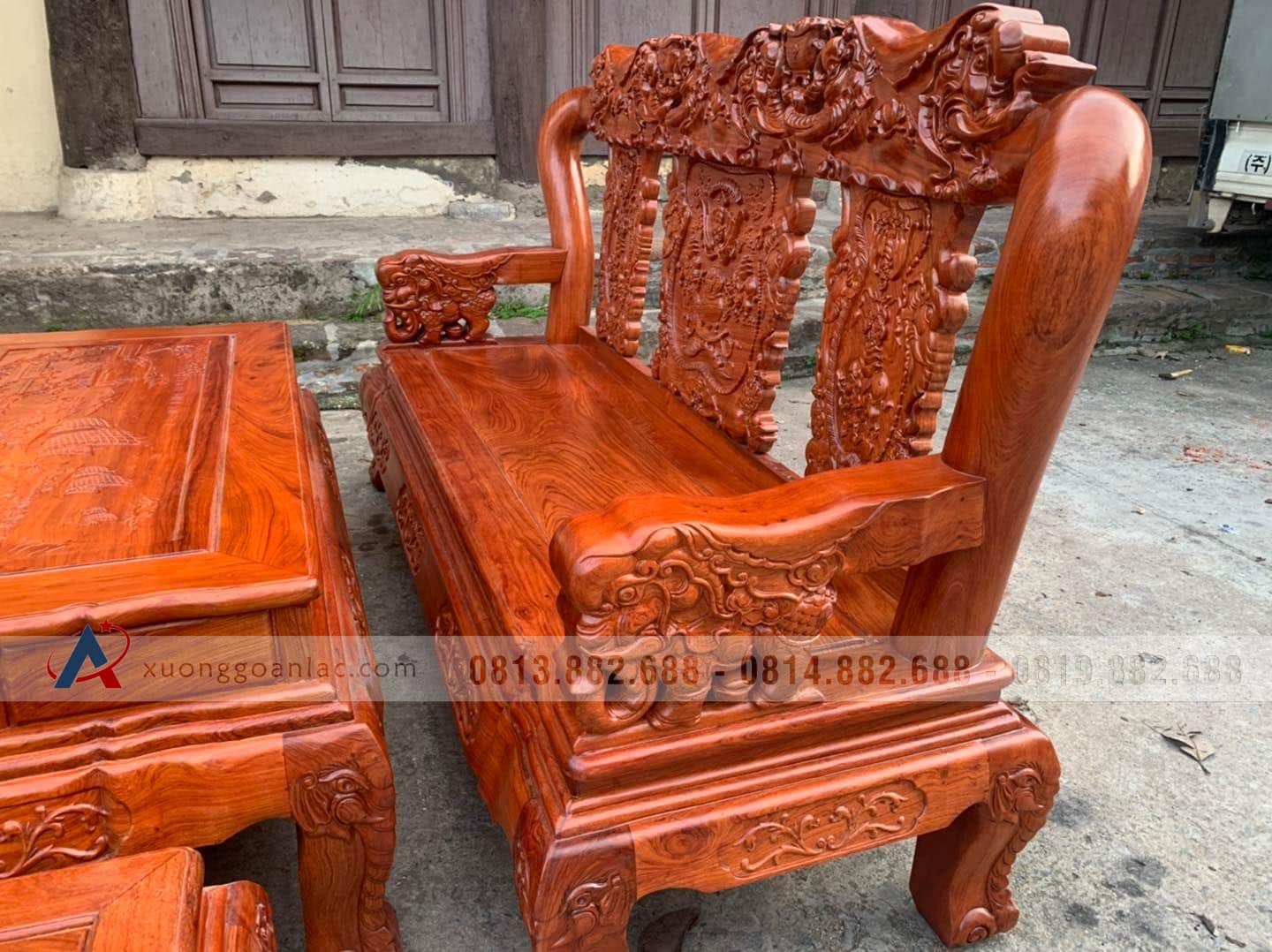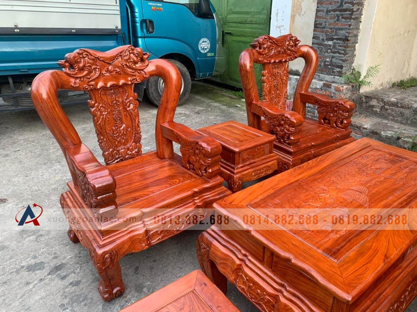 [Hoàn thiện] Bộ bàn ghế voi tài lộc tay cột liền 12cm gỗ hương đá