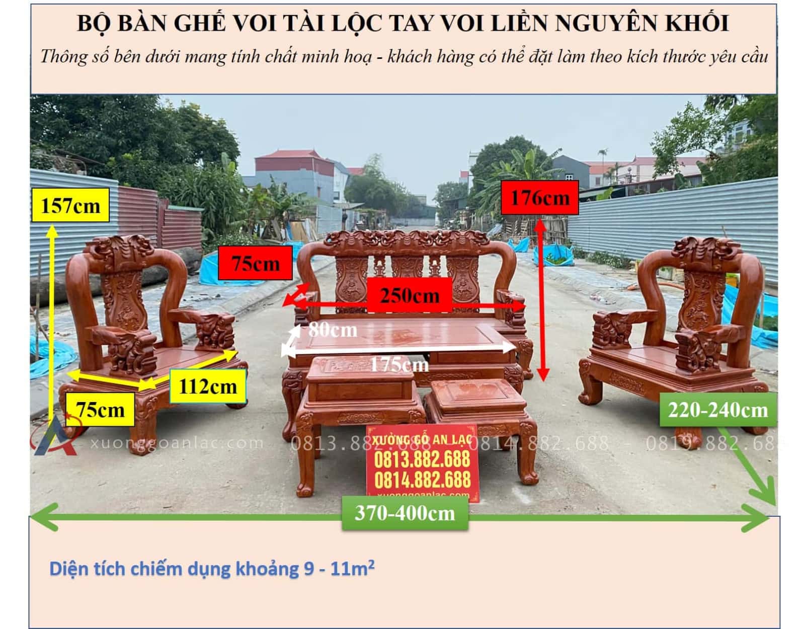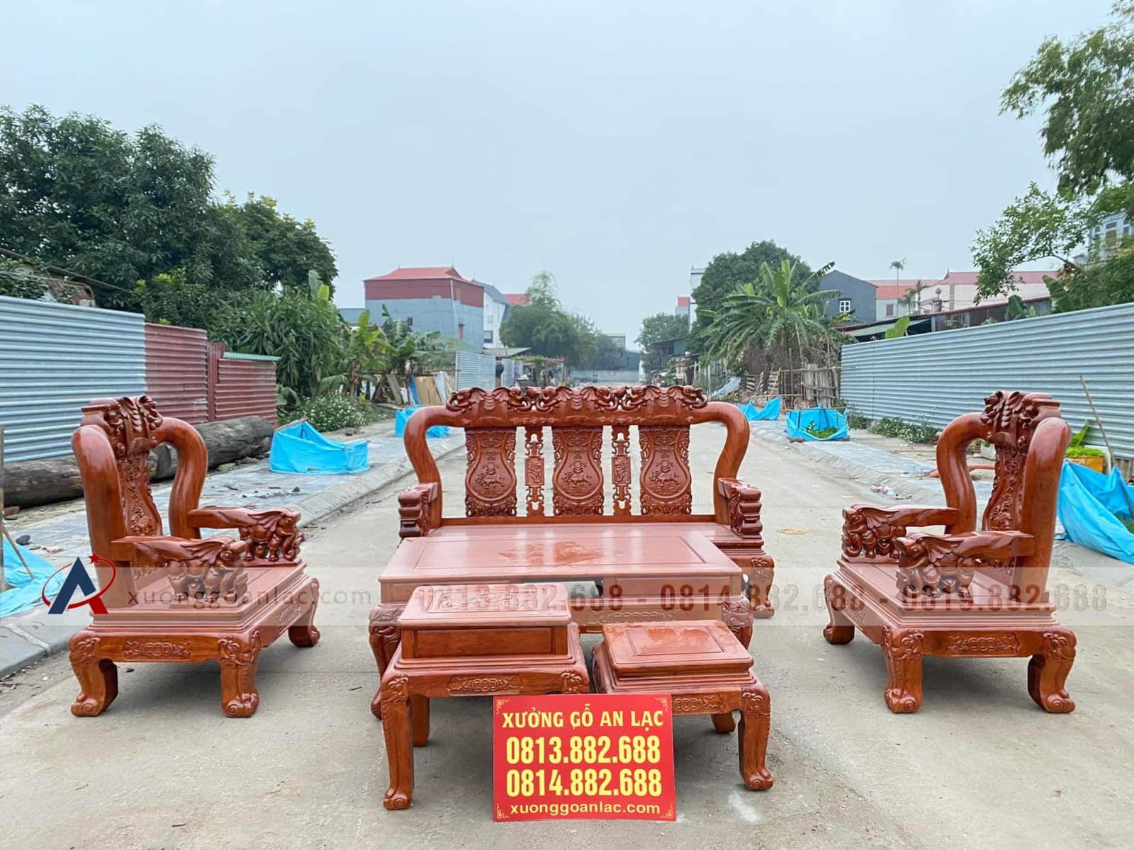 [Hoàn thiện] Bộ bàn ghế Voi tài lộc tay voi liền khối gỗ gõ đỏ