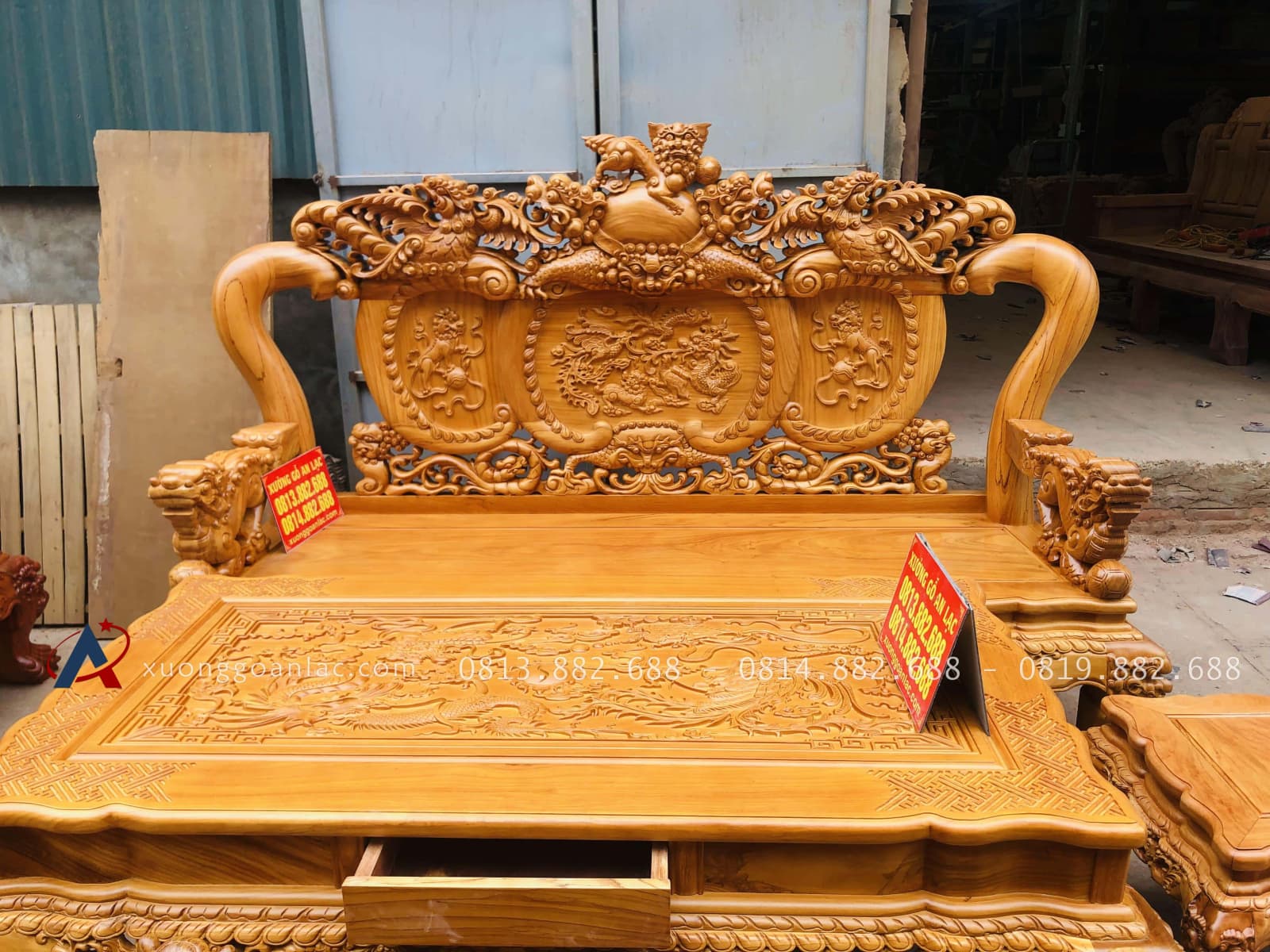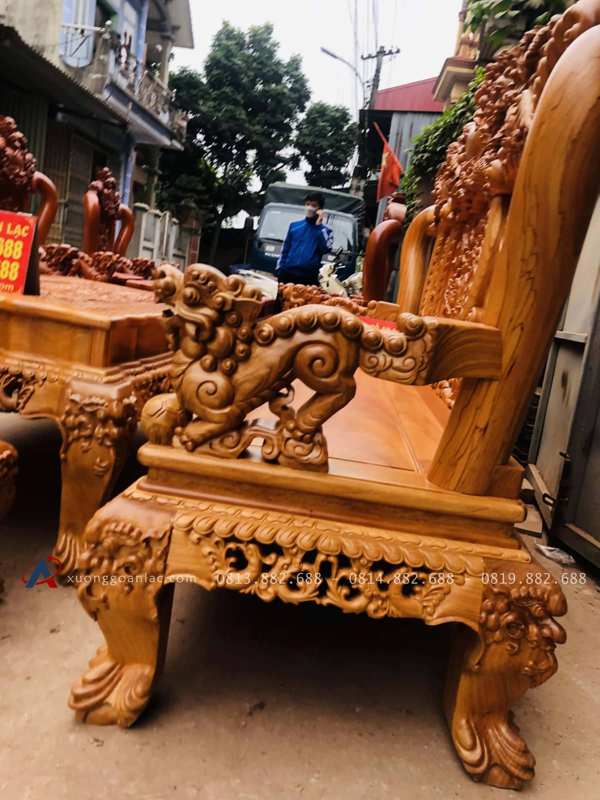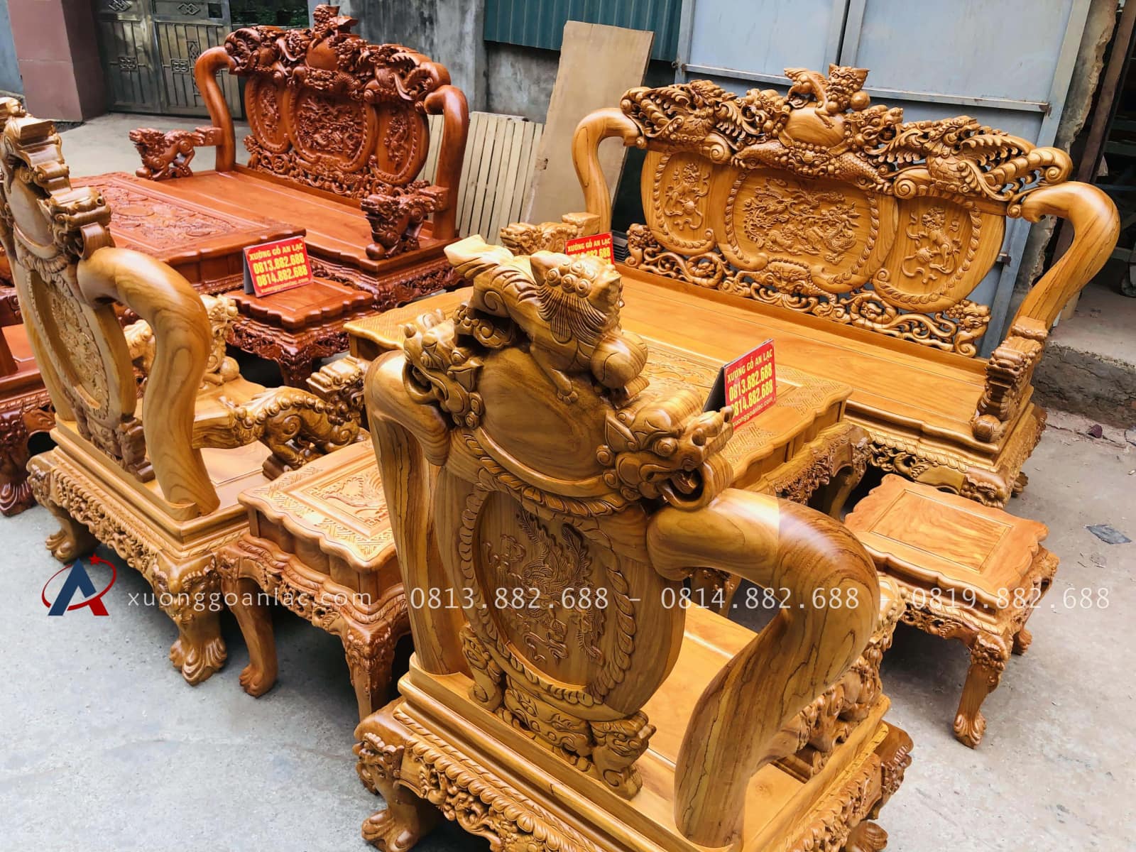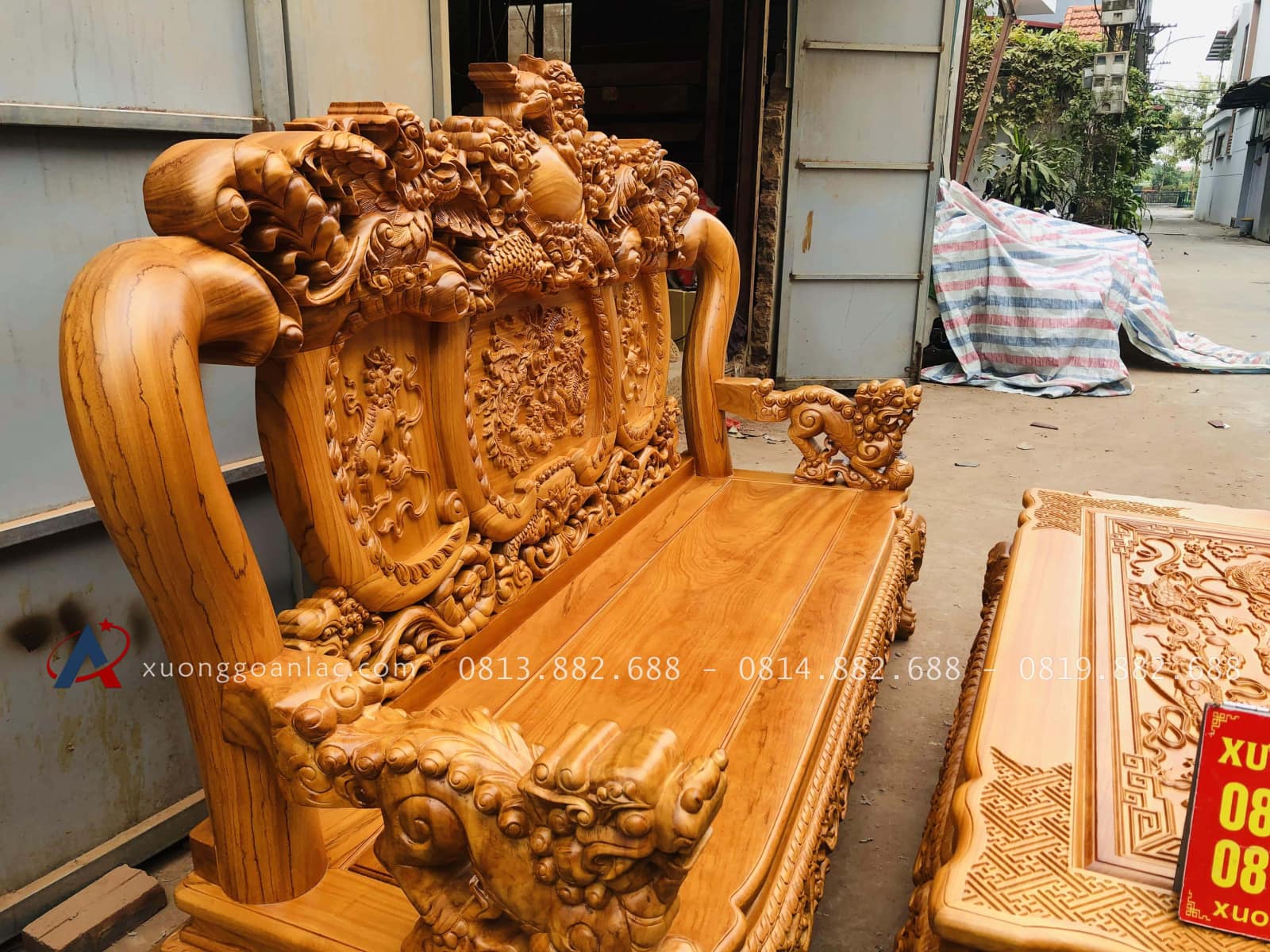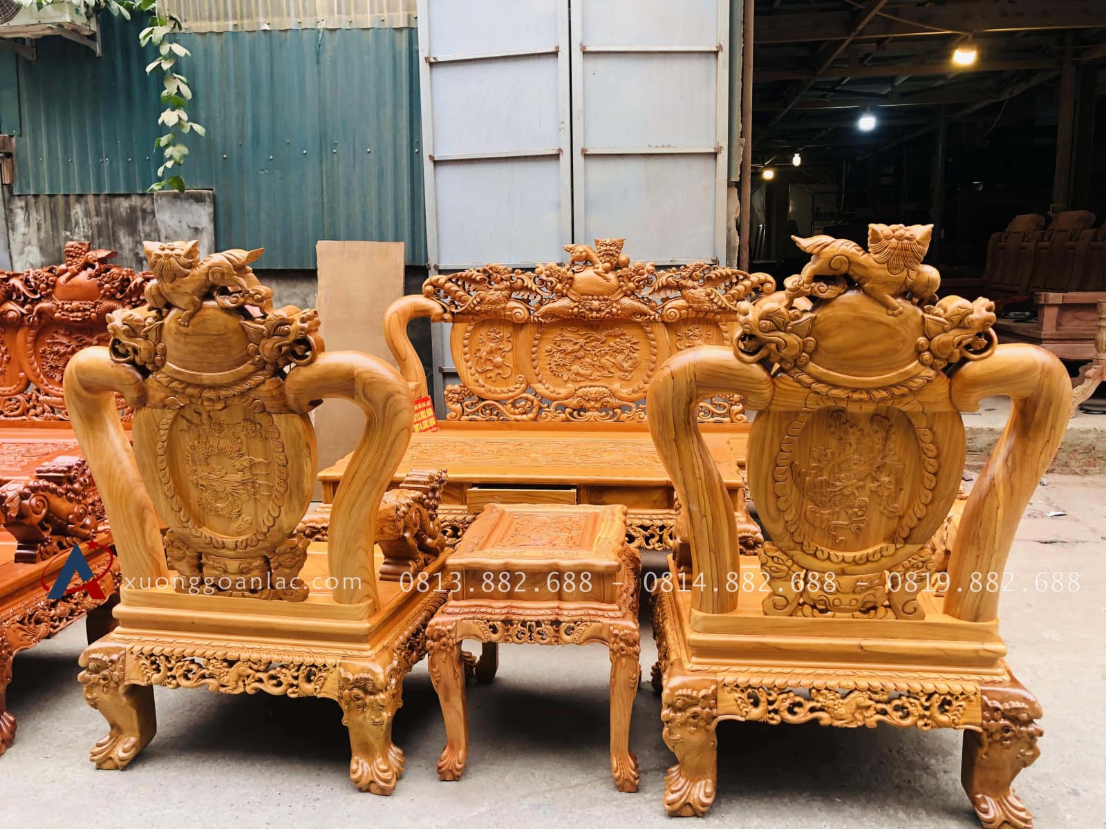 Hoàn thiện và chuẩn bị bàn giao bộ bàn ghế phòng khách mẫu minh quốc nghê cho gia đình chú Thanh ở Nghệ An. Bộ sản phẩm được xưởng gỗ An Lạc nhận đặt hàng và làm cho chú chỉ trong vong 3 tuần, nhưng vẫn đảm bảo về chất lượng nhờ có một tiền đề vững chắc ở quy mô và một đội ngũ lớn gồm nhiều thợ mộc có tay nghề. Mời các bác cùng tham khảo: