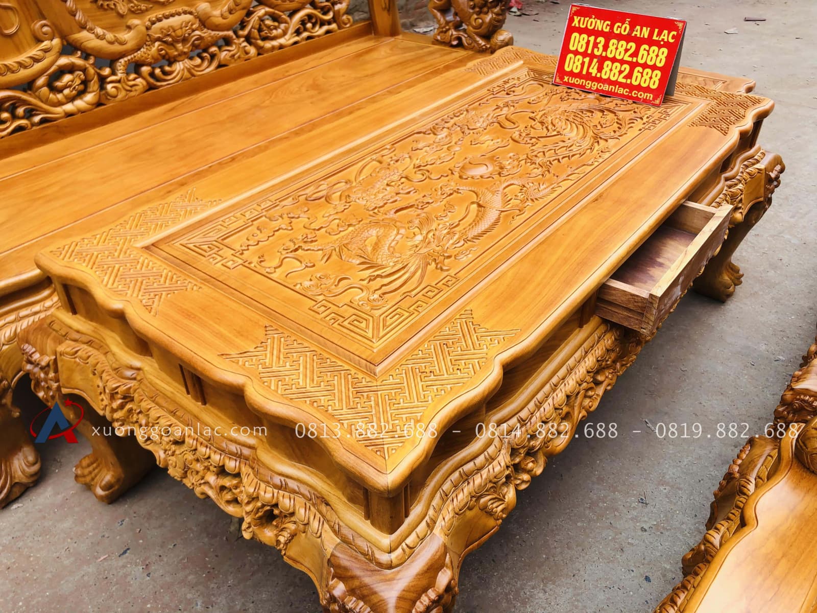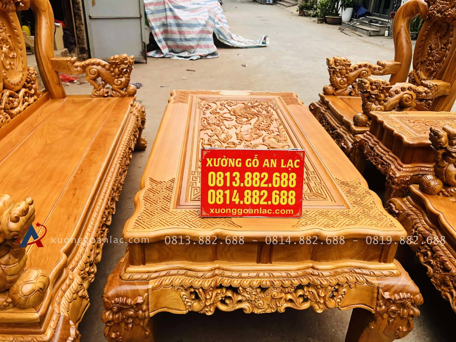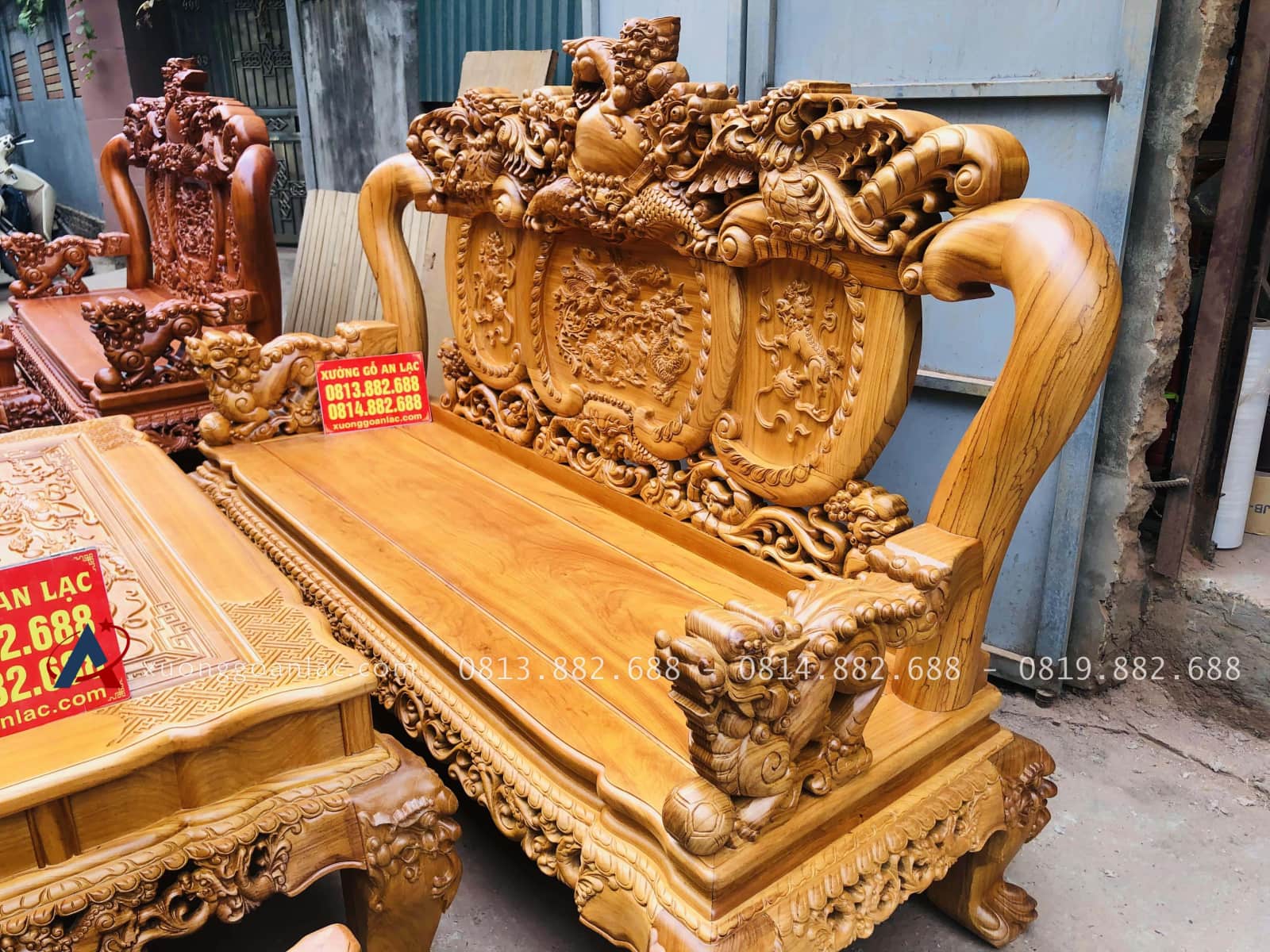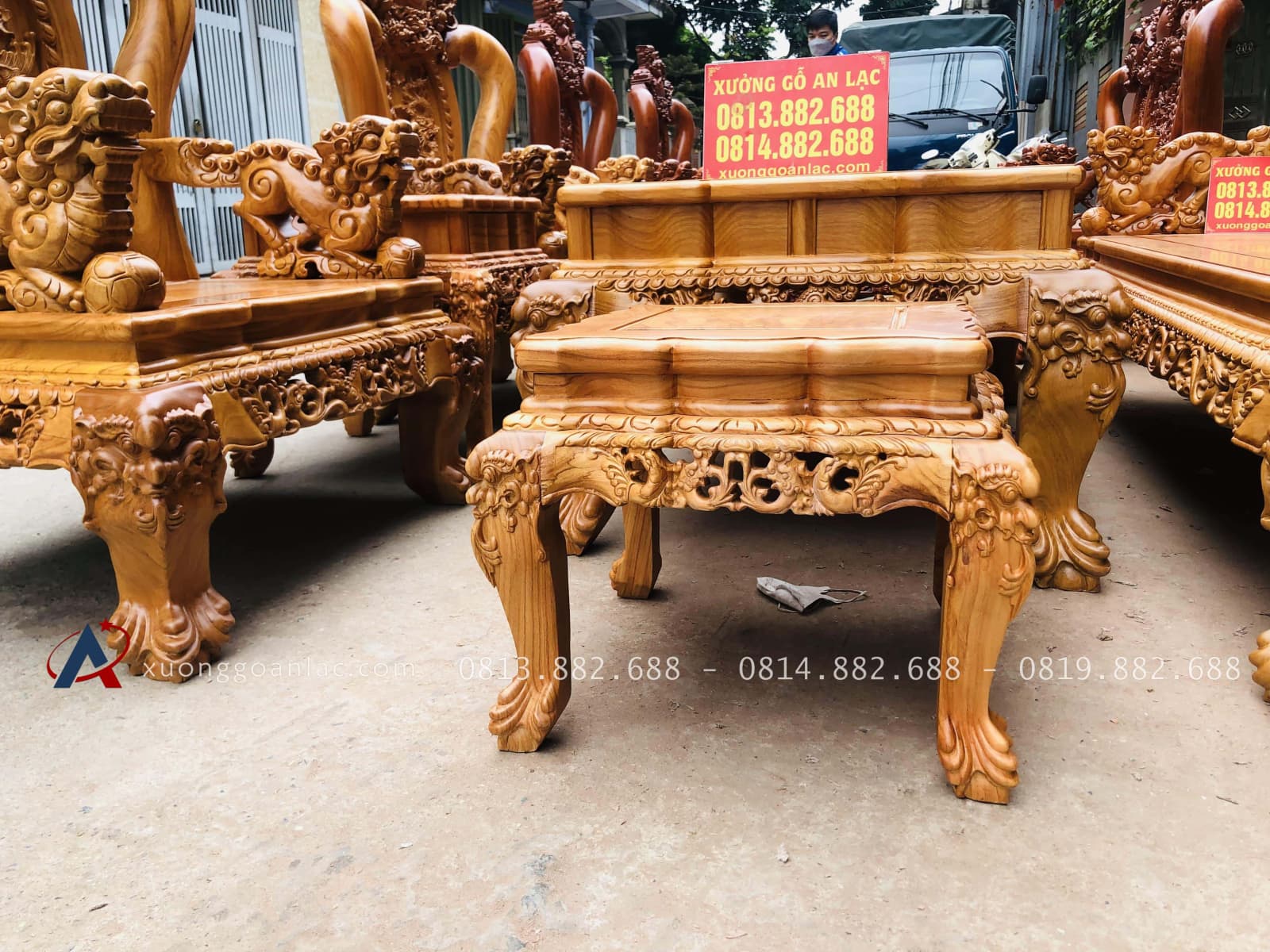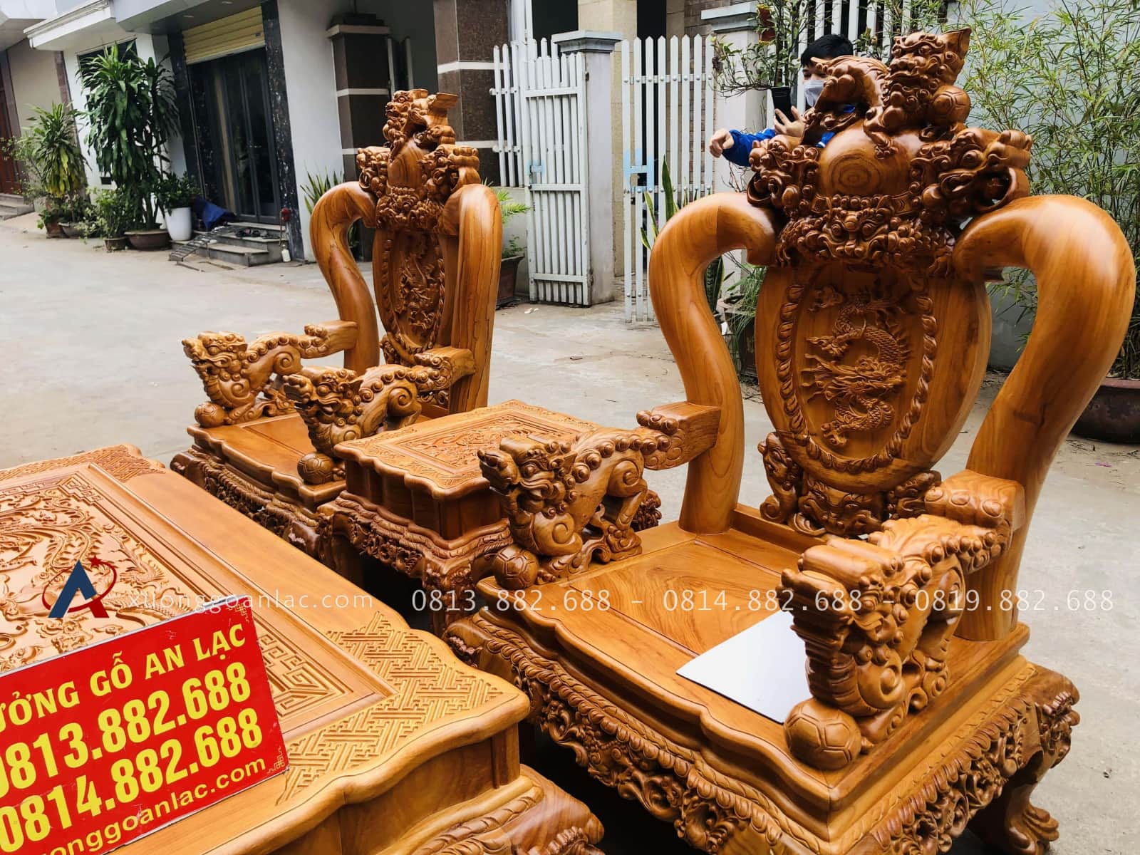 Hoàn thiện và chuẩn bị bàn giao bộ bàn ghế phòng khách mẫu minh quốc nghê cho gia đình chú Thanh ở Nghệ An. Bộ sản phẩm được xưởng gỗ An Lạc nhận đặt hàng và làm cho chú chỉ trong vong 3 tuần, nhưng vẫn đảm bảo về chất lượng nhờ có một tiền đề vững chắc ở quy mô và một đội ngũ lớn gồm nhiều thợ mộc có tay nghề. Mời các bác cùng tham khảo: