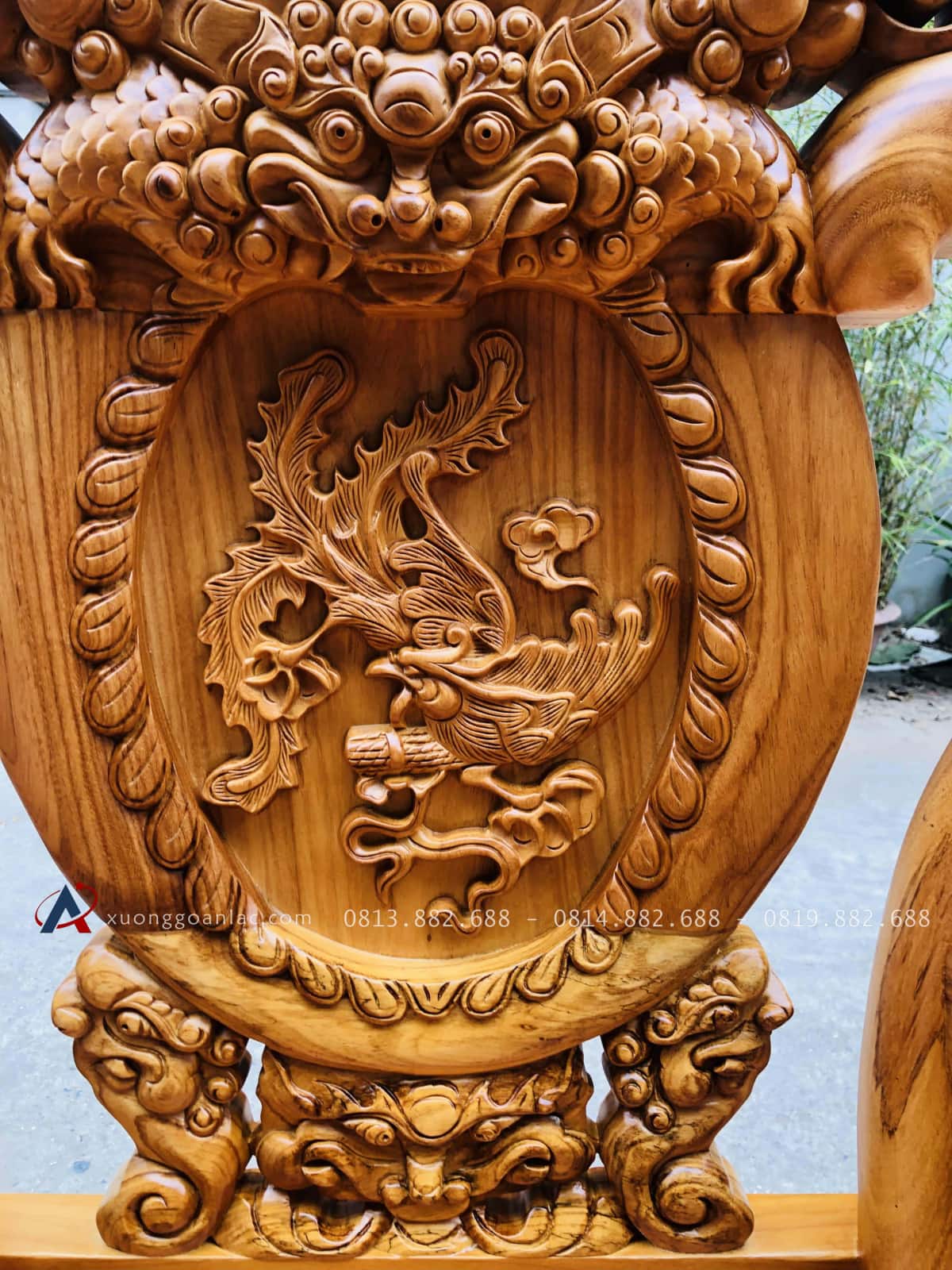- Hai chiếc ghế đơn có cùng thiết kế, nhưng vẫn được tạo điểm nhấn riêng với họa tiết đục ở vách trung tâm, hai linh vật LONG - PHƯỢNG được lồng ghép tinh tế vào chiếc ghế đơn, làm cho chỉnh thể thêm phần cân đối hài hòa