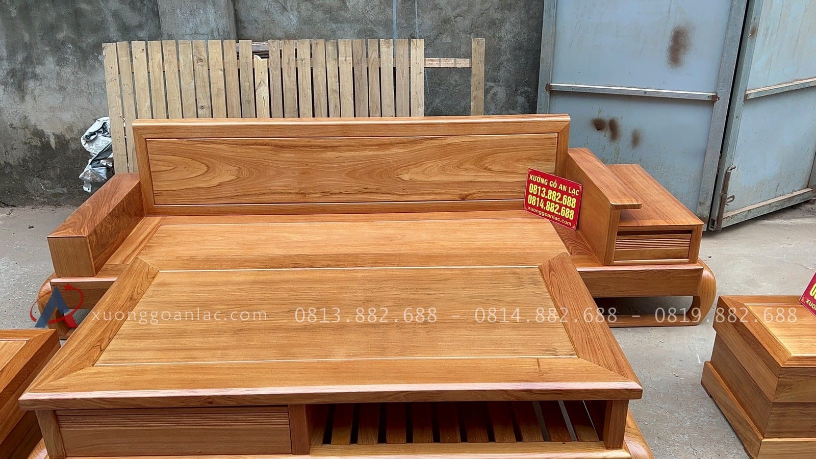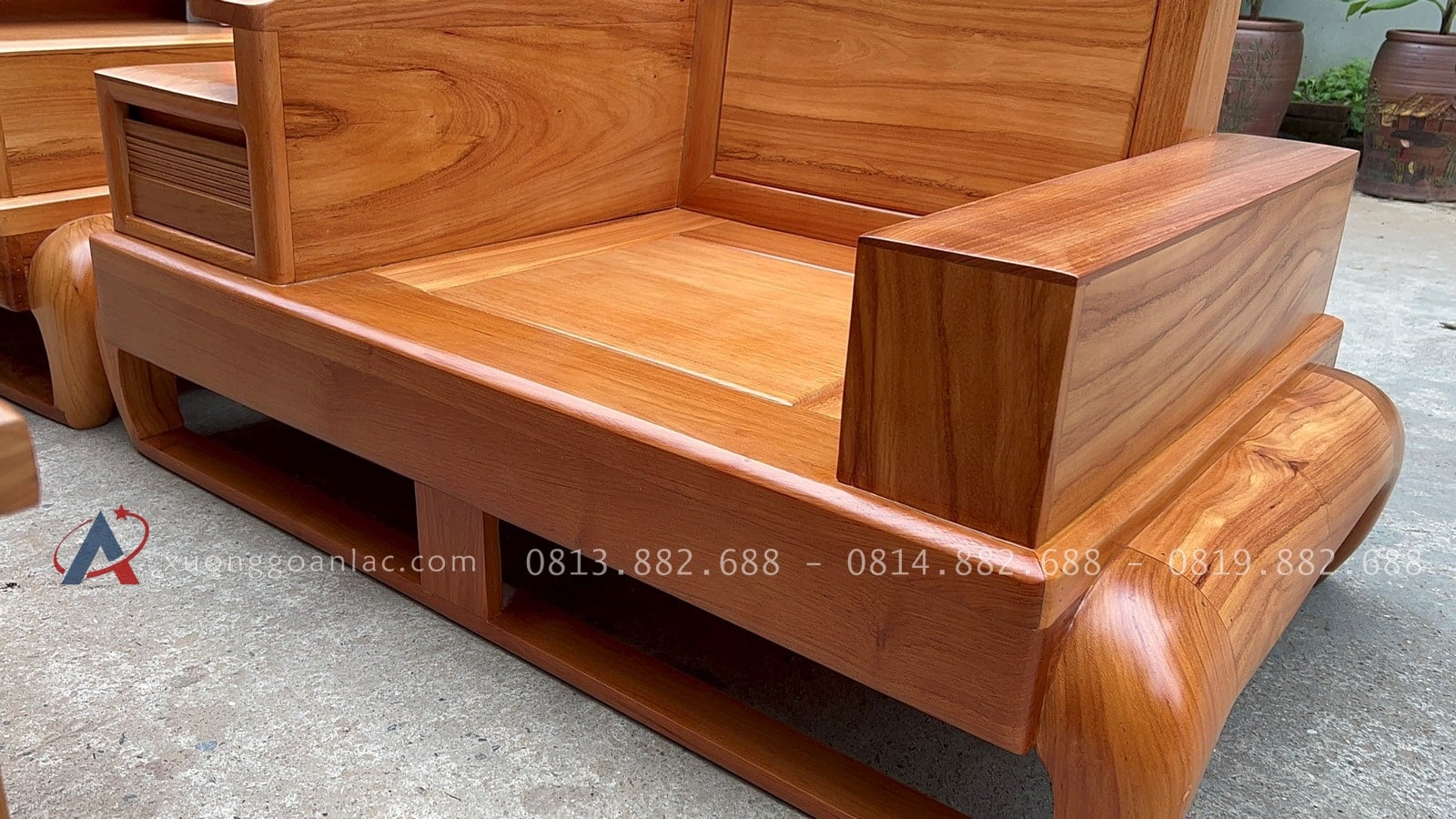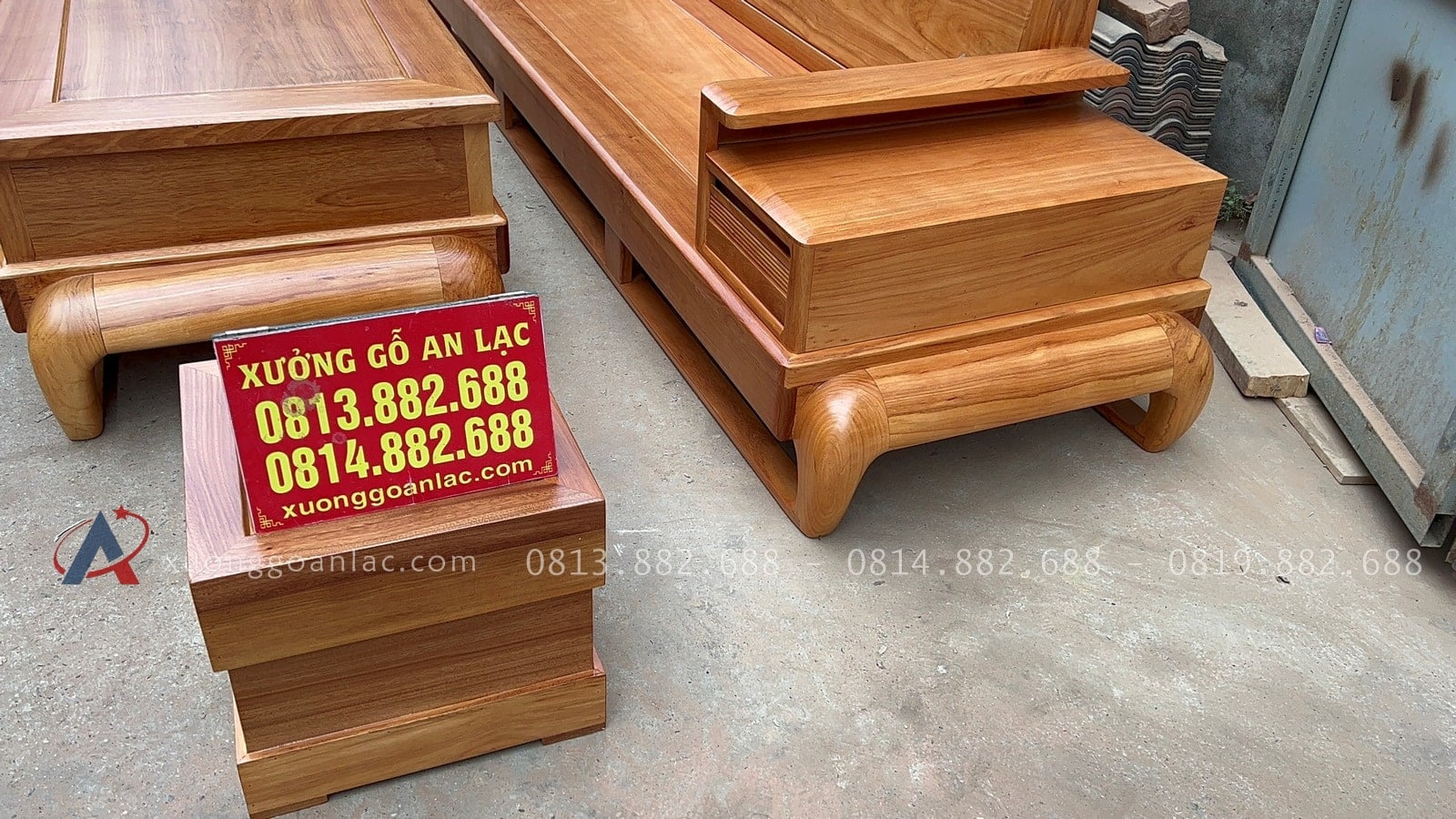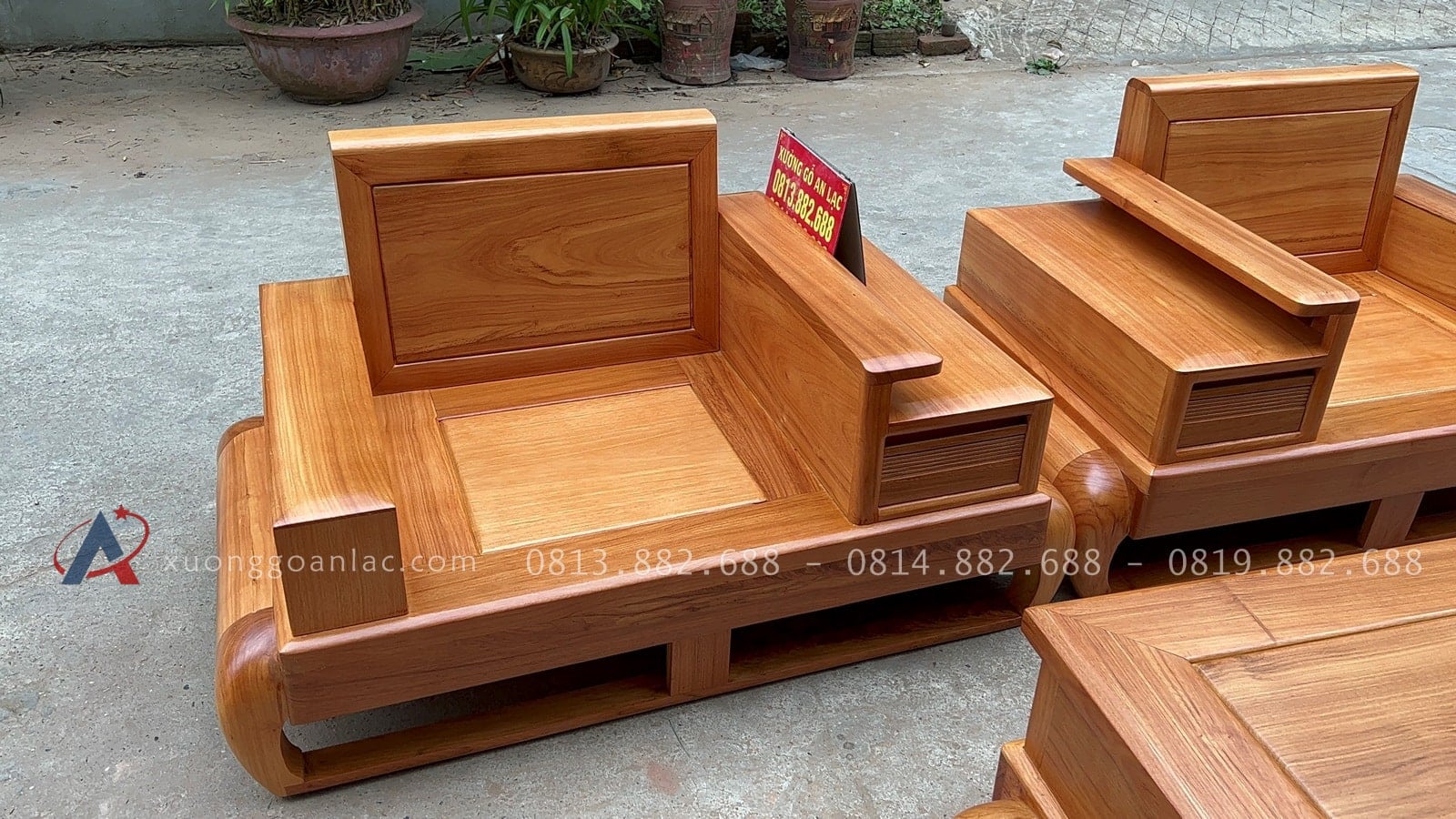[Hoàn thiện] Bộ sofa đối gỗ gõ đỏ khung 4cm ván 2cm màu trần tự nhiên