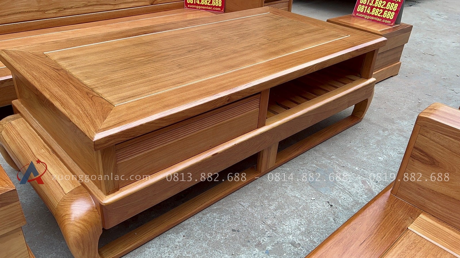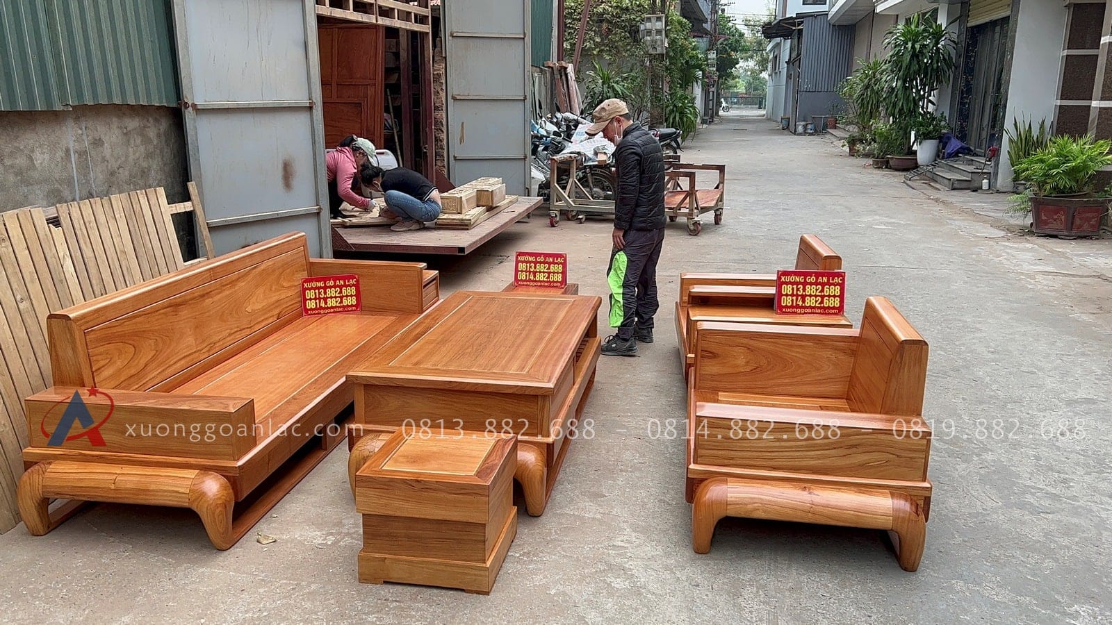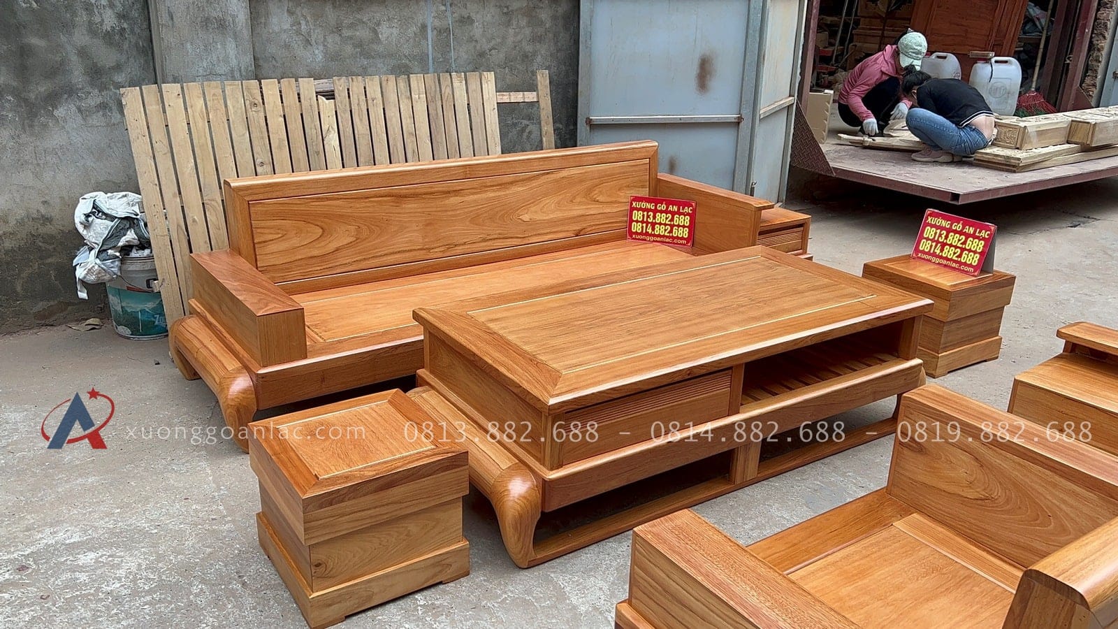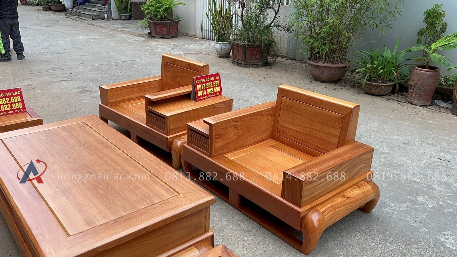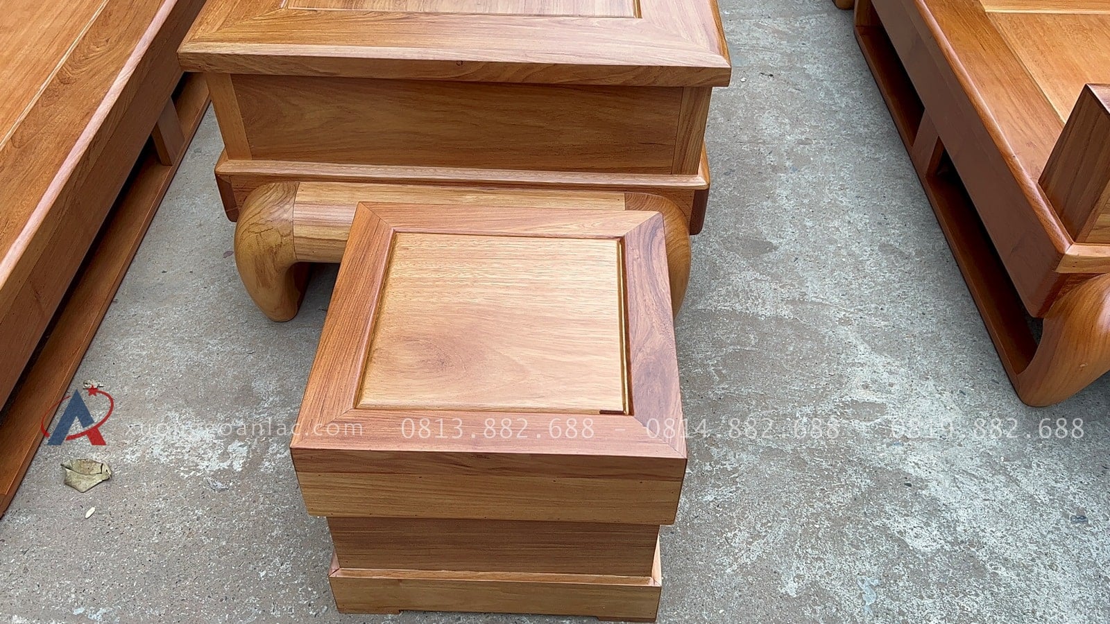 [Hoàn thiện] Bộ sofa đối gỗ gõ đỏ khung 4cm ván 2cm màu trần tự nhiên