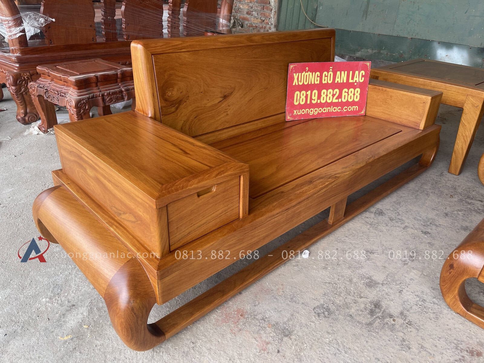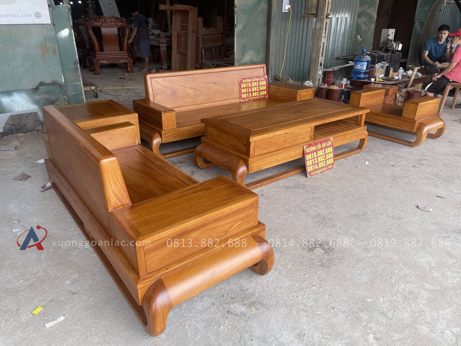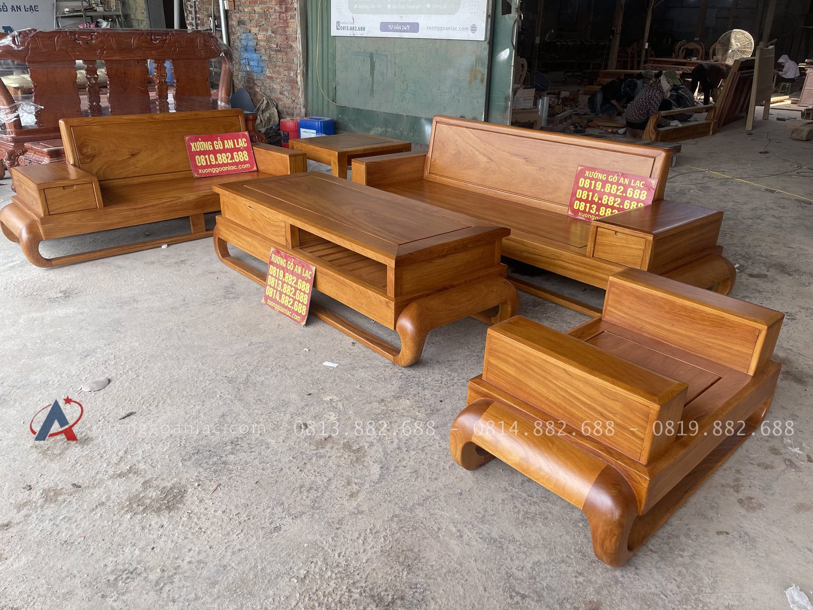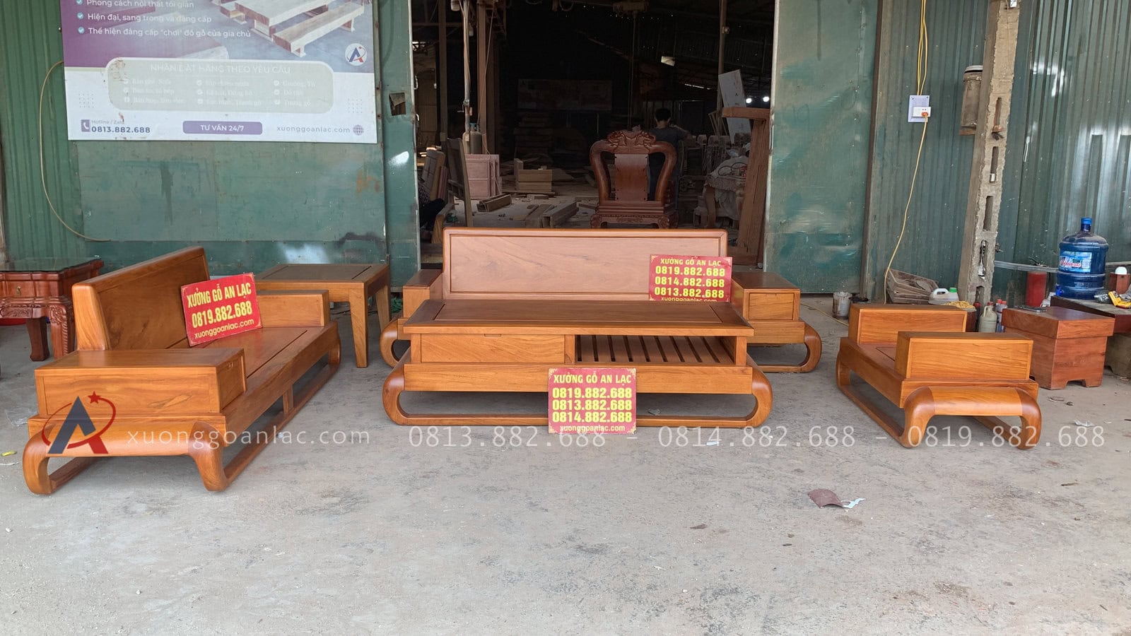 Xưởng gỗ An Lạc bán sofa gỗ buôn và lẻ với giá công khai: Bộ sofa đùi gà gỗ Hương Đá khung 4cm ván 2cm mộng tàu có giá: