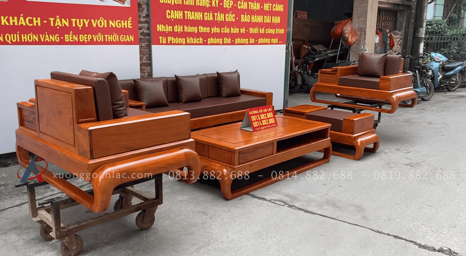 [Hoàn Thiện] Bộ sofa đùi gà gỗ hương đá giữ nguyên màu gỗ tự nhiên