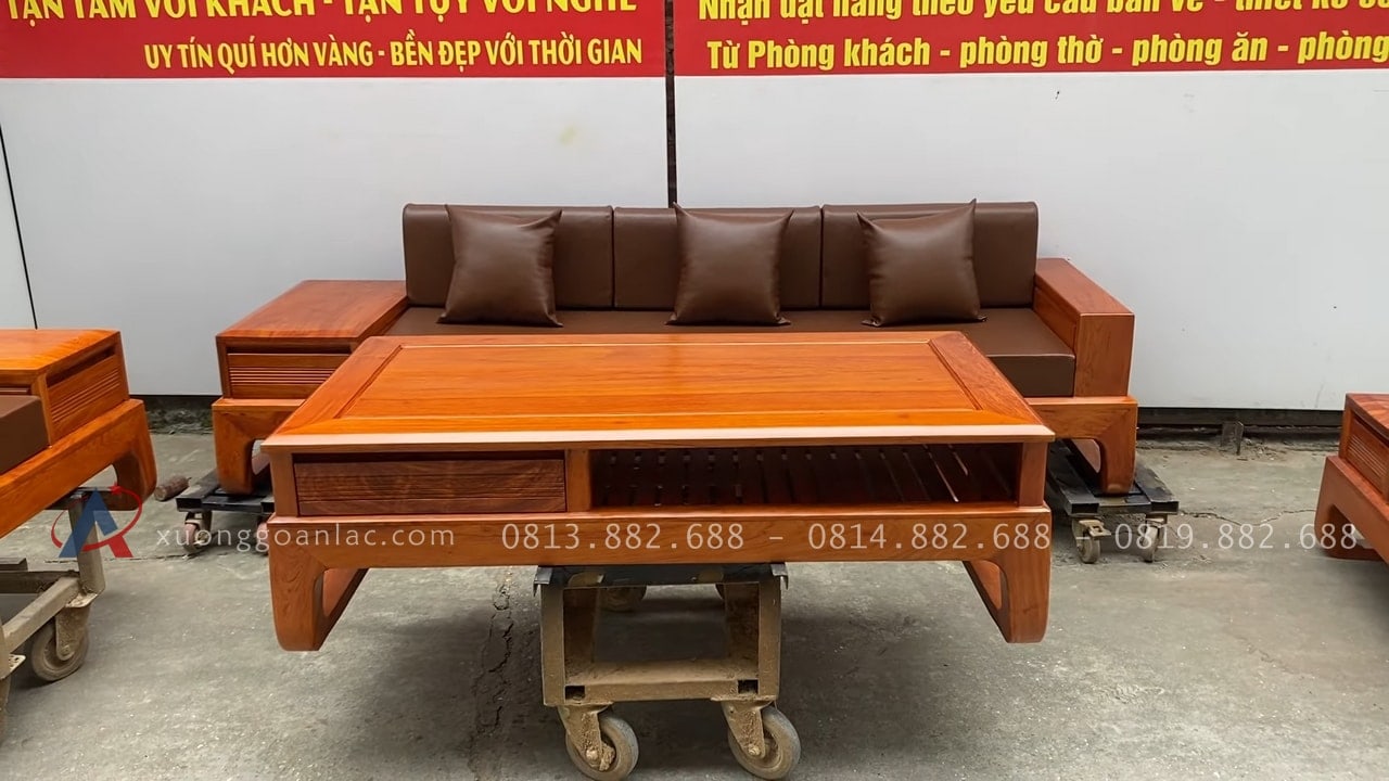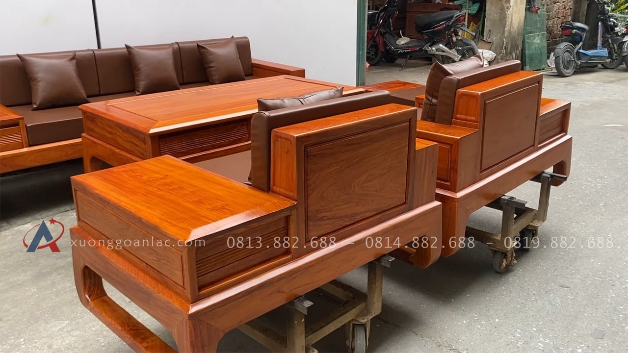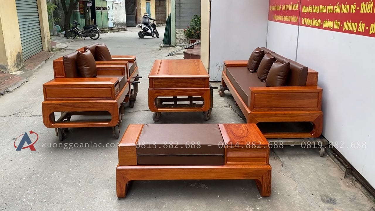 Xưởng gỗ An Lạc bán sofa gỗ buôn và lẻ với giá công khai: Bộ sofa chân hiêu gỗ Hương Đá khung 4cm ván 2cm mộng tàu có giá: