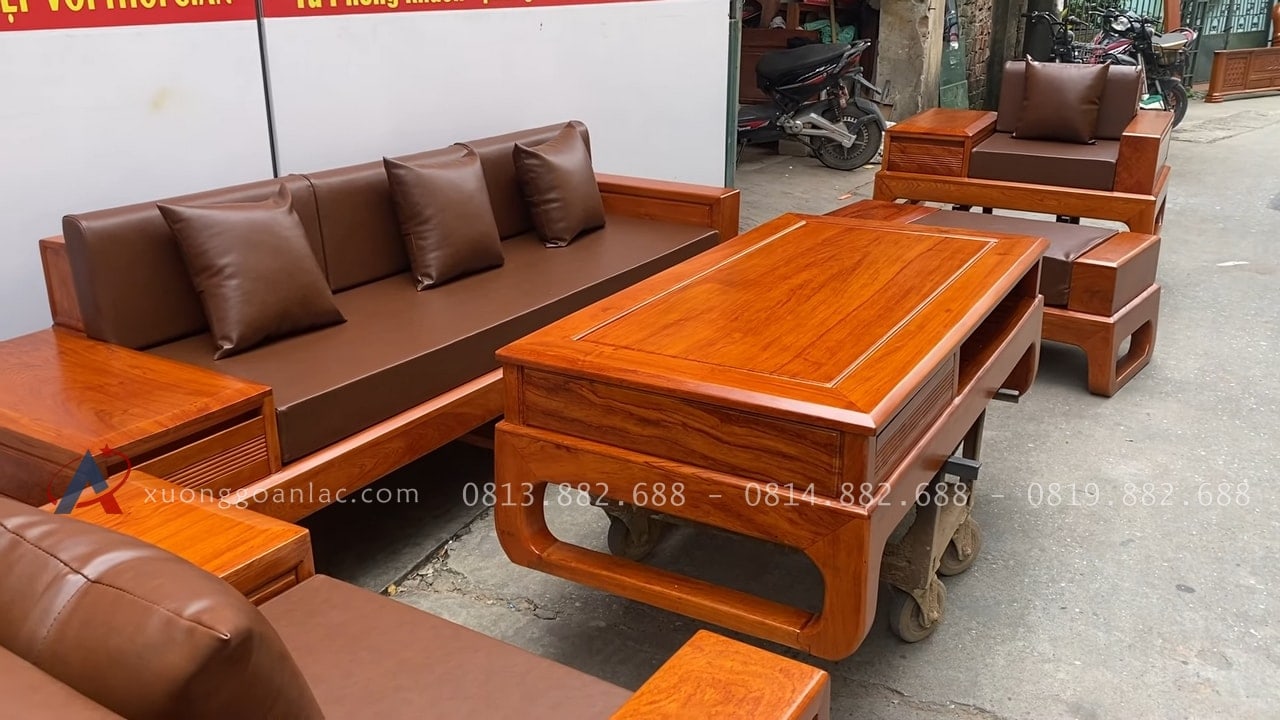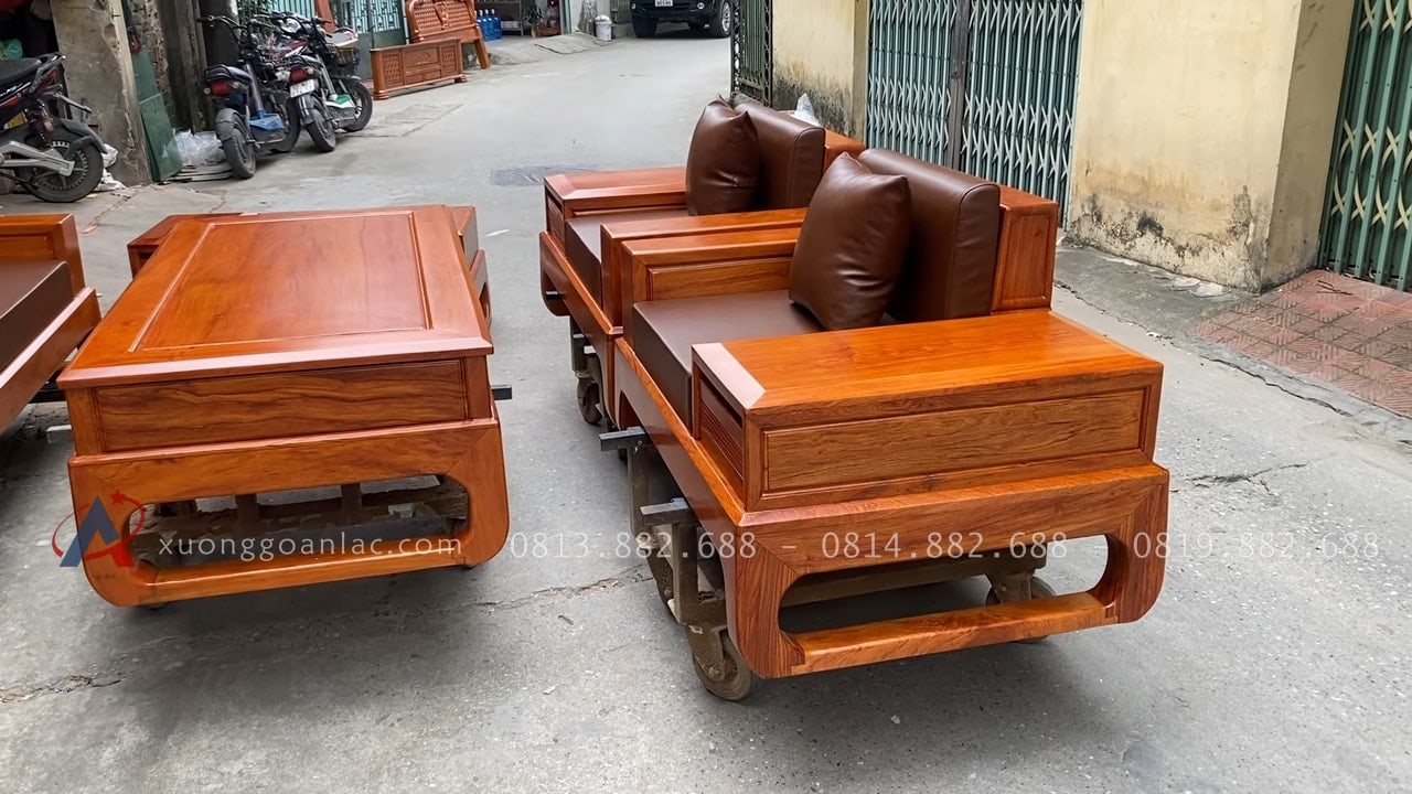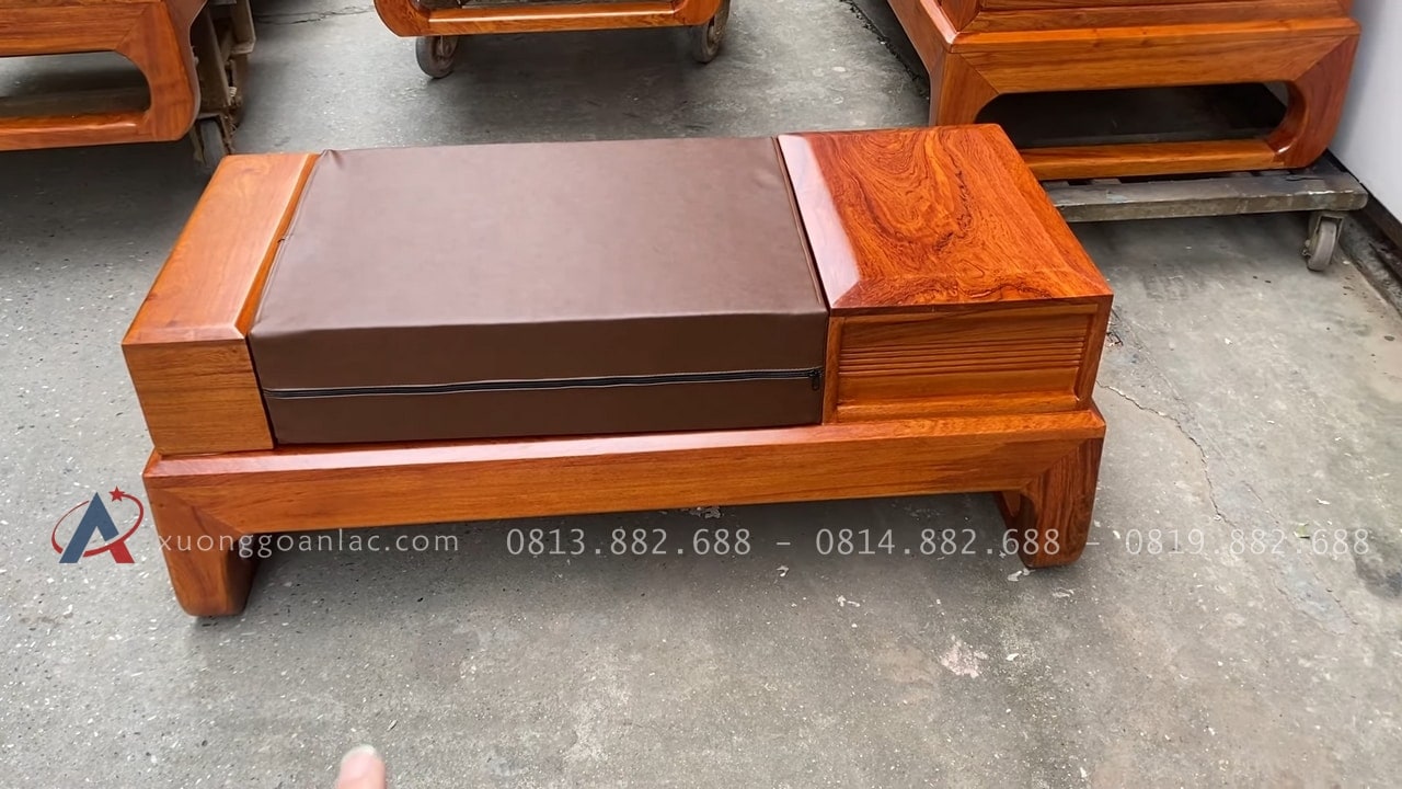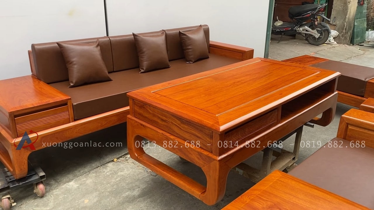 Xưởng gỗ An Lạc bán sofa gỗ buôn và lẻ với giá công khai: Bộ sofa chân hiêu gỗ Hương Đá khung 4cm ván 2cm mộng tàu có giá: