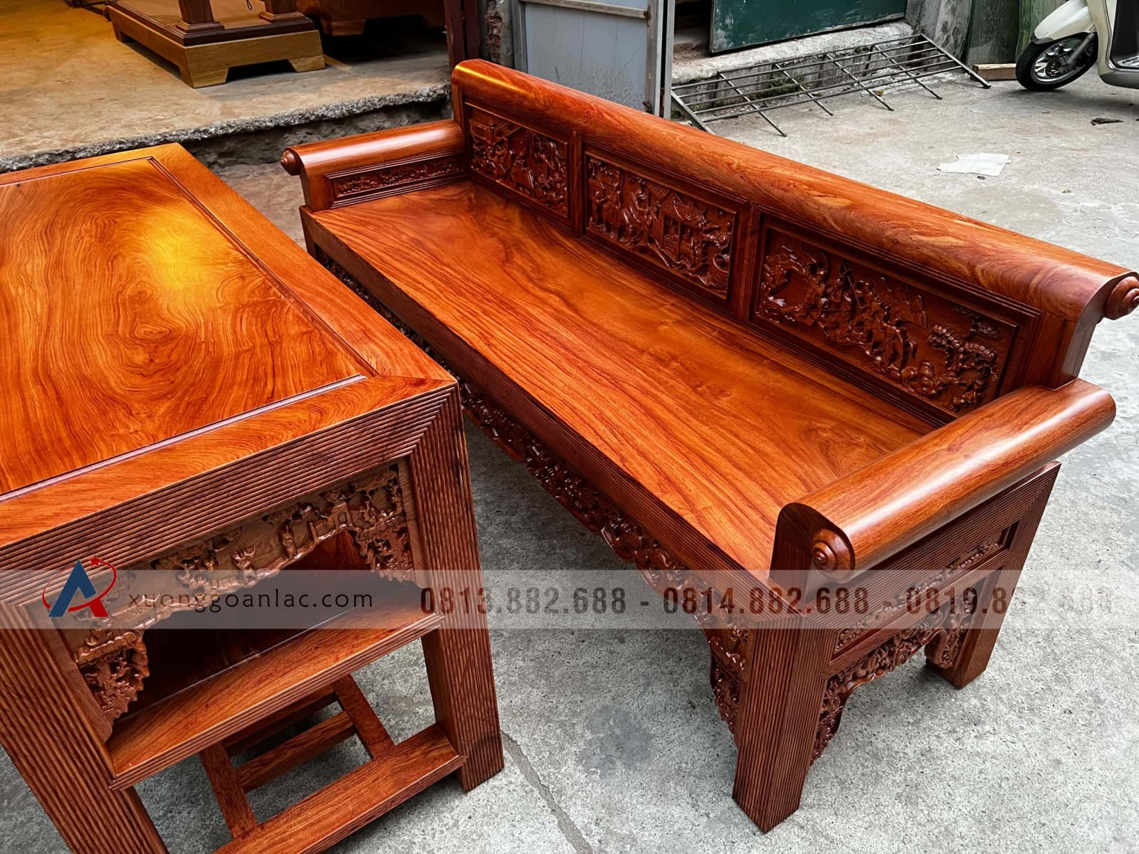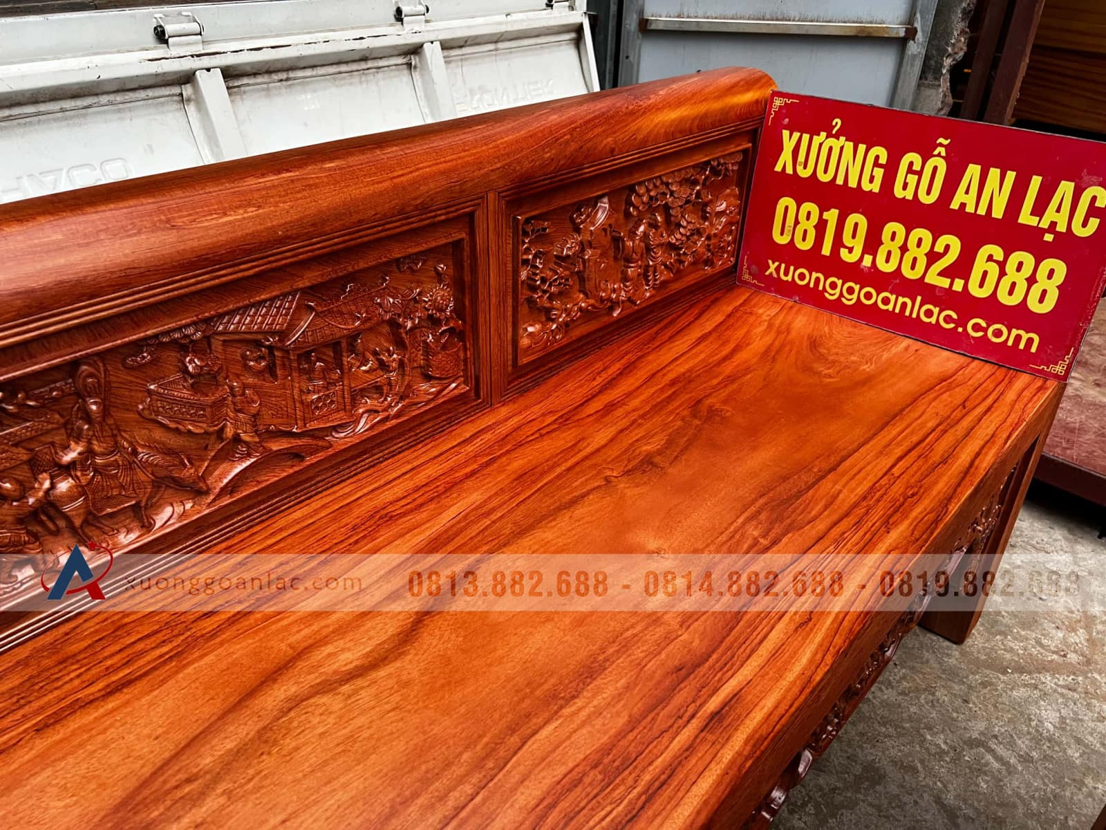 Hôm trước xưởng gỗ An Lạc đã giới thiệu đến các bác bộ trường kỷ đục tích Vinh Quy Bái Tổ chân 13 chỉ gỗ hương đá cao cấp của bác Lãi, Hà Nội tại thời điểm còn nguyên mộc (xem bộ mộc tại đây). Hôm nay em mời các bác tham khảo và đánh giá độ hoàn thiện của sản phẩm sau khi hoàn thiện phủ PU.