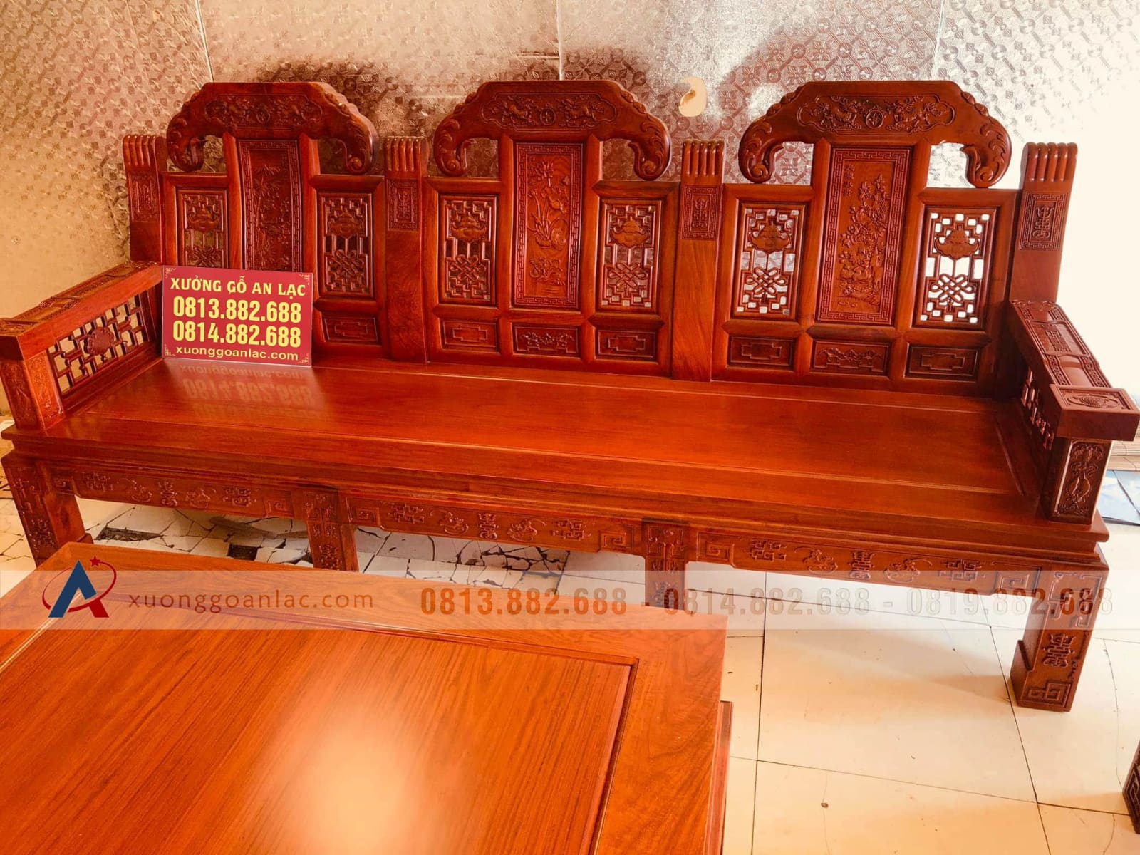 Giới thiệu đến các bác một combo phòng khách gỗ hương đỏ chất nhất năm nay của xưởng gỗ an Lạc. Combo gồm 1 bộ bàn ghế Như Ý hàng đặt khung tranh 4cm ván 2cm và 1 kệ mõ phẳng đều làm từ chất liệu gỗ hương Lào. Mời các bác cùng chiêm ngưỡng: