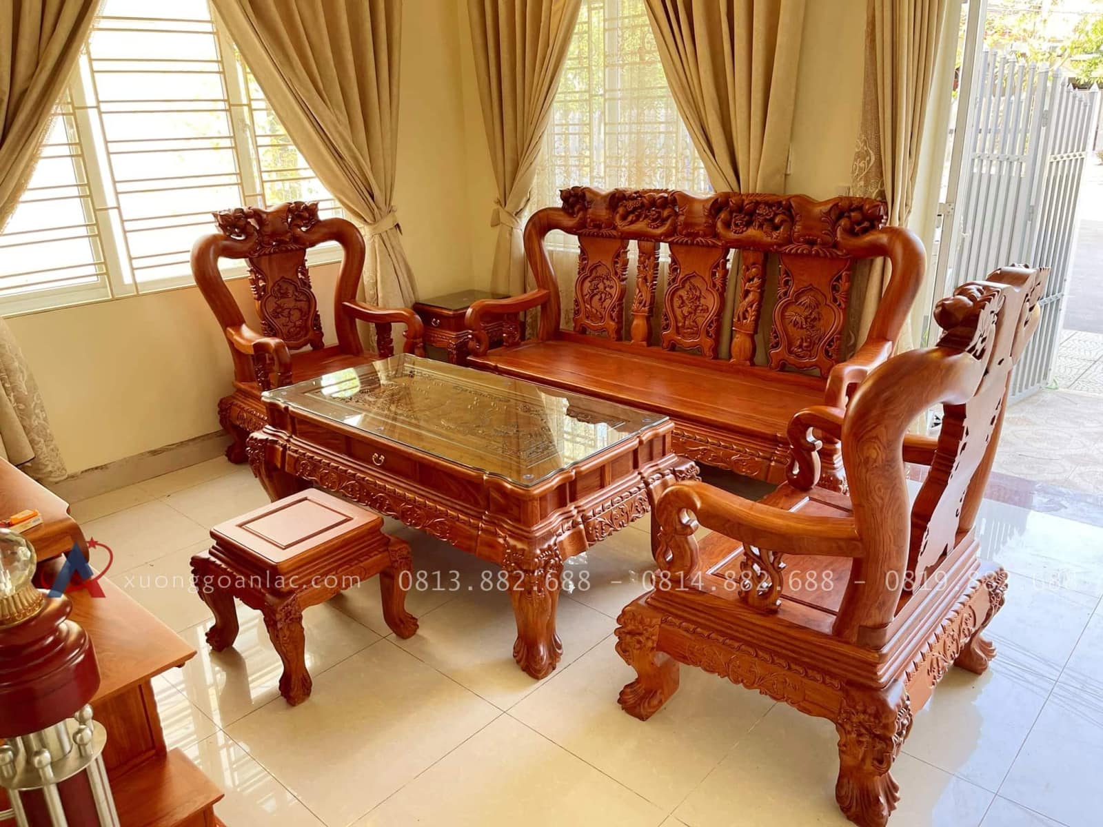 [Hoàn thiện] Combo nội thất phòng khách gỗ hương đá cao cấp