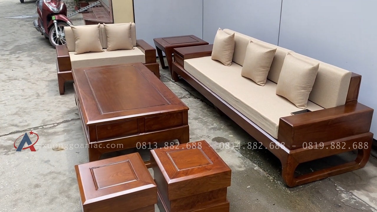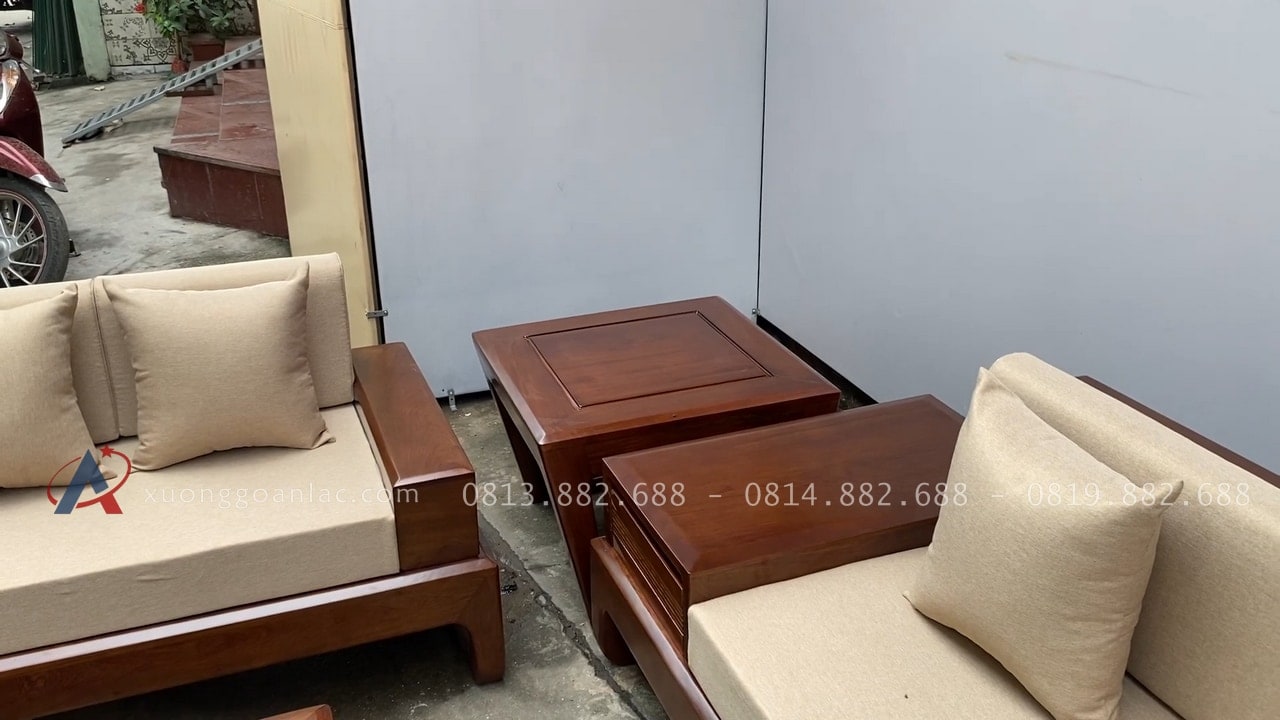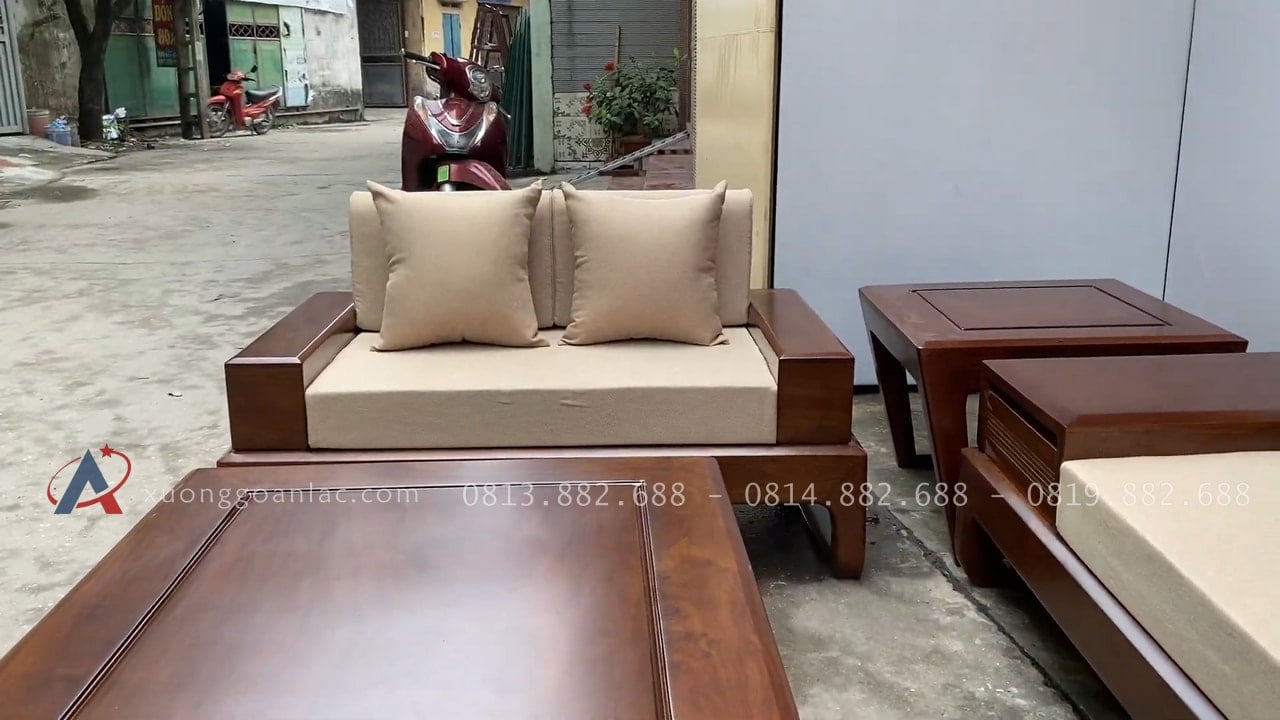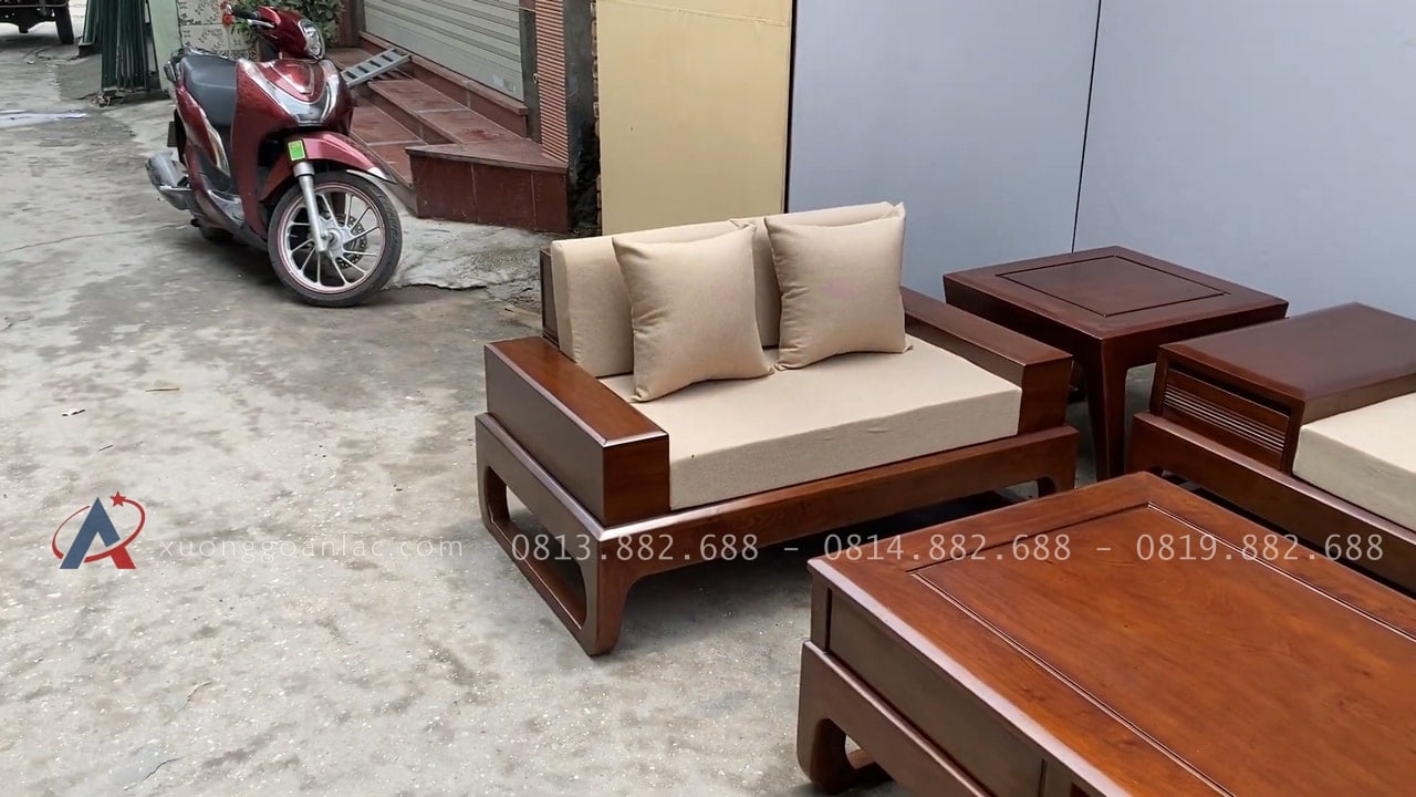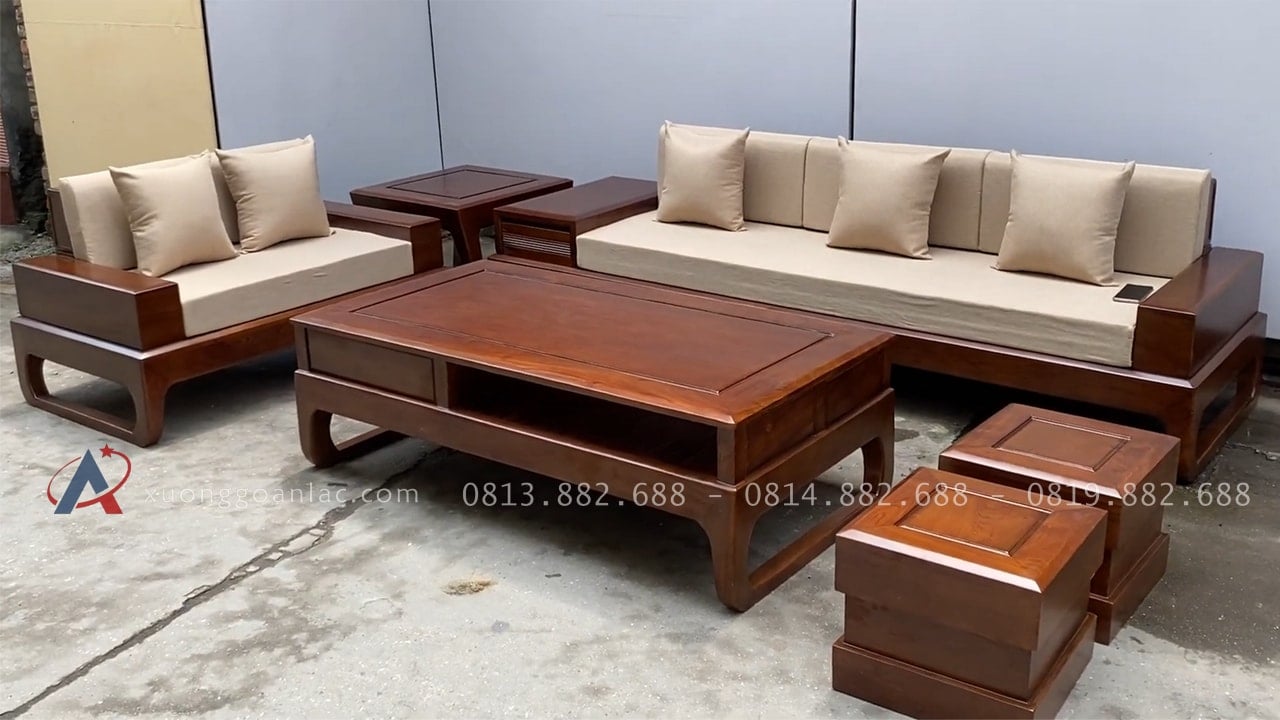 Xưởng gỗ An Lạc bán sofa gỗ buôn và lẻ với giá công khai: Bộ sofa gỗ Hương Đá khung 4cm ván 2cm mộng tàu có giá: