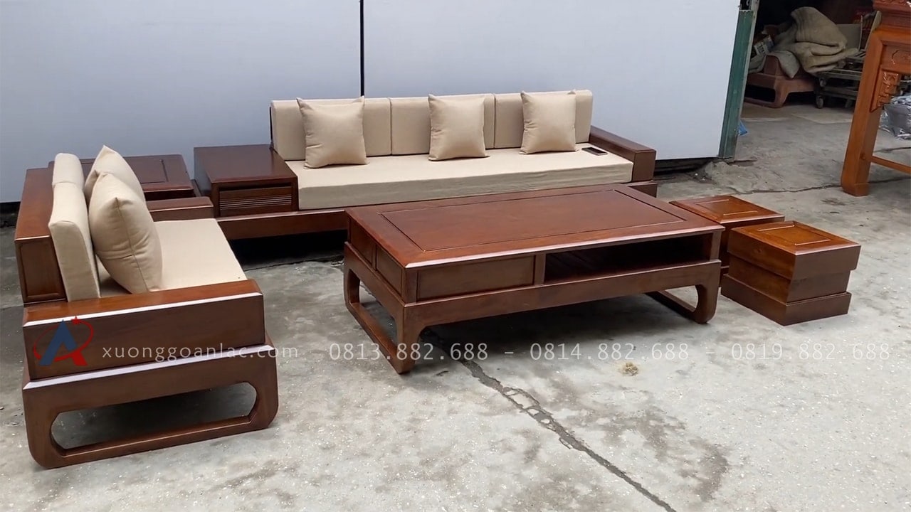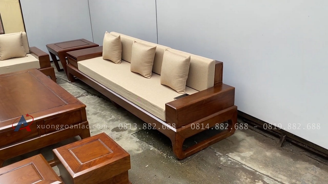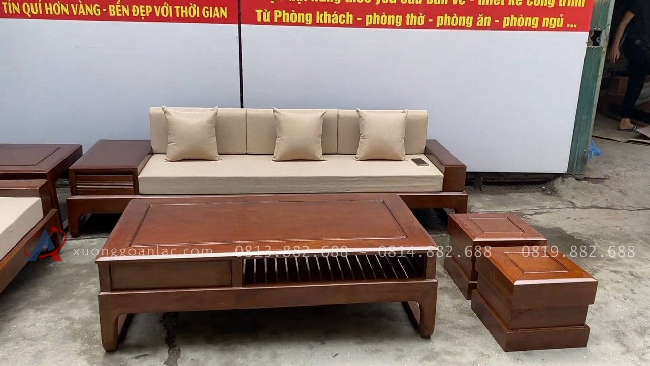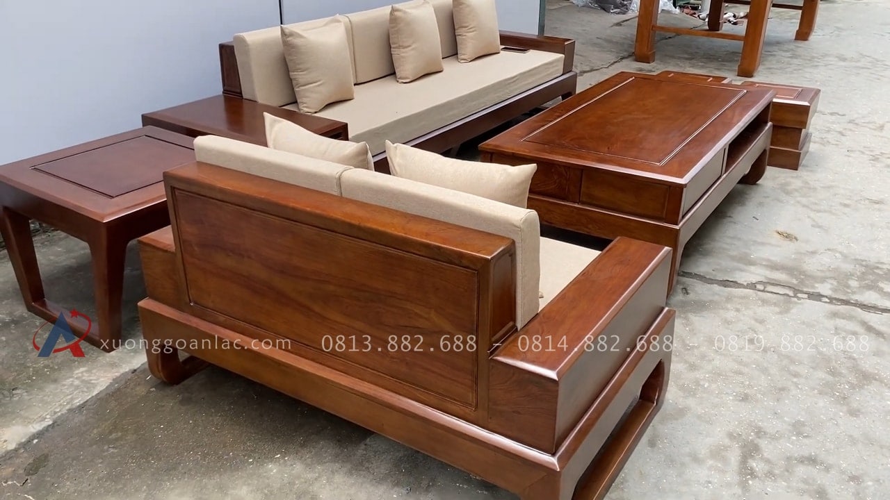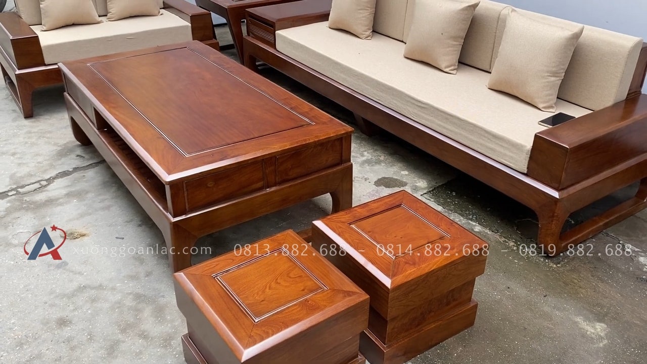 Xưởng gỗ An Lạc bán sofa gỗ buôn và lẻ với giá công khai: Bộ sofa gỗ Hương Đá khung 4cm ván 2cm mộng tàu có giá: