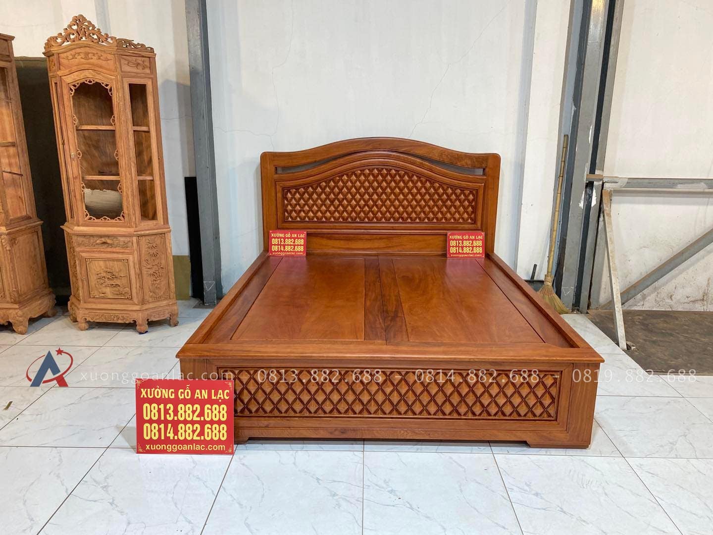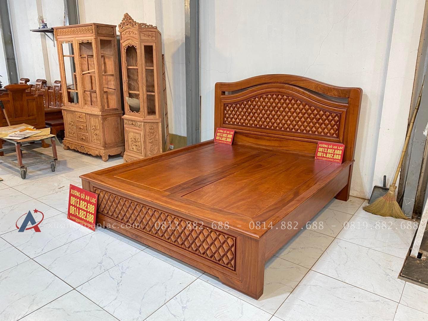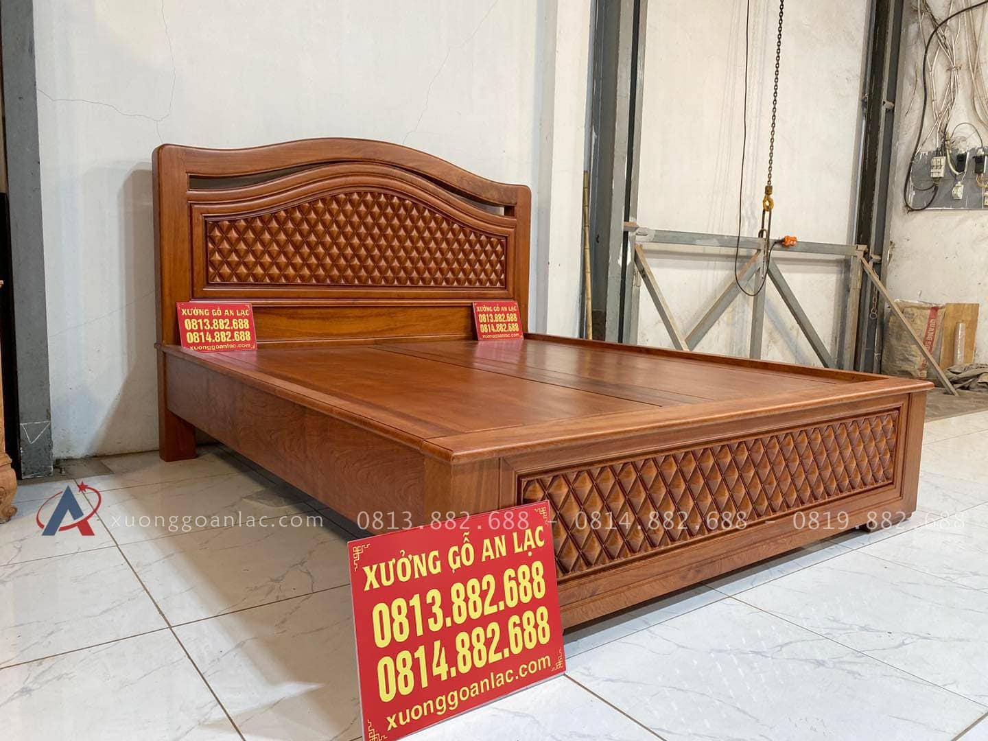Hoàn Thiện giường luxury trám 200x220cm gỗ gõ đỏ ( kích thước đệm )