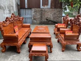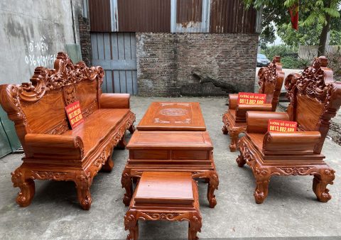 [Hoàn thiện] Hoàng Gia 6 món chân 12 gỗ hương đá vách trơn siêu vân
