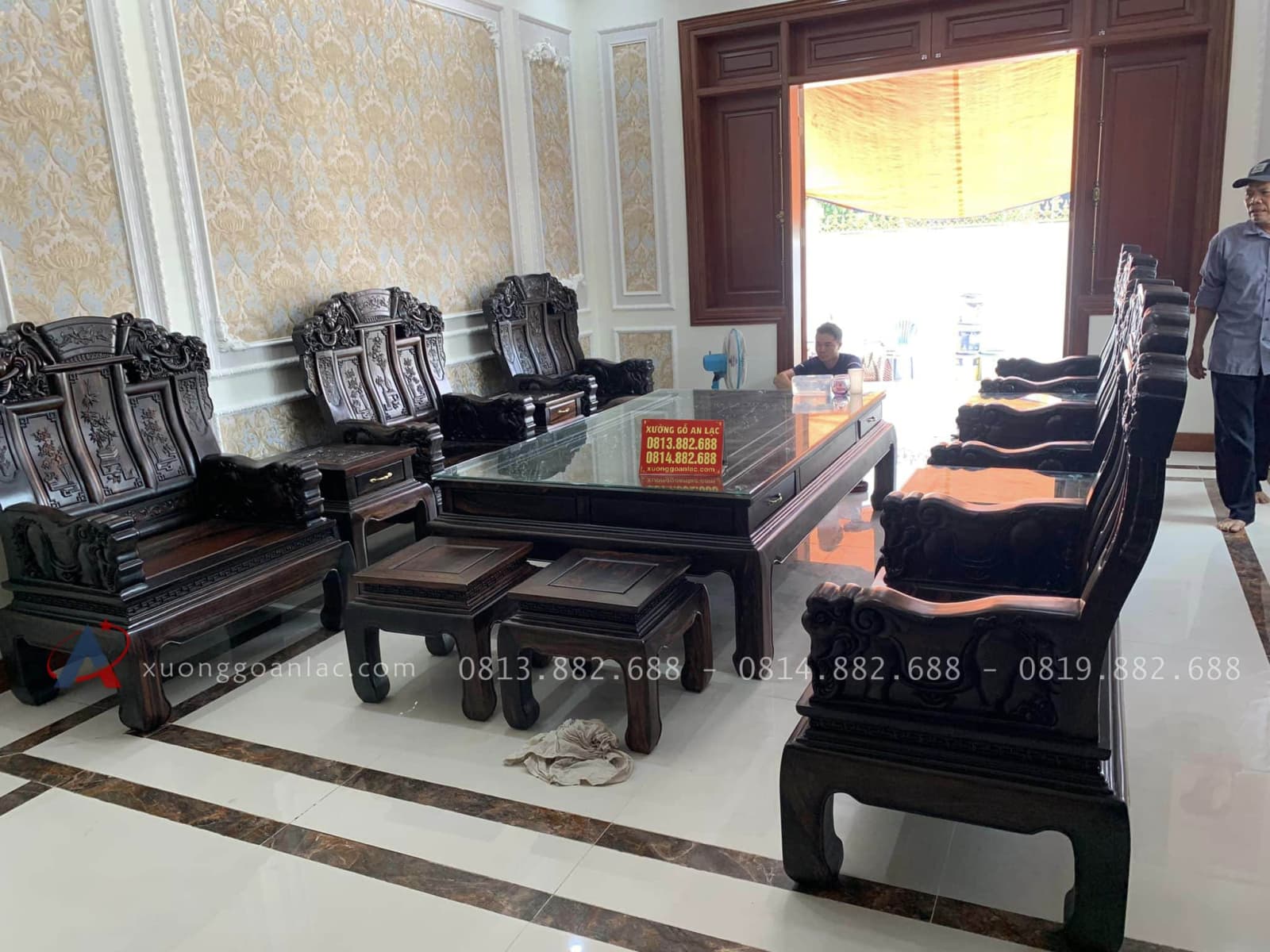 Bộ bàn ghế gỗ mun mẫu Âu Á như ý voi tay đặc hàng cao cấp kích thước khủng 13 món vô cùng hoành tráng gồm: