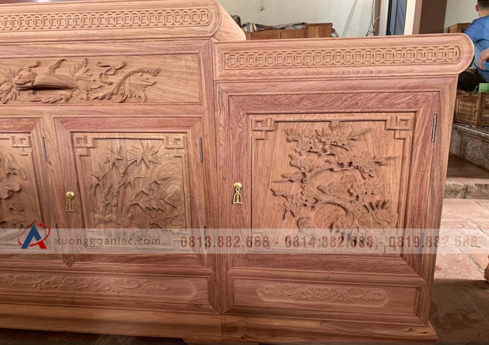 Kệ tivi mõ lồi 2m gỗ hương đá đục kênh bong (anh Hợi, Hà Nam)