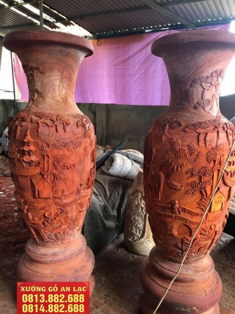 Lục bình gỗ hương đỏ đục tay 2m20 (Anh Quân - Hà Nội)