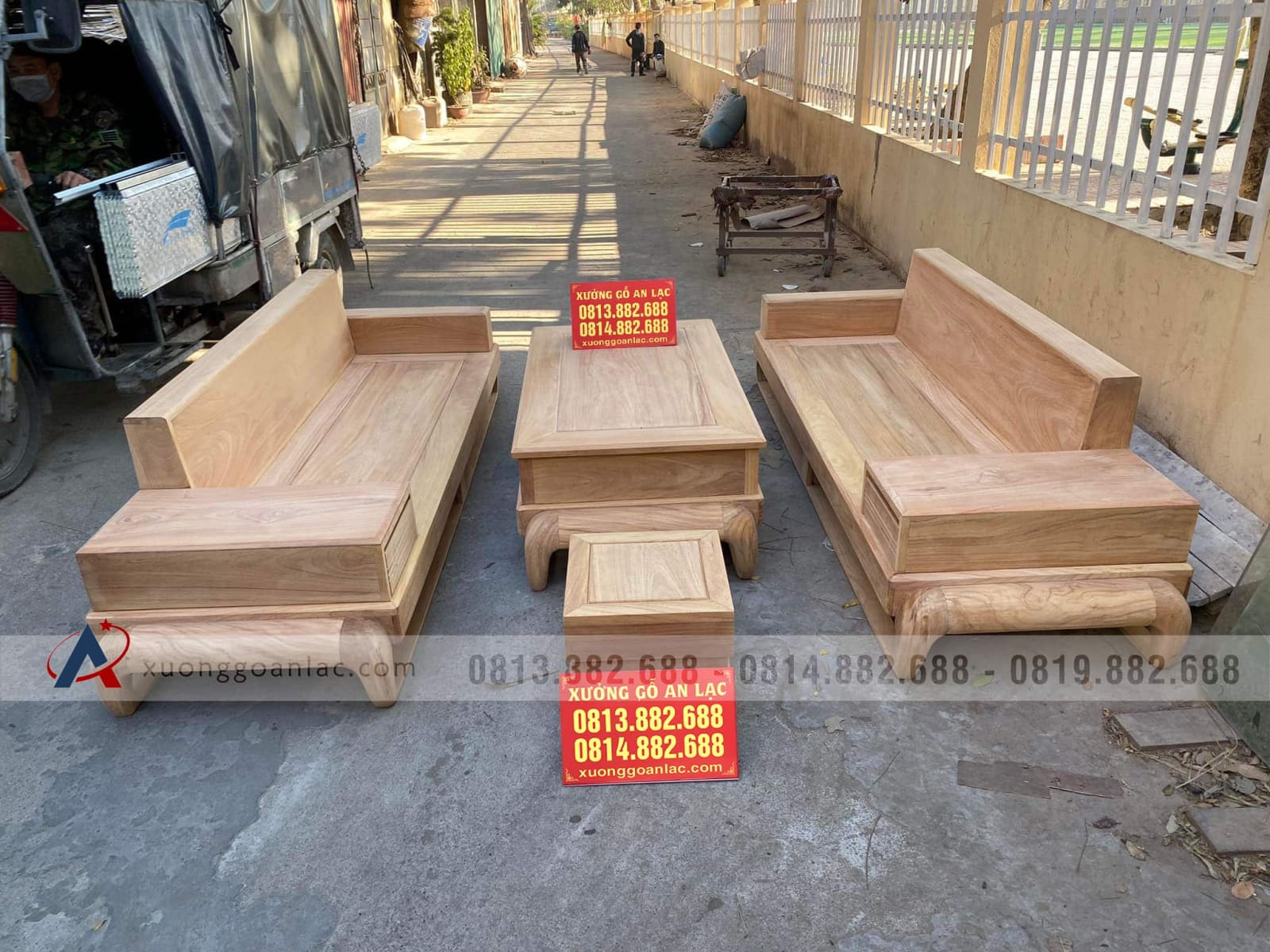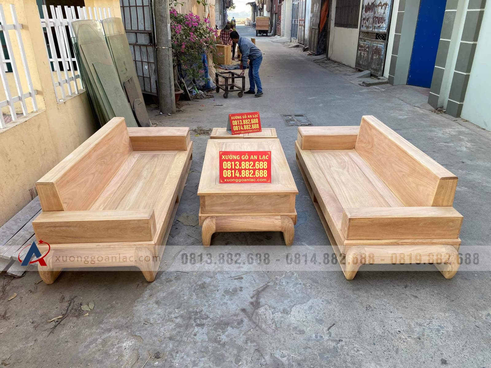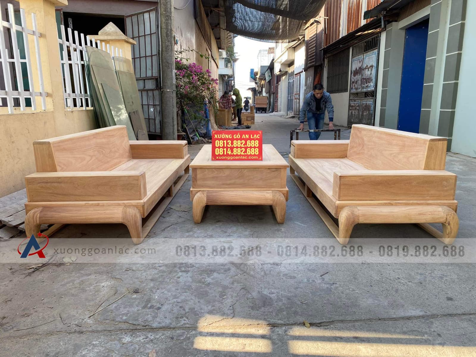 Xưởng gỗ An Lạc bán sofa gỗ buôn và lẻ với giá công khai: Bộ sofa gỗ Gõ đỏ khung 4cm ván 2cm mộng tàu có giá: