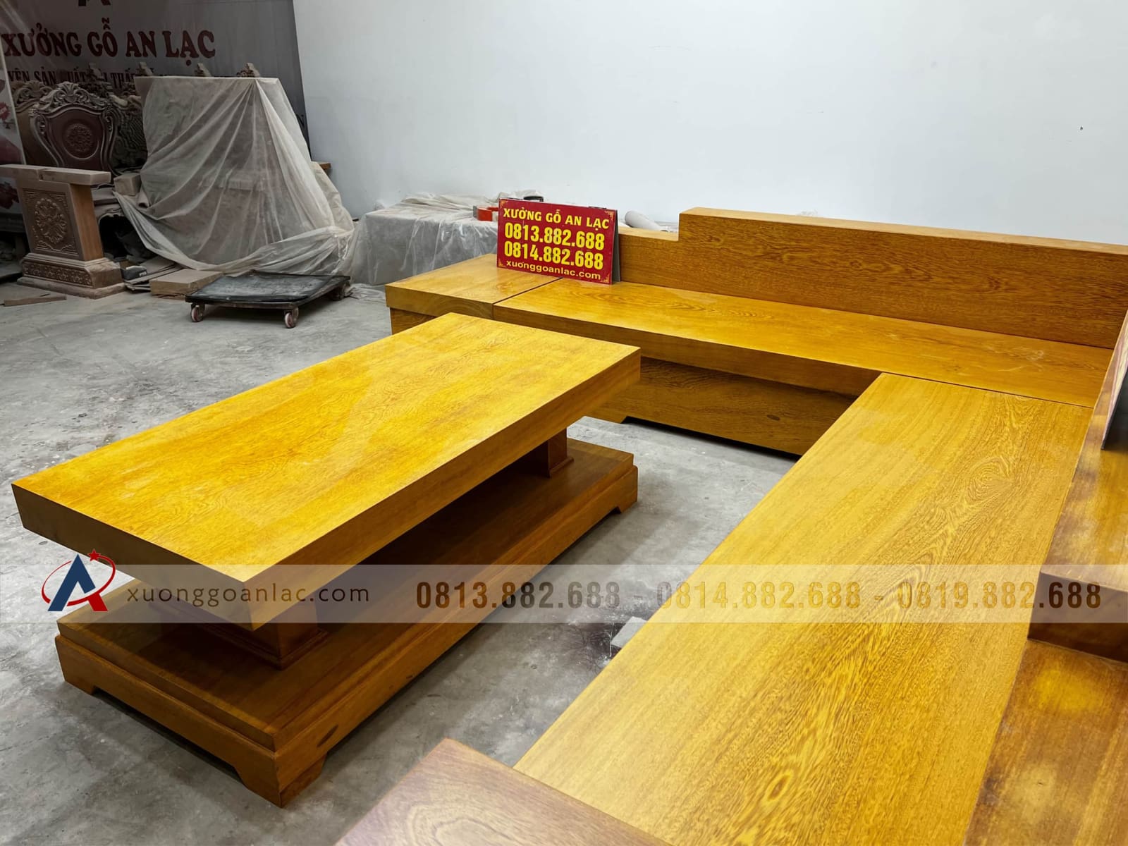 [Hoàn Thiện] Sofa góc chữ L nguyên khối gỗ gõ đỏ làm theo đơn đặt hàng của anh Nhật Nam - Bắc Giang