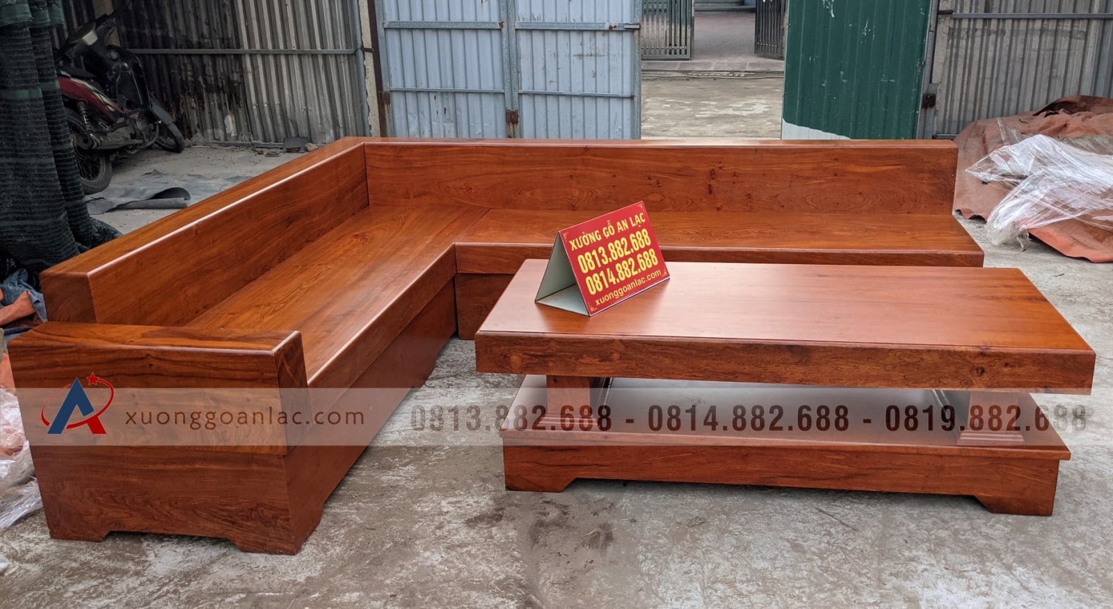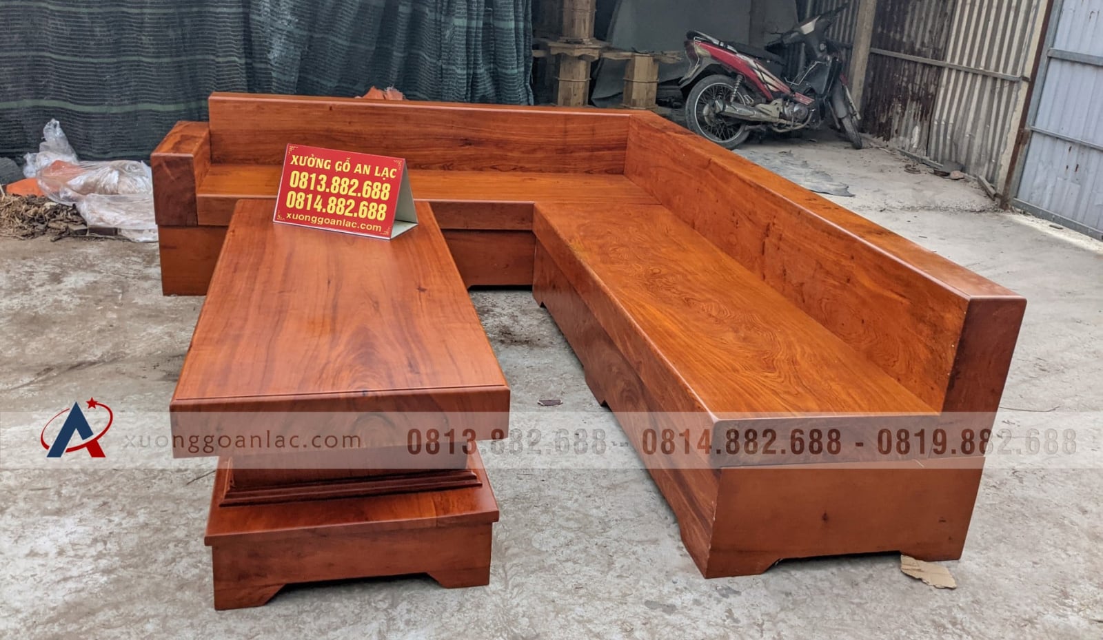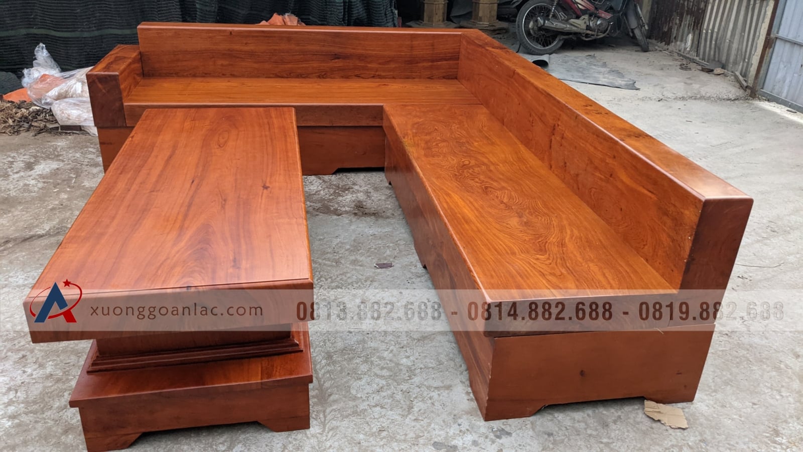 [Hoàn Thiện] Sofa góc L dài 2m6 gỗ hương đá nguyên khối hàng vân tuyển