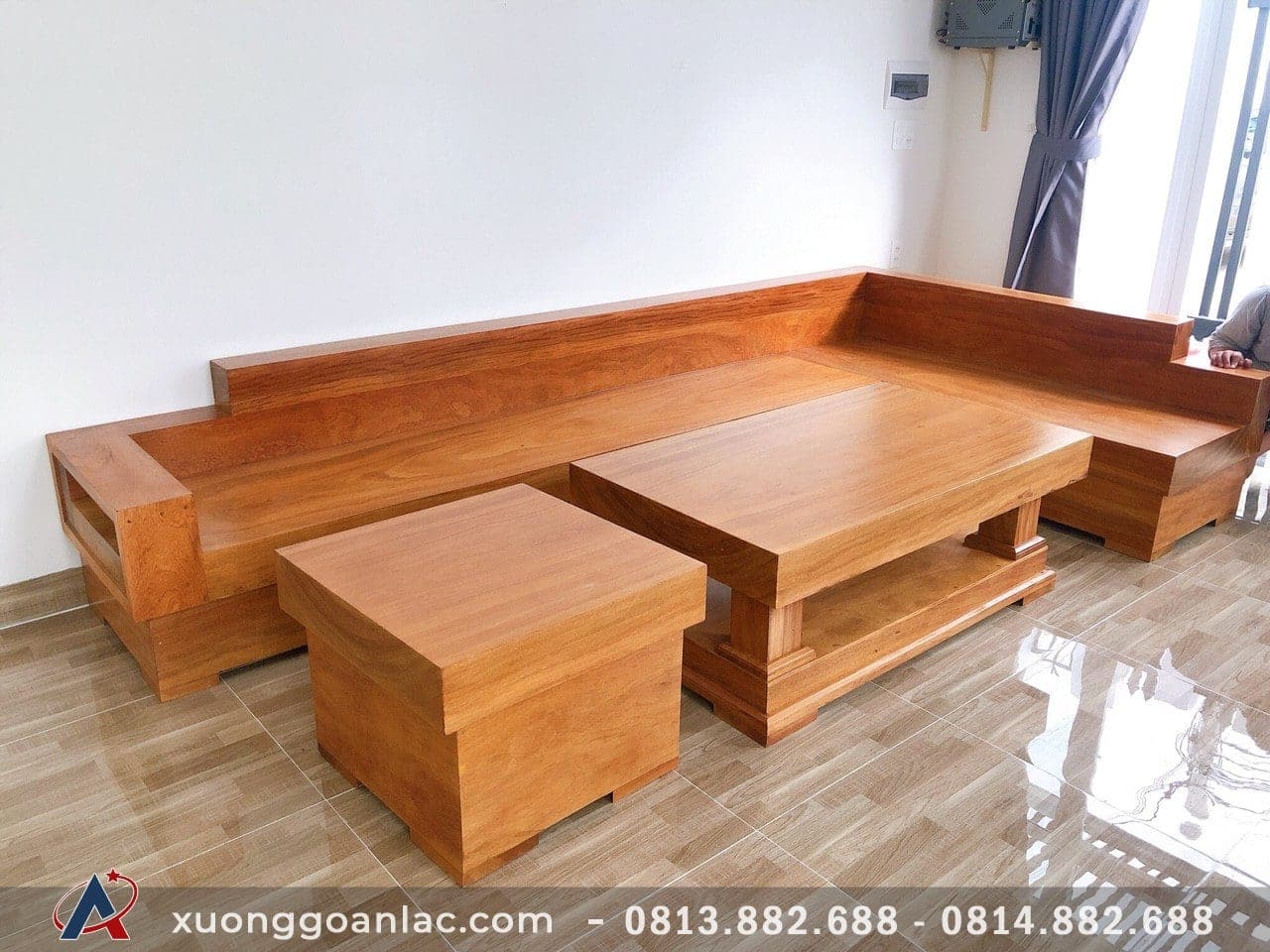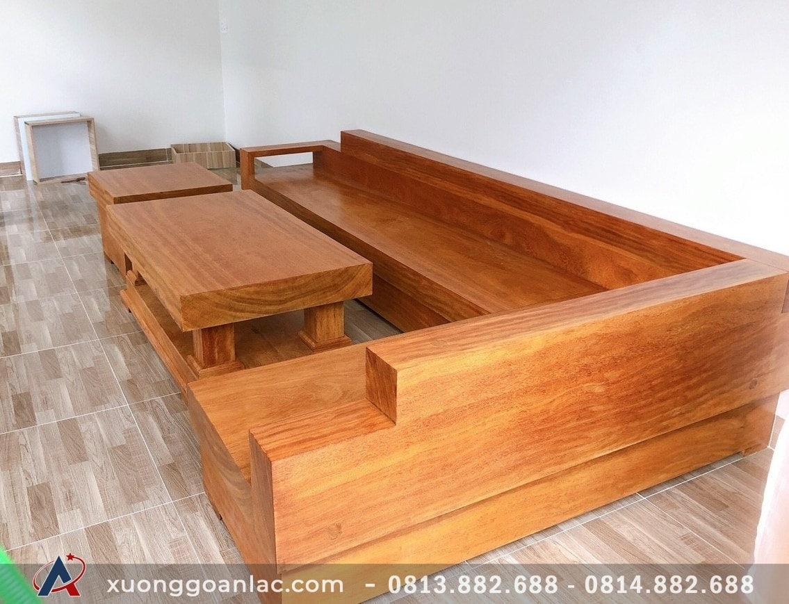 [Bàn Giao] Sofa nguyên khối chữ L gỗ gõ đỏ (Anh Lương - Tuyên Quang)